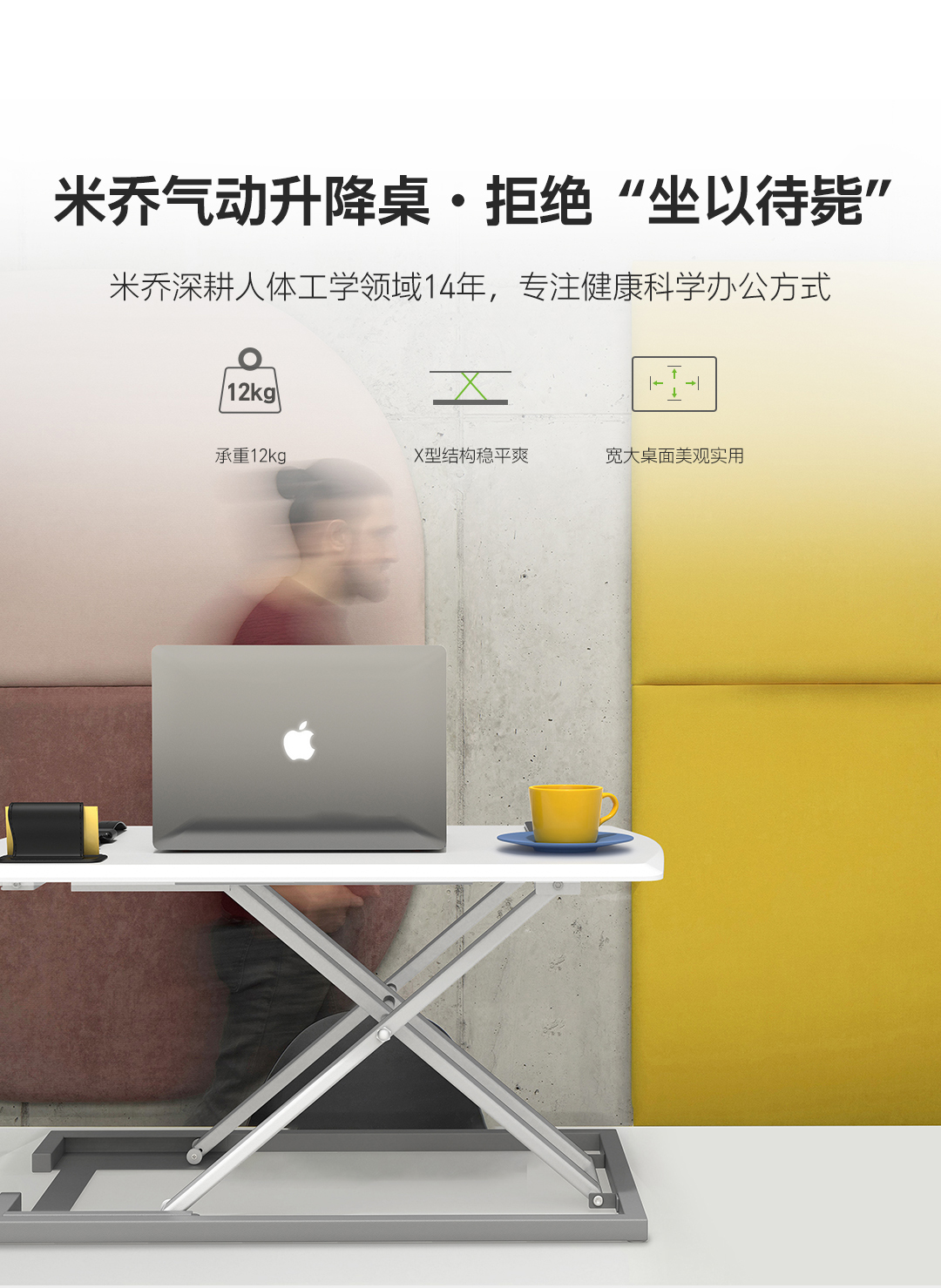 【站坐结合 健康办公】米乔人体工学 气动升降桌 14年专注人体工学跨国品牌,呵护腰椎颈椎