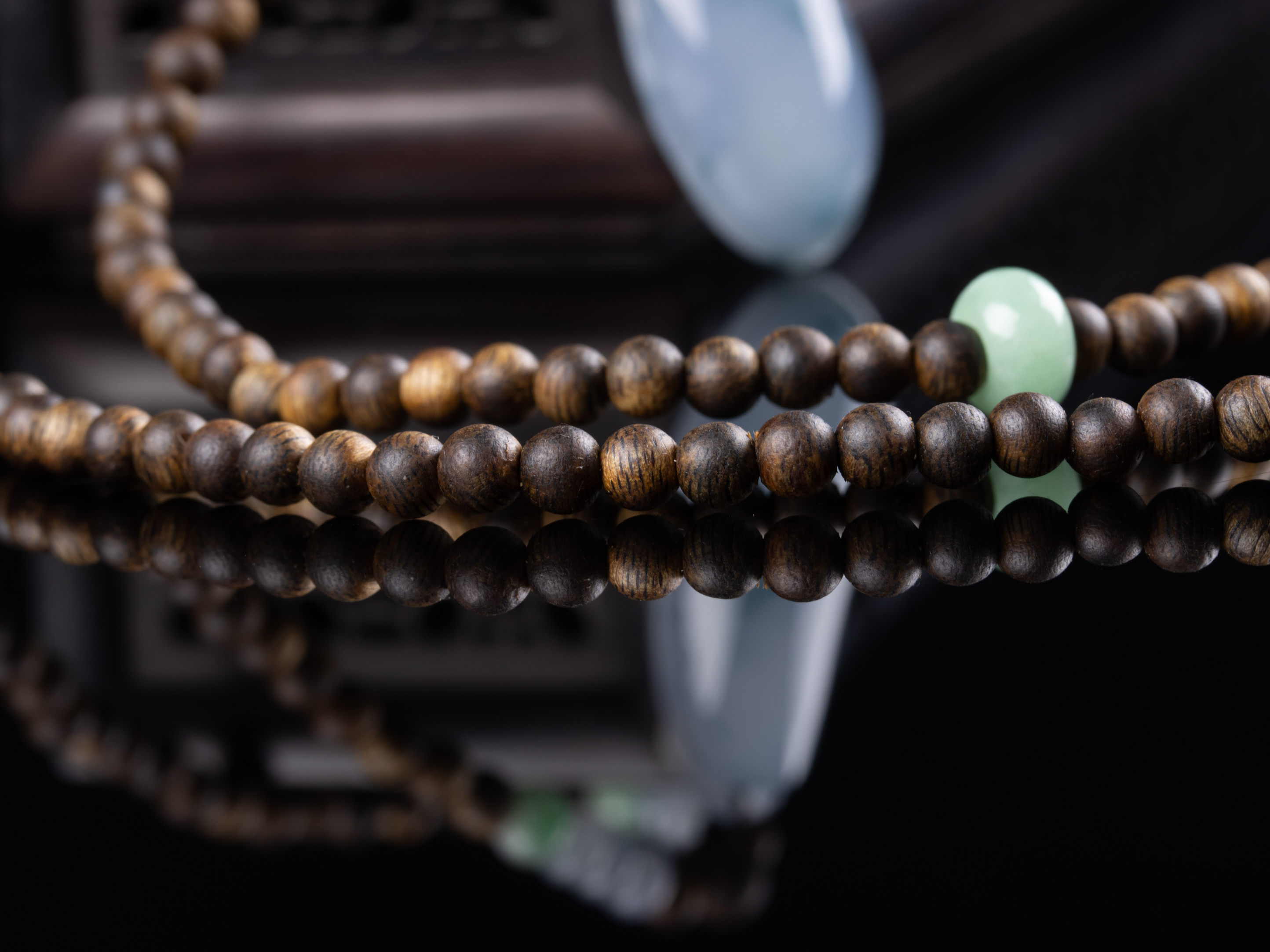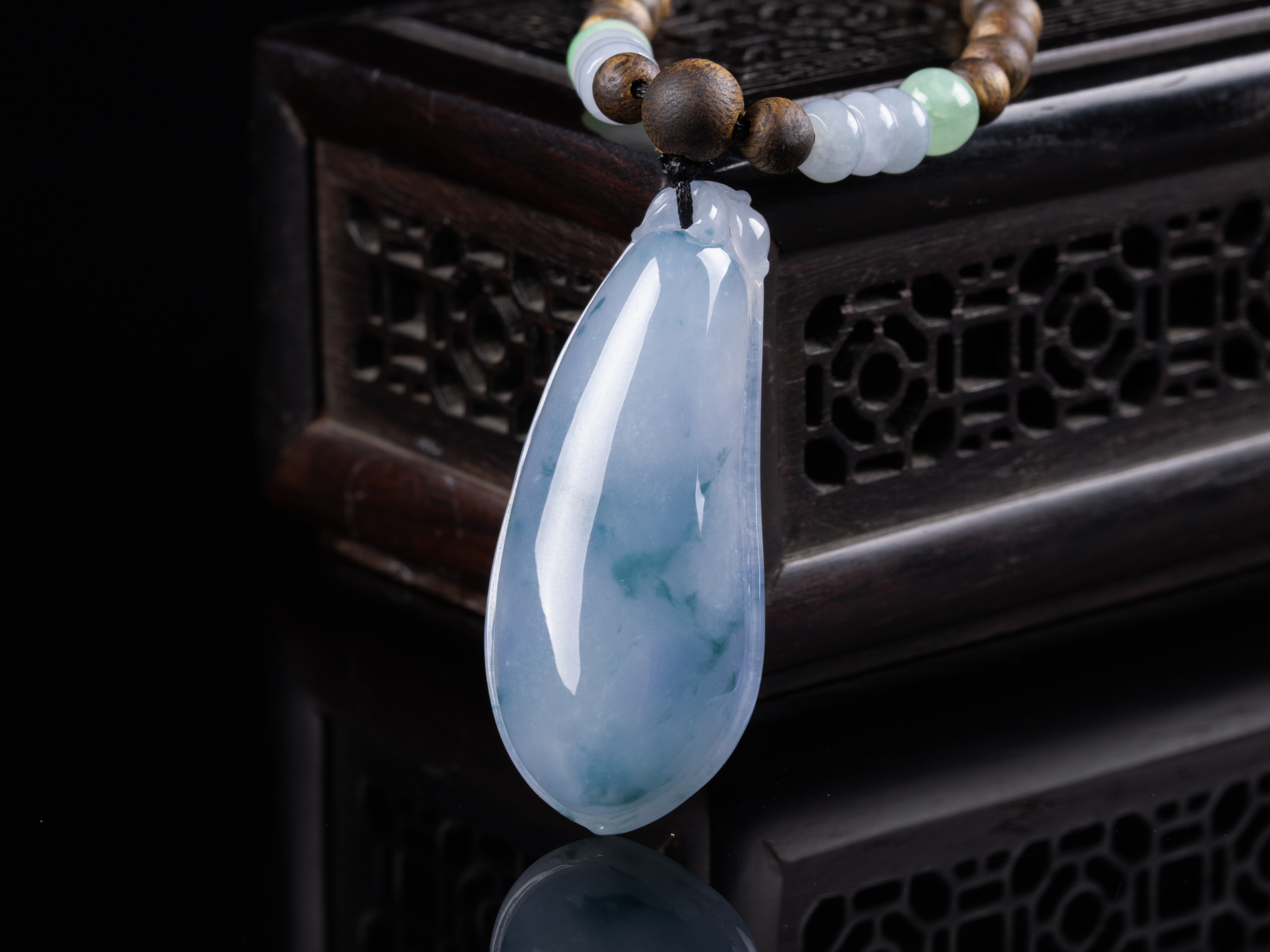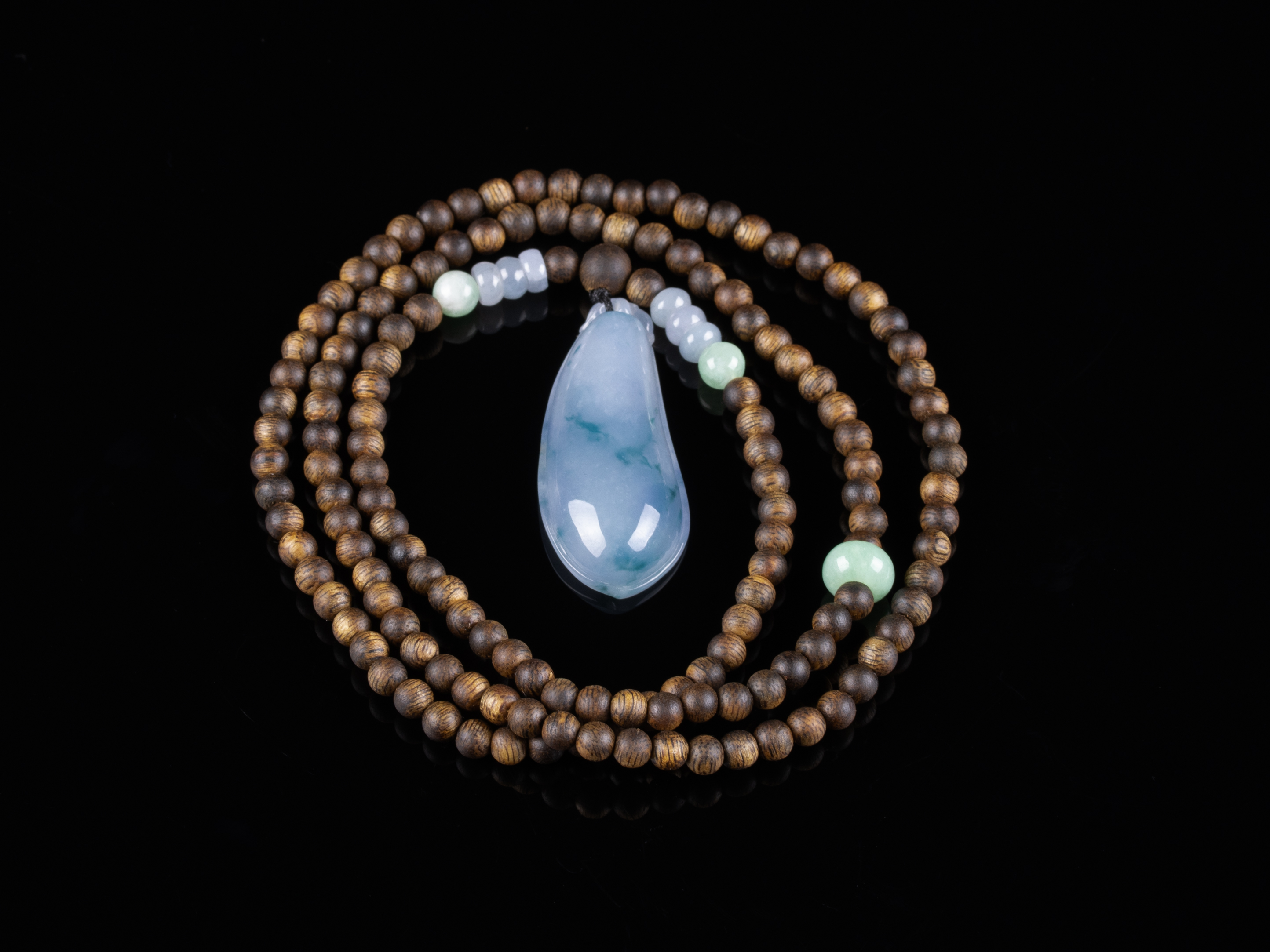 原创沉香+翡翠紫罗兰福瓜挂件,天然沉香圆珠4.6mm,原色原味,香味清甜自然,配珠:翡翠。紫罗兰底的翡翠福瓜还有天然飘花,底子细腻、形状饱满,18.2*42.4*8.5mm,整体气质古朴、祥瑞。
