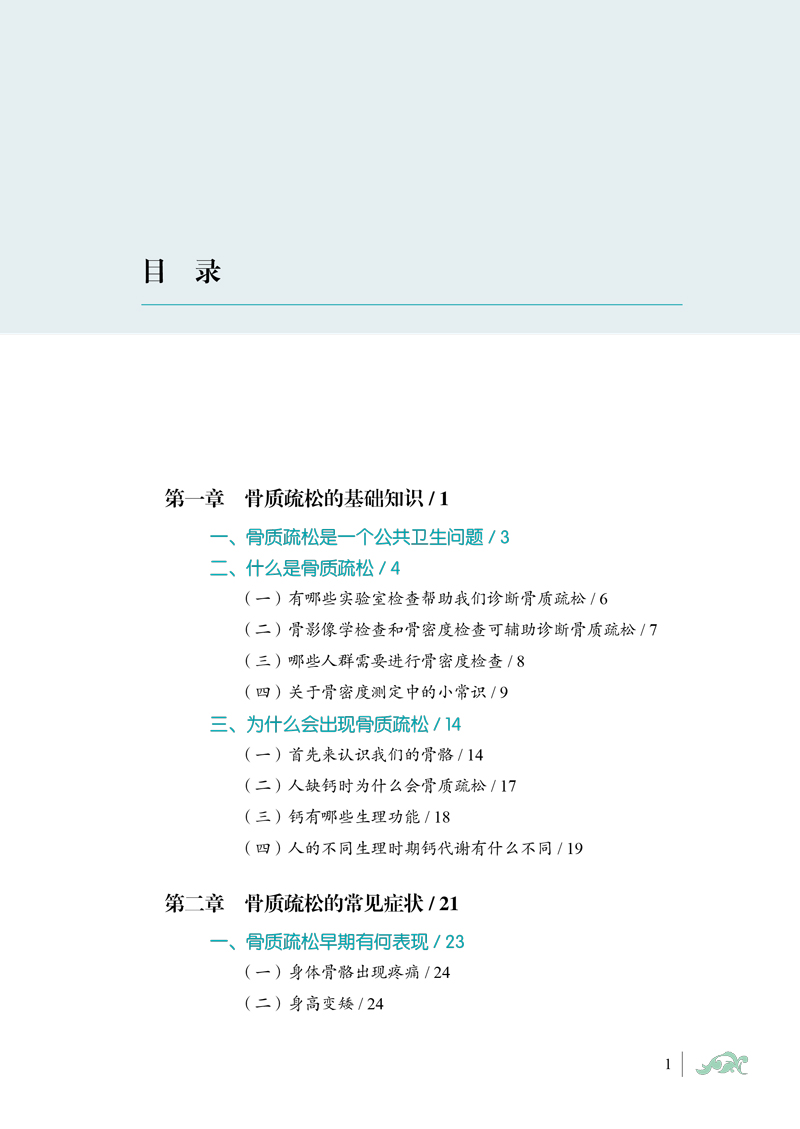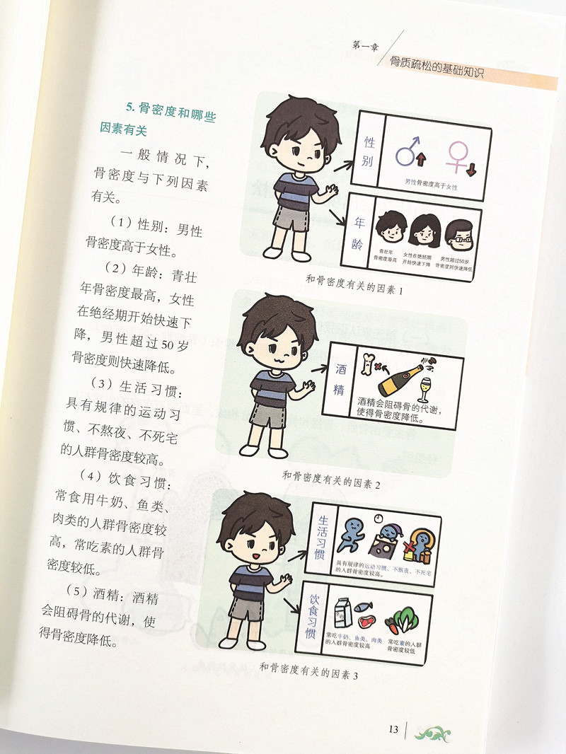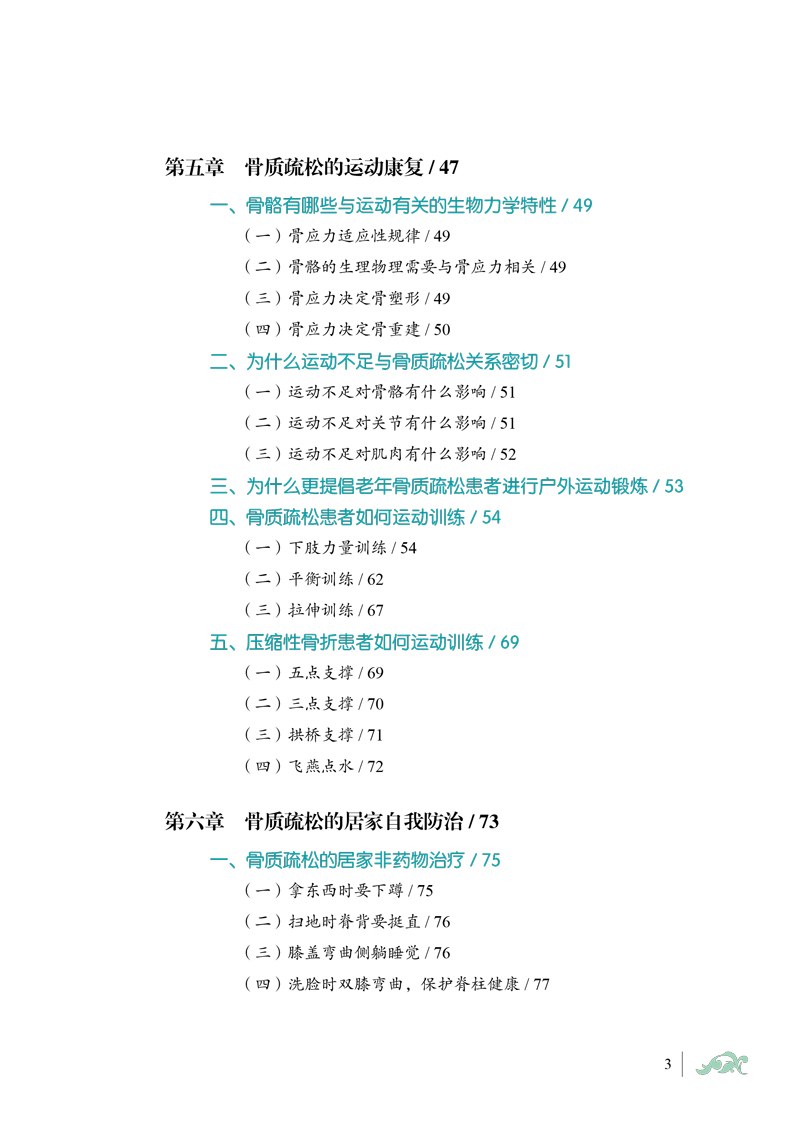 《骨质疏松症早期防治与居家康复》主要以科普的形式阐述,为患者提供从疾病防治、医院就诊、到日常养护、居家康复等全方位的疾病干预方案;推广中医健体传统运动功法(太极拳、八段锦、五禽戏等),将重点放在疾病的初期干预、居家干预,让病人少得病、不得大病。本科普图书针对的对象为普通百姓,以漫画加文字的形式叙述;通过虚构以骨质疏松症为模型的卡通人物,创新漫画小故事的形式,解读我们身体骨骼的基本结构、预防跌倒的居家安全、日常起居的正确姿势、骨质疏松症患者如何训练等。同时兼顾骨质疏松症不同类型,例如原发性骨质疏松、继发性骨质疏松和特发性骨质疏松等,以图文结合的形式科普骨质疏松症的易发因素、高危人群、早期征兆、预防措施等内容。漫画的简便和小故事的趣味性能够吸引普通百姓,对比的模式能加深民众对疾病的自我认识与管理的重视。该科普图书预期可在中老年人骨质疏松早期防治、以及居家康复方面起到良好的促进效果。
