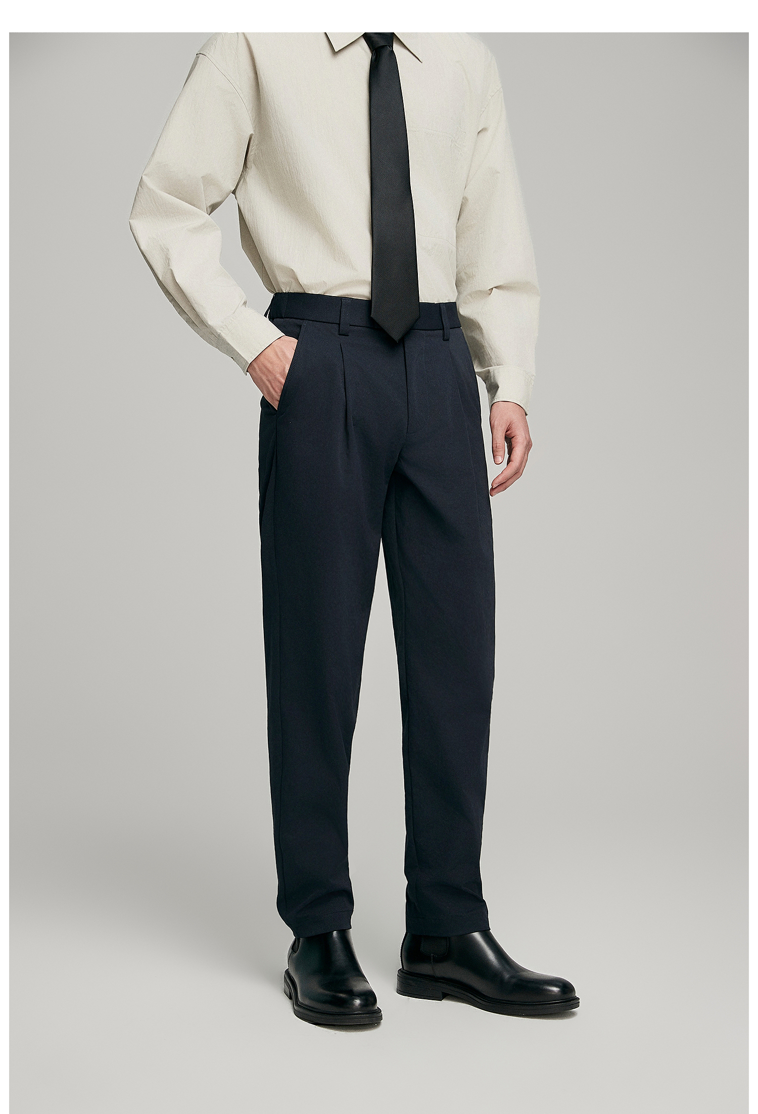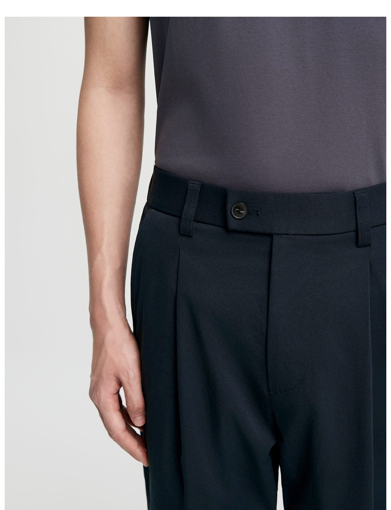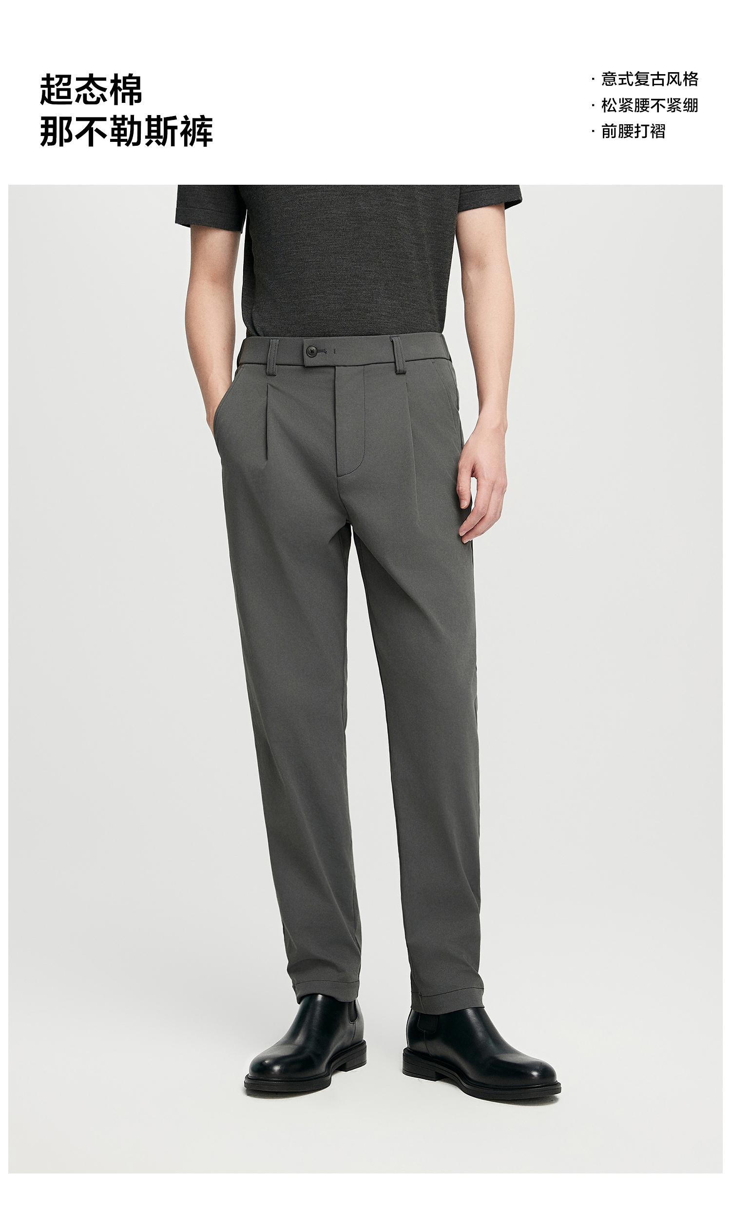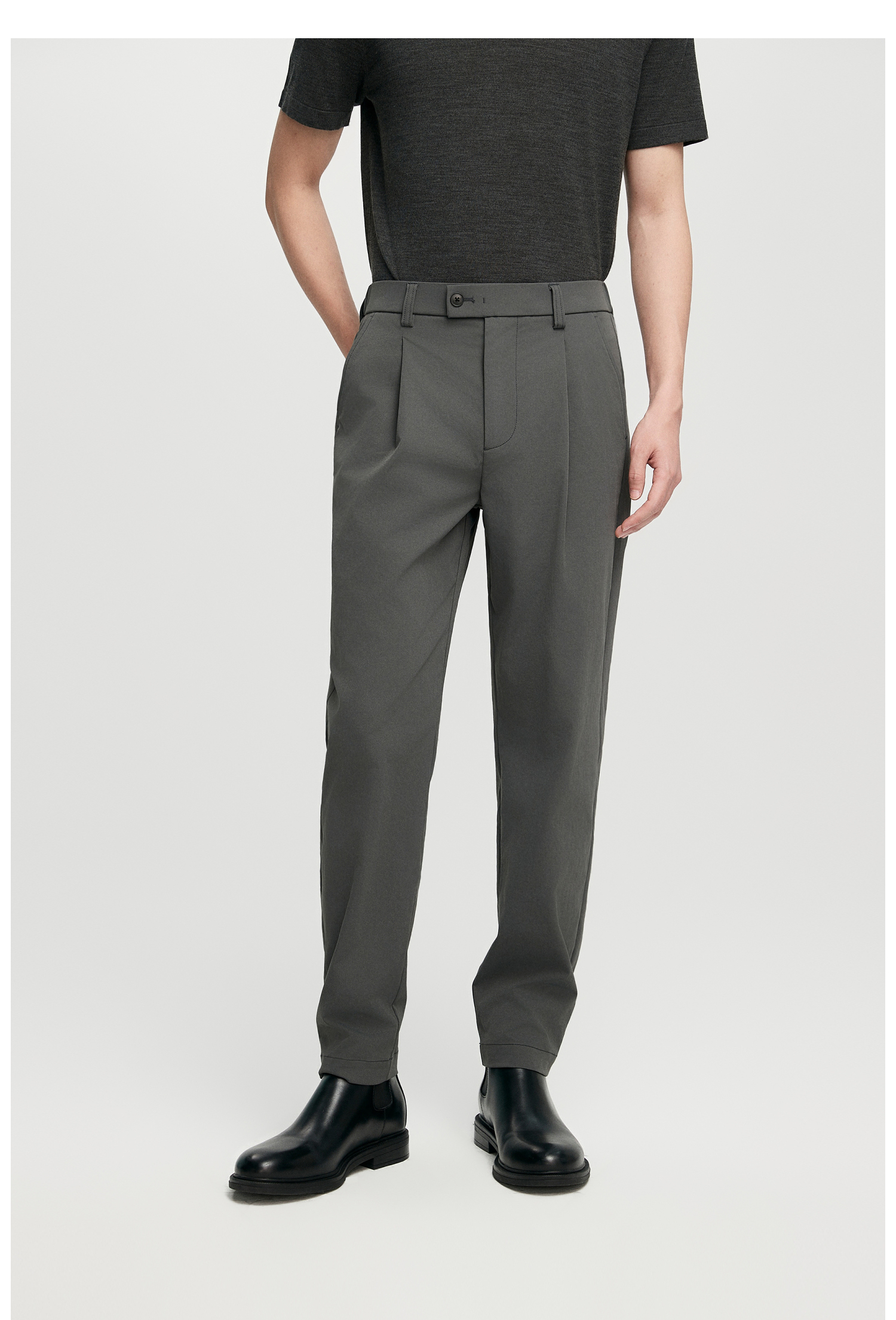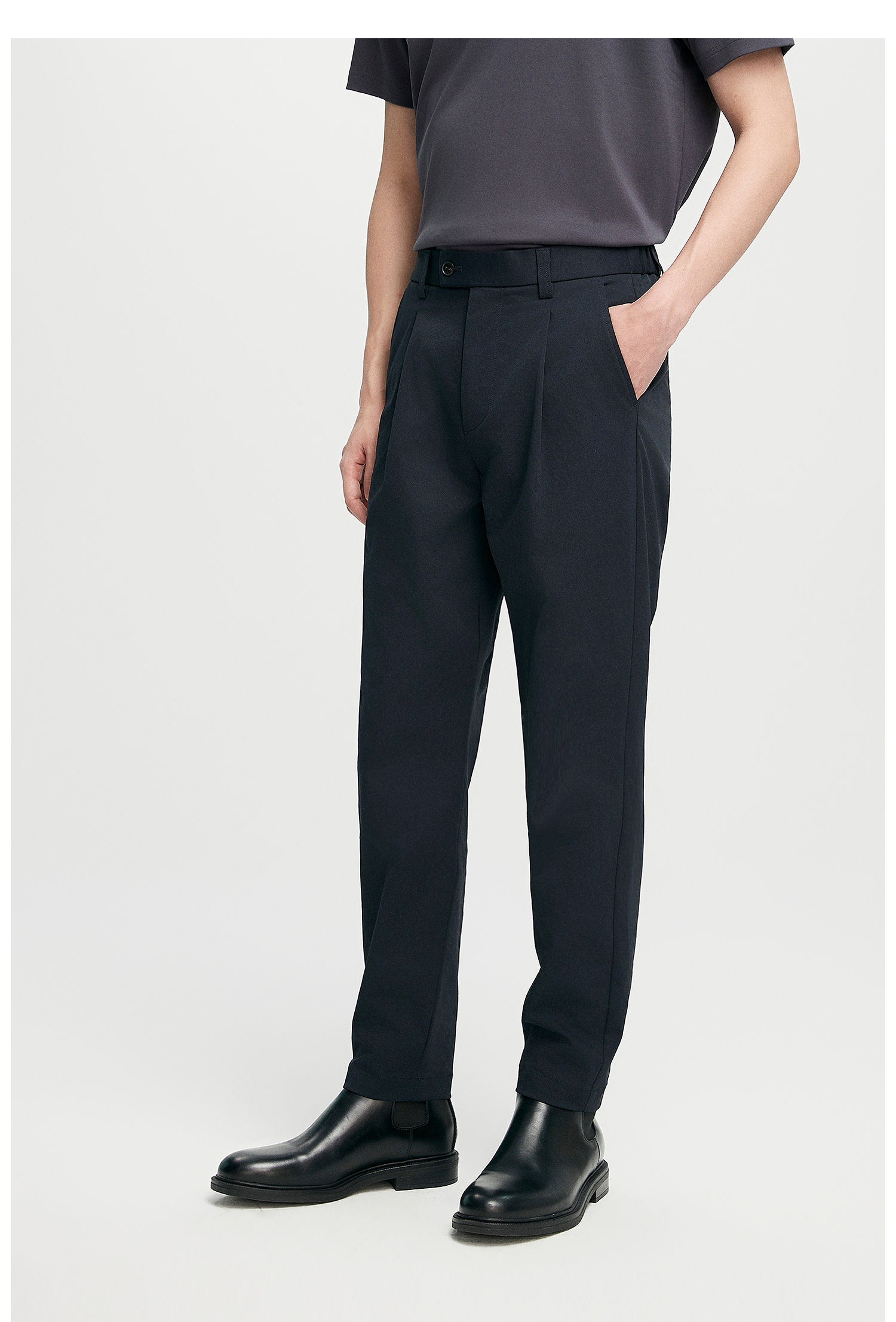 棉仓363818010-轻量超态棉那不勒斯腰单褶锥型休闲裤