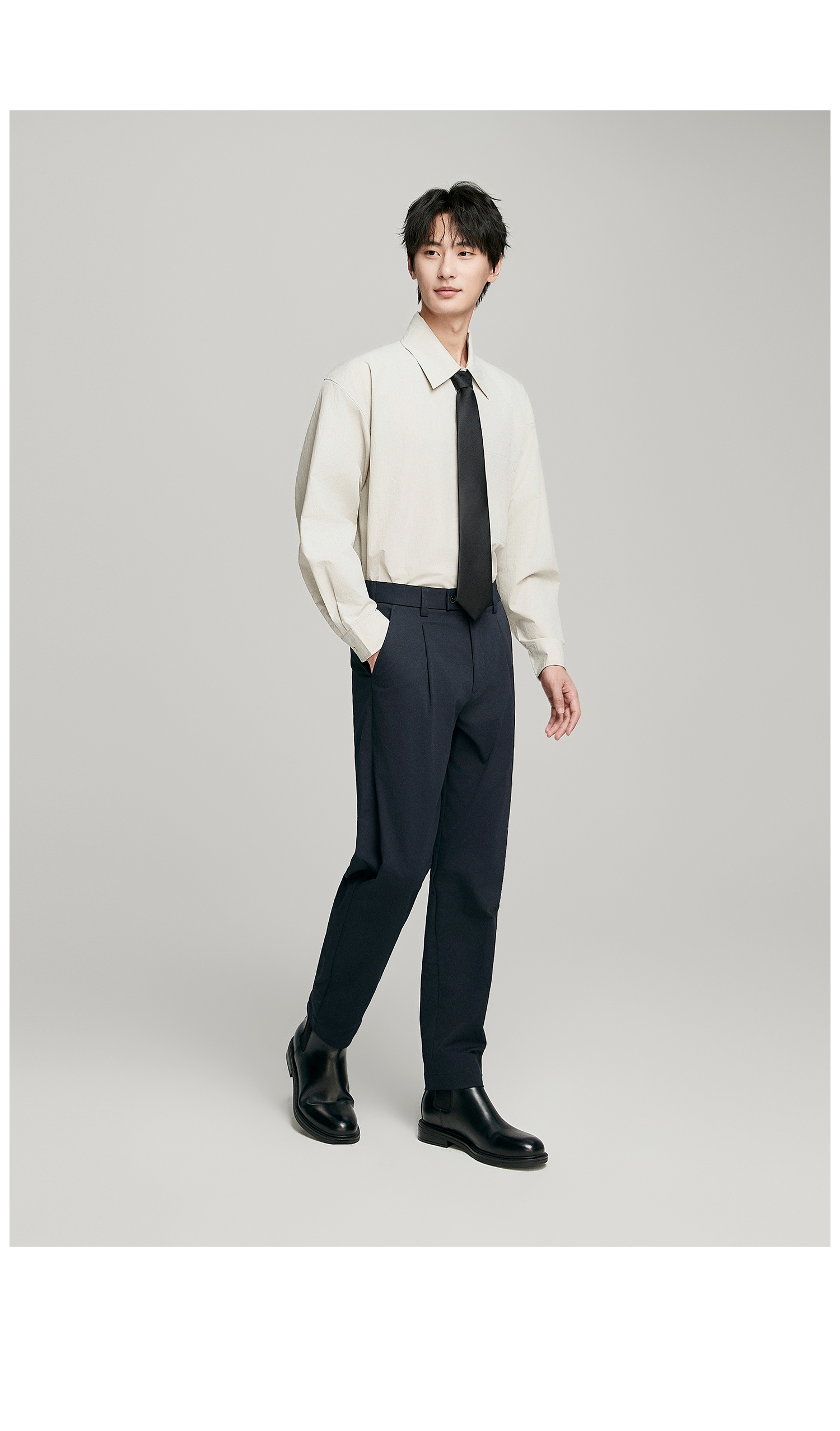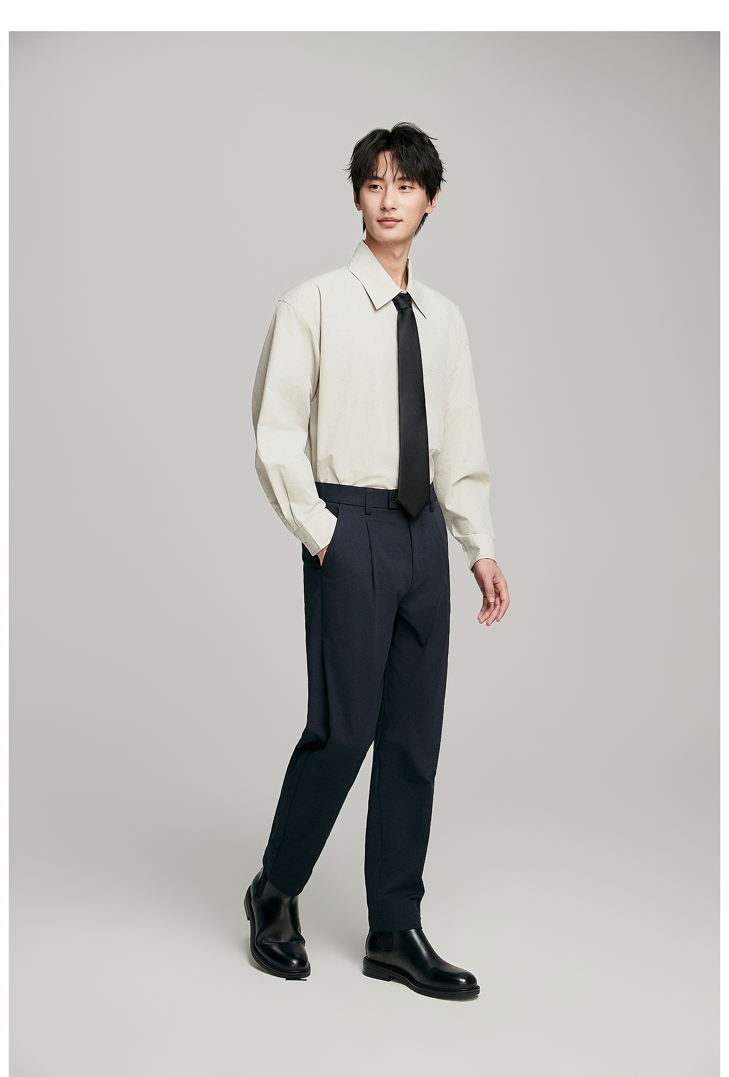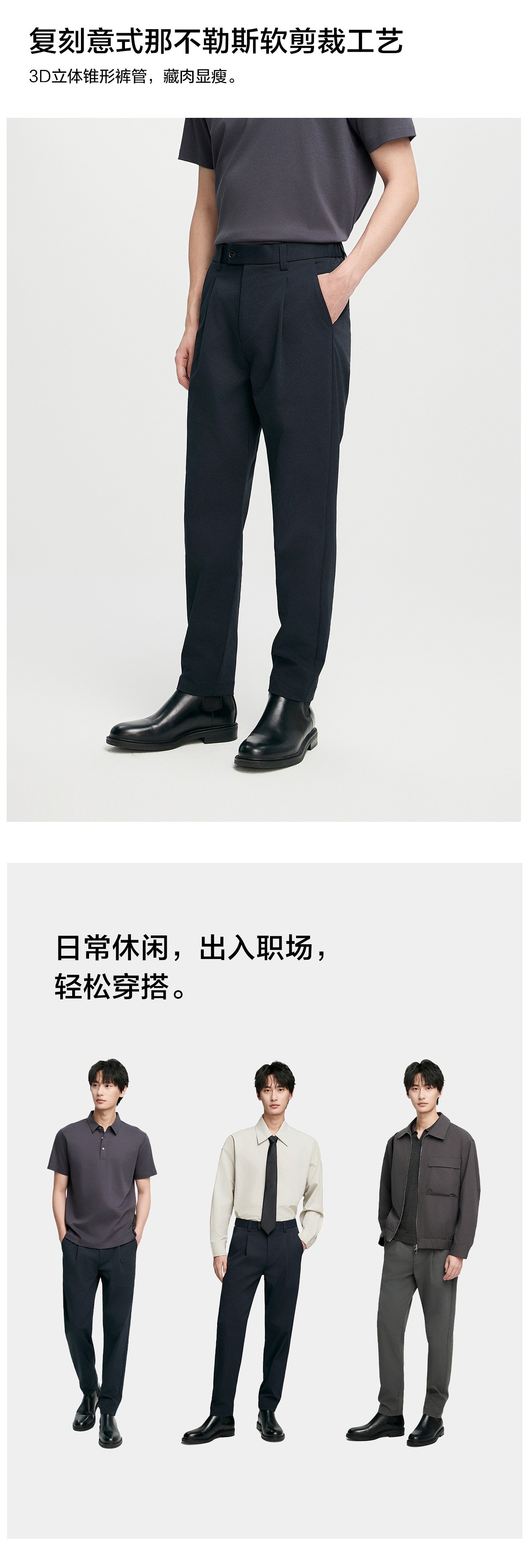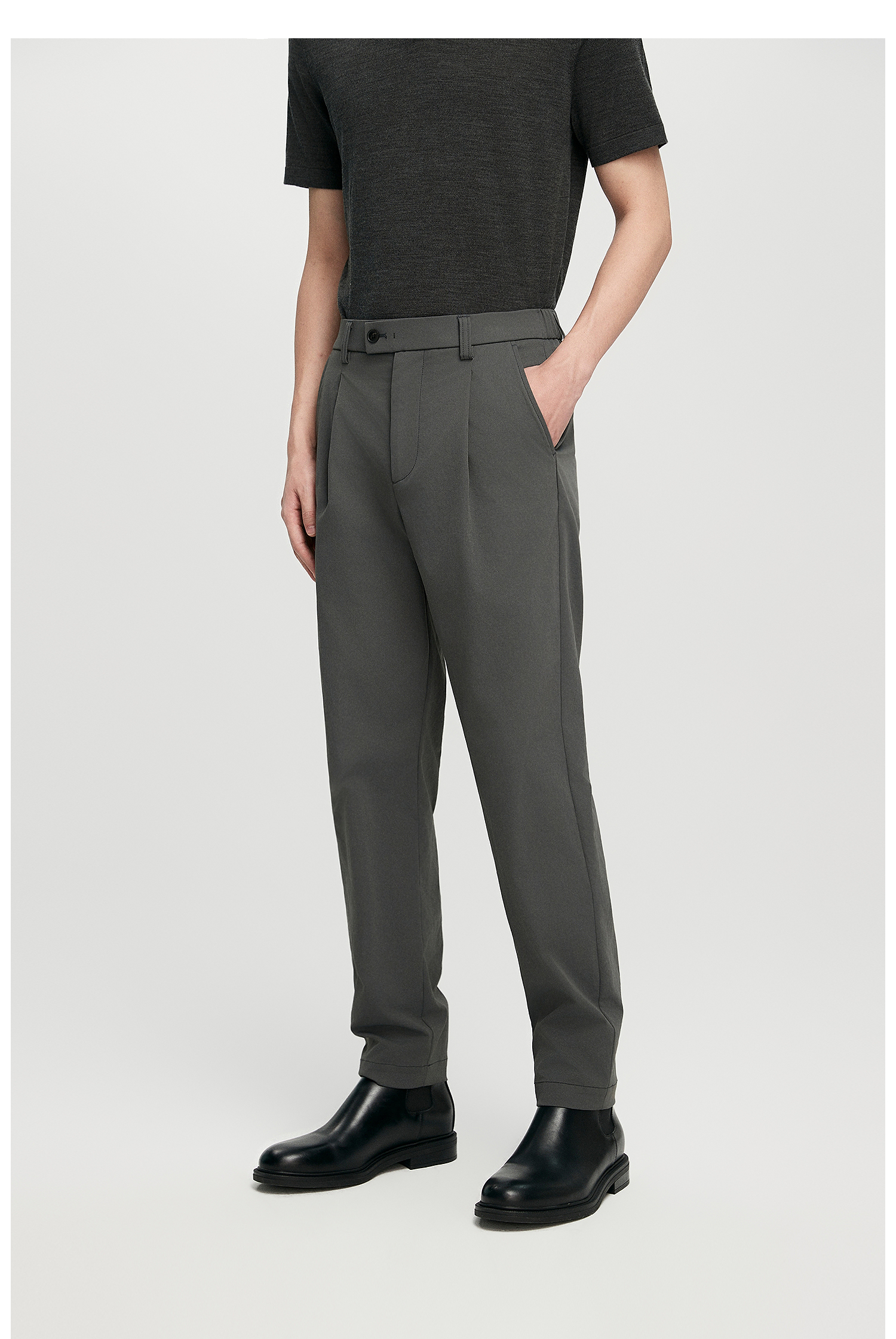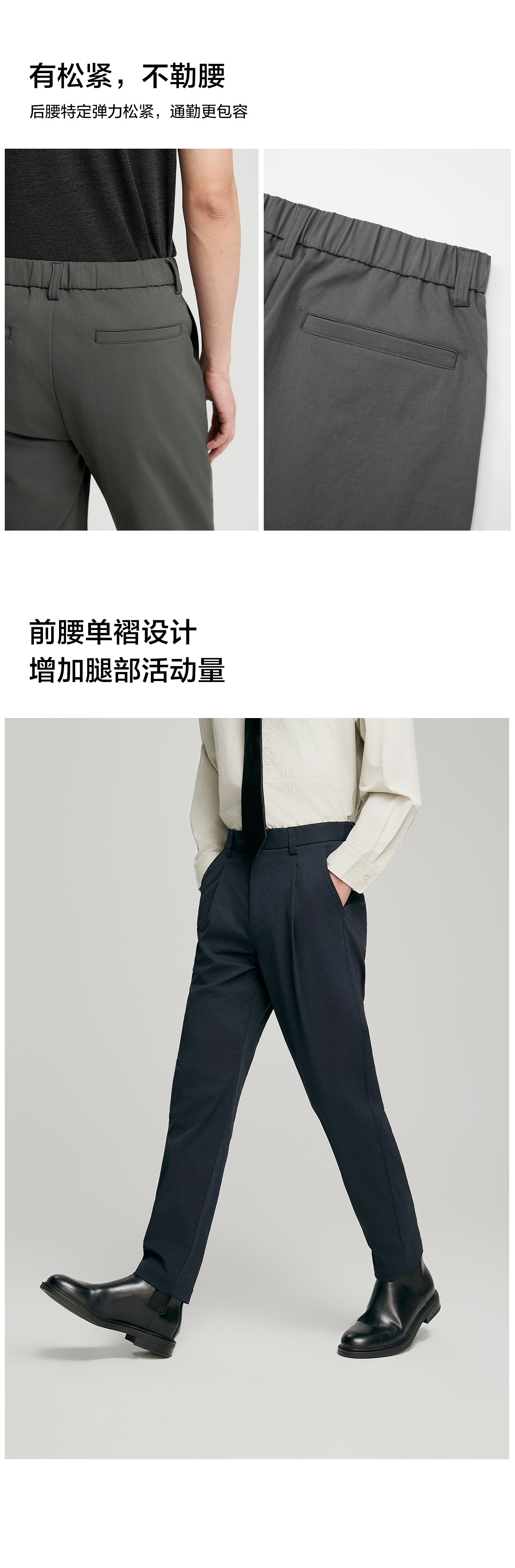 棉仓363818010-轻量超态棉那不勒斯腰单褶锥型休闲裤