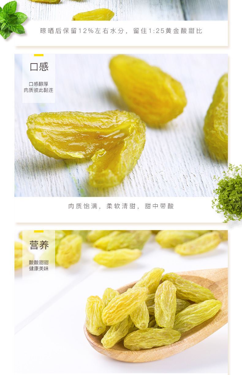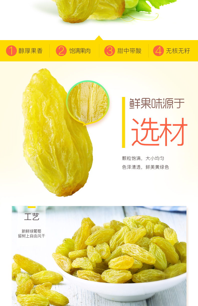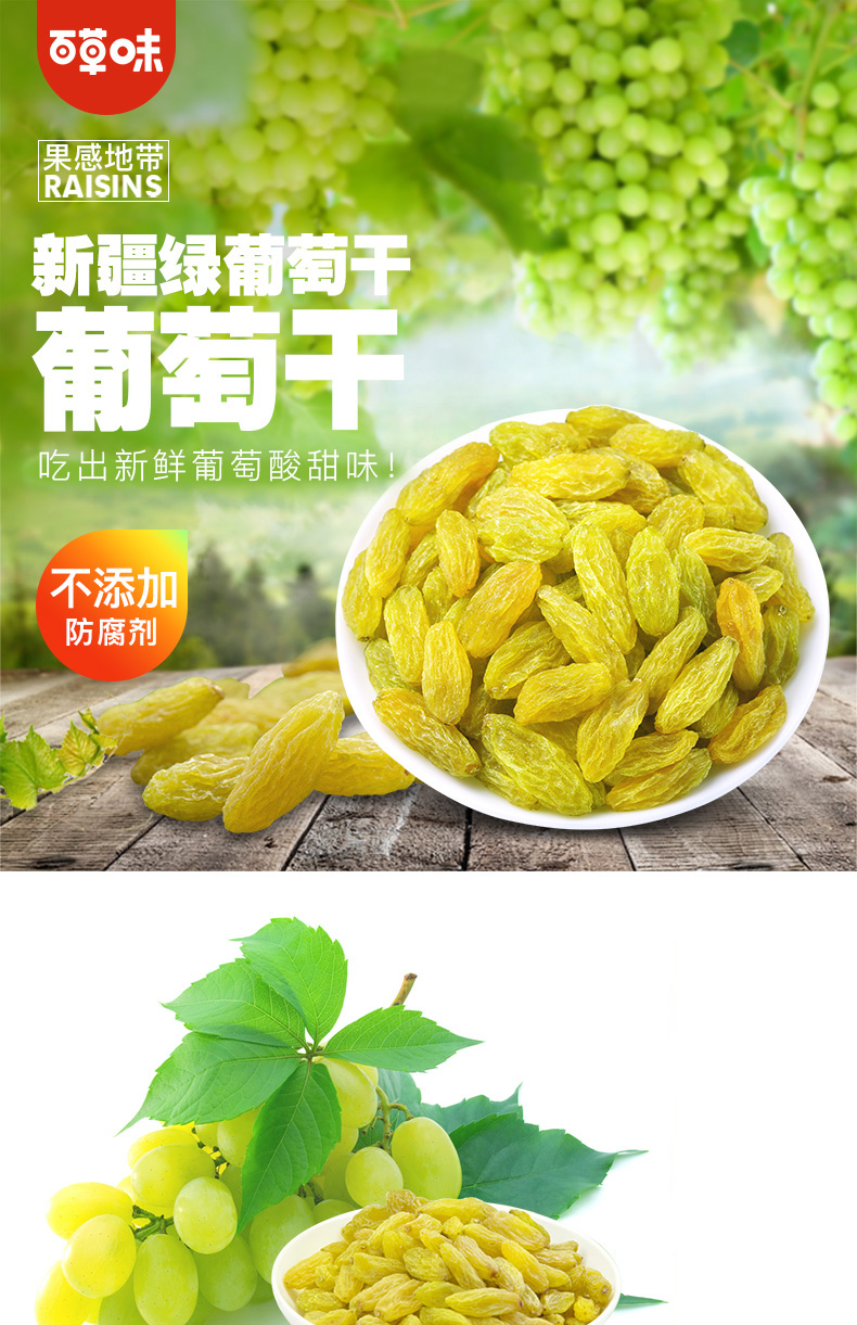 百草味无核绿葡萄干100g罐装新疆特产免洗一级大果干零食蜜饯休闲
