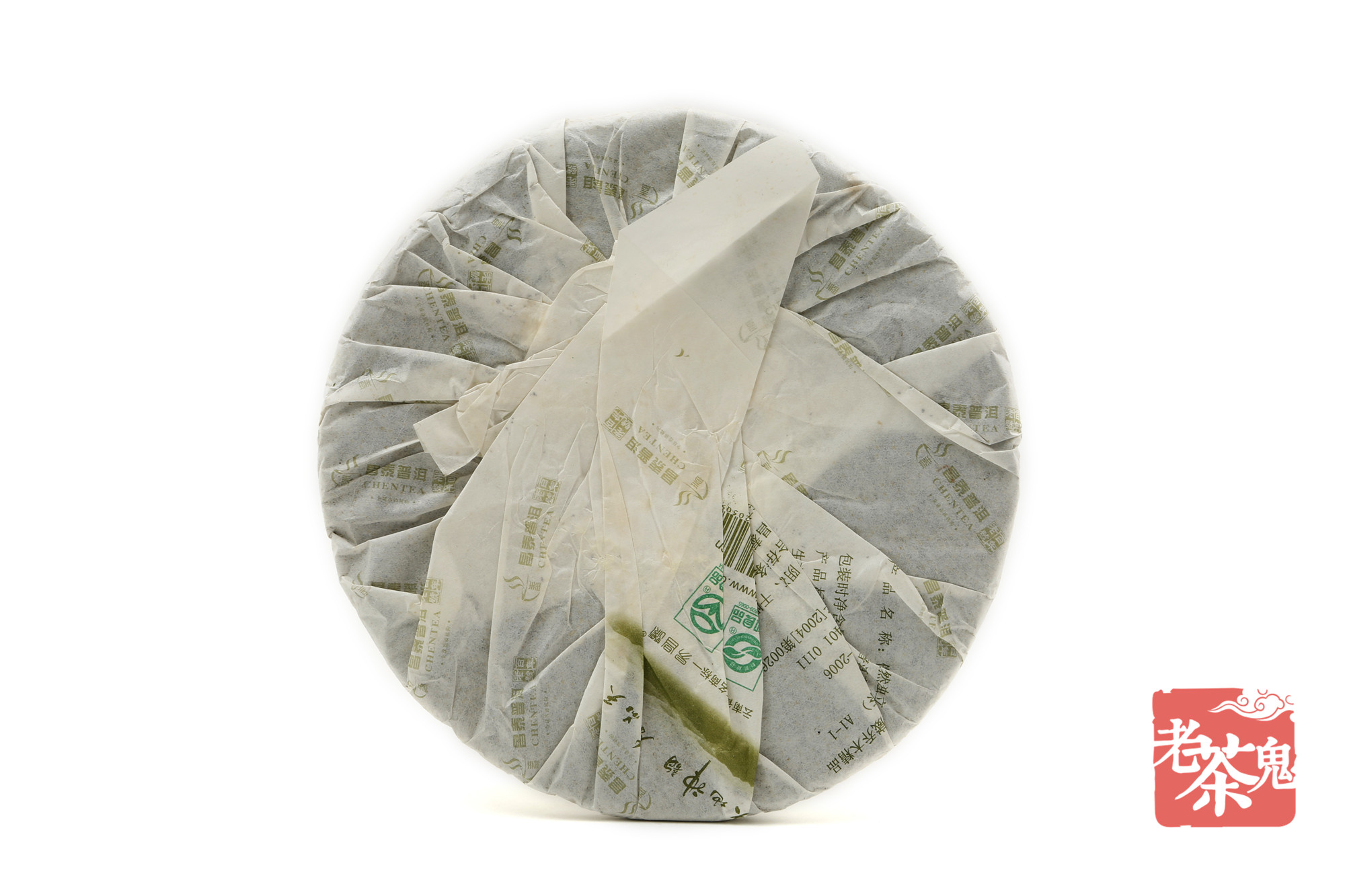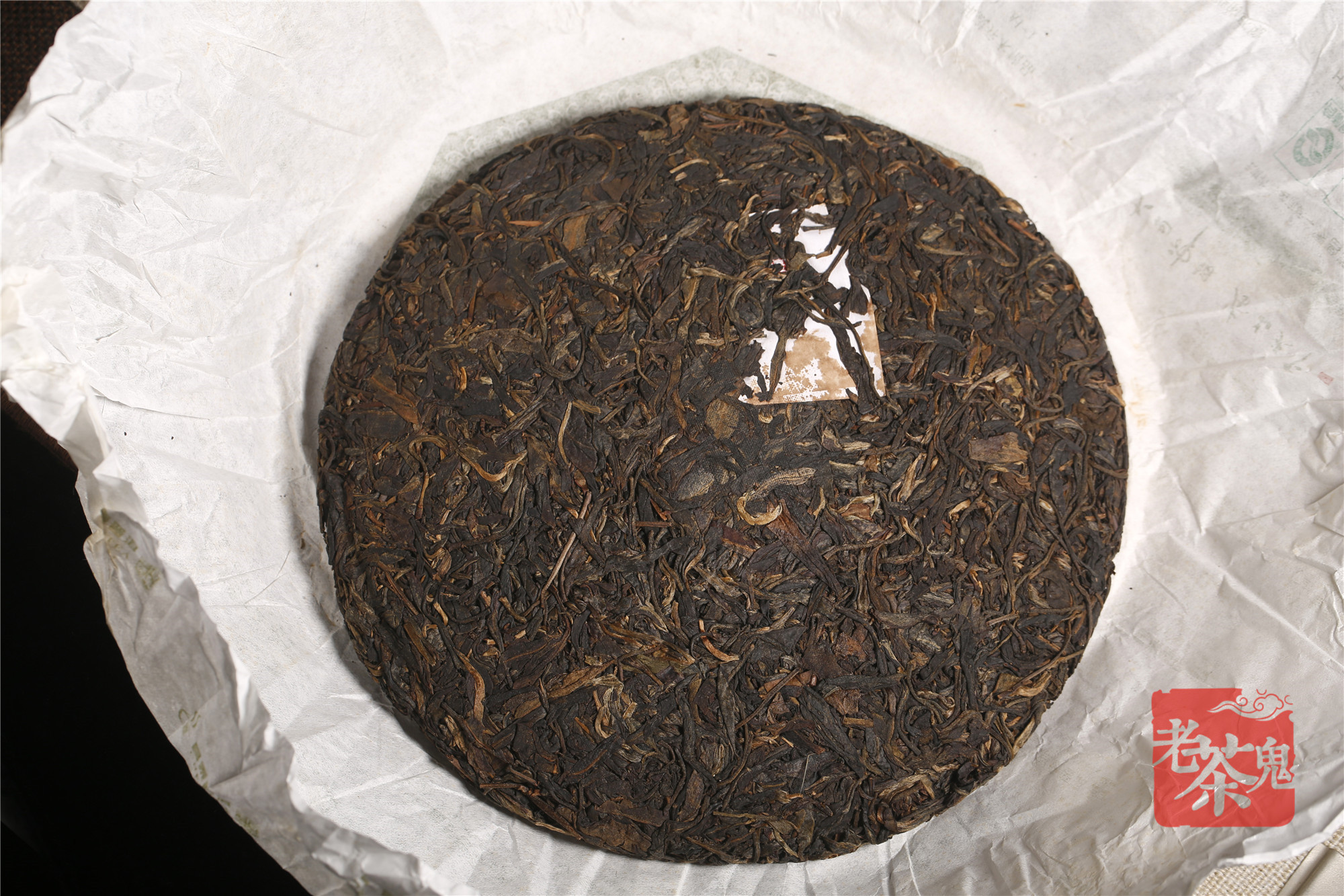 400克大饼,每筒7饼,采用天然竹箬包装,整件6筒共42饼。仓储环境优良,外包装干爽,作为已陈化十五年的中老期茶品,包装绵纸偶有虫蛀和茶油渗出,属正常现象,不影响饮用。