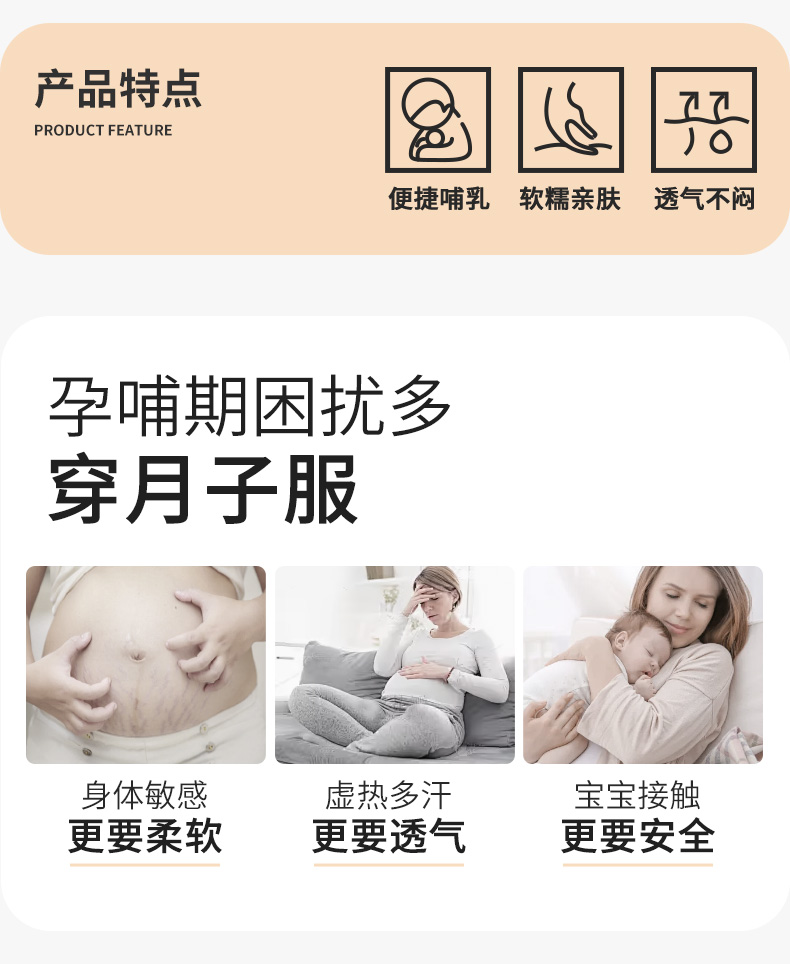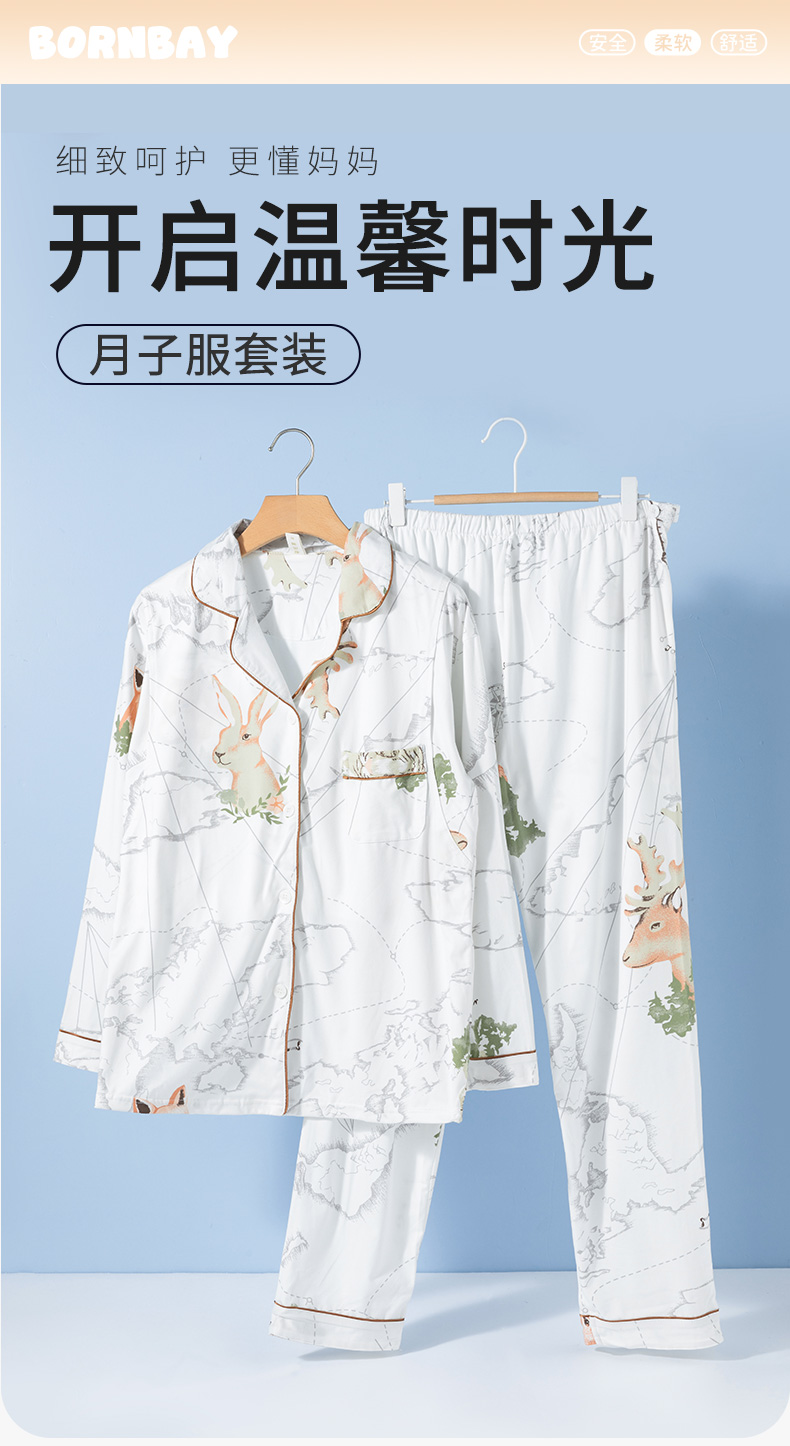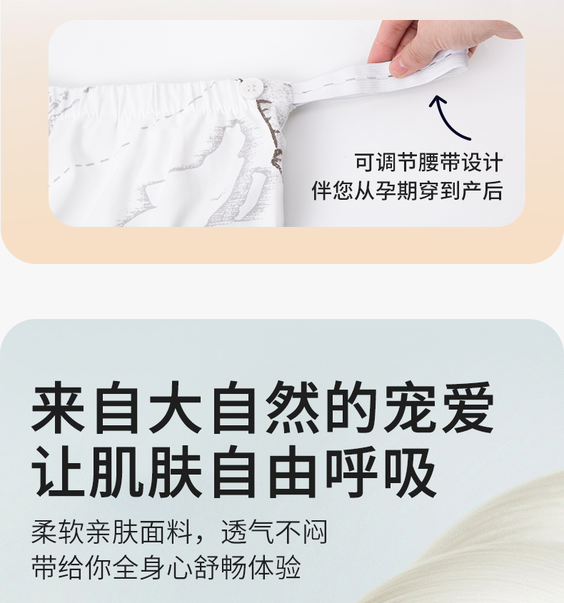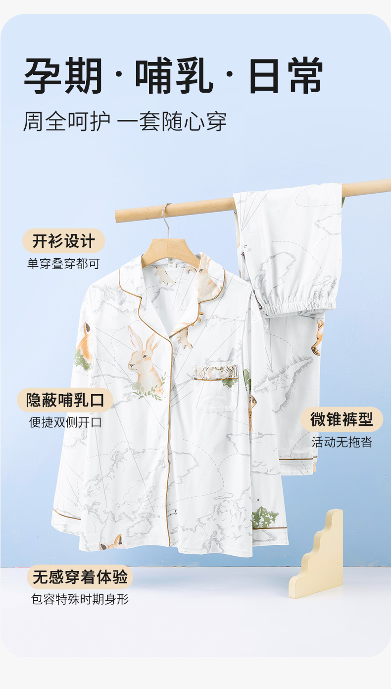 贝贝怡25春夏新款孕产妇家居服侧开便捷哺乳口可调腰长裤月子服套装ZB1EY003