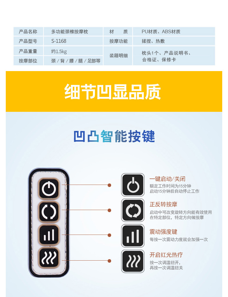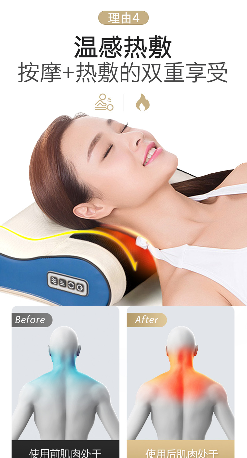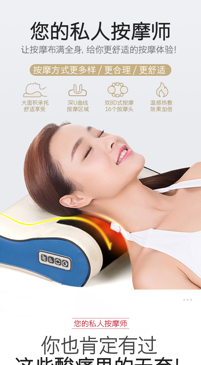 颈椎按摩器颈部多功能腰部全身电动枕头肩部脊椎脖子家用靠垫 随心享受、定时按摩、多部位适用