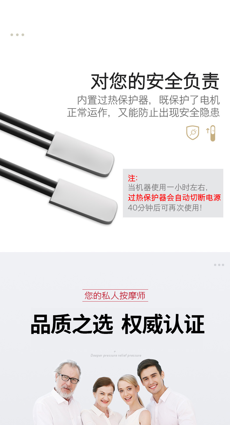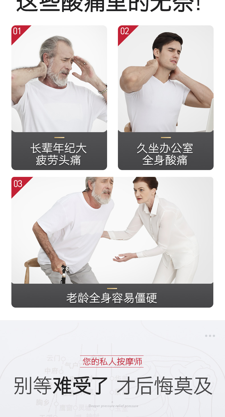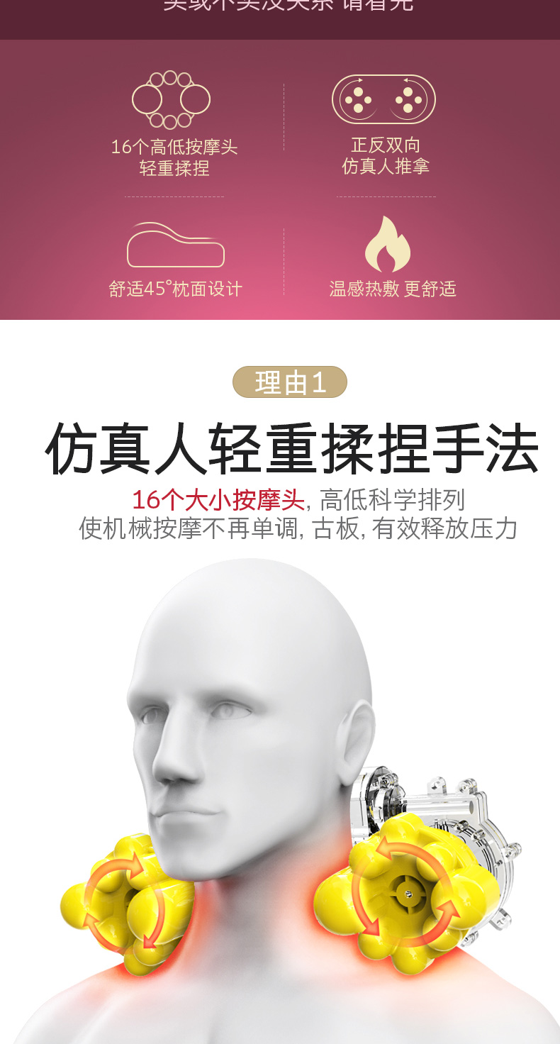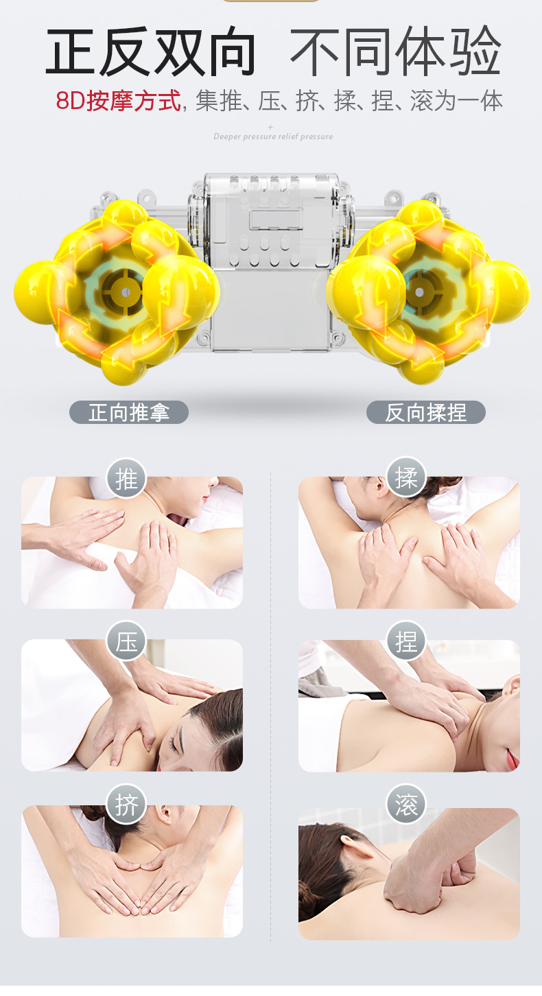 8D立体按摩设计、颗颗揉捏按摩头、温热辅助、正反转揉捏让您肌肉放松舒适享受
