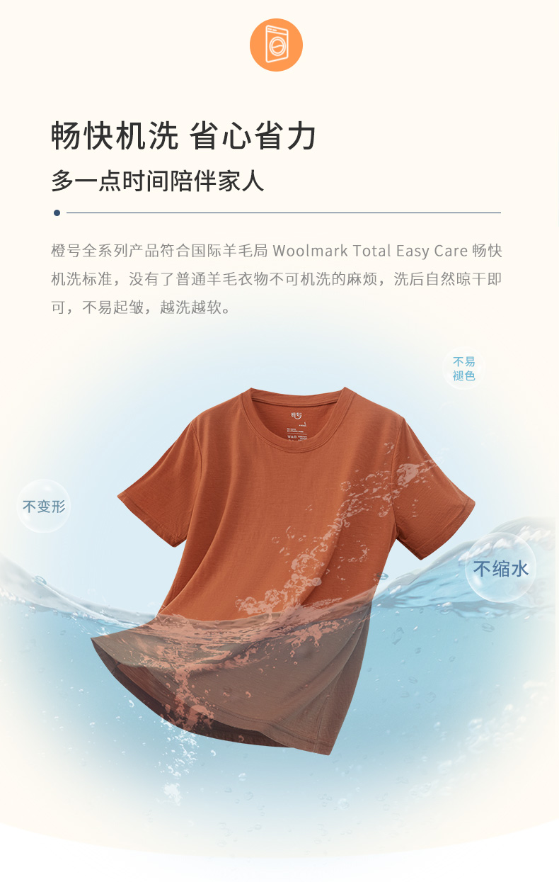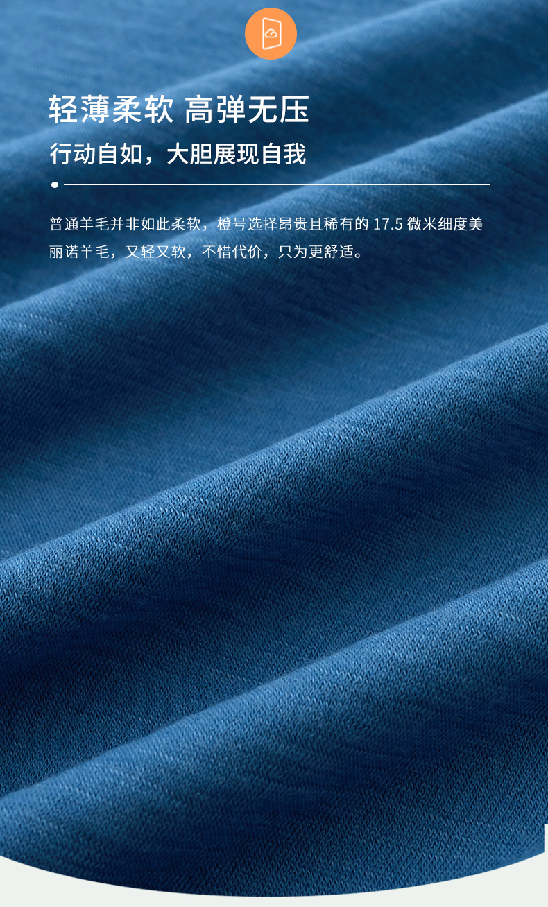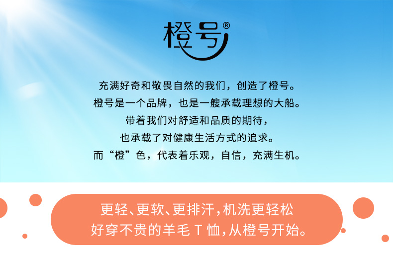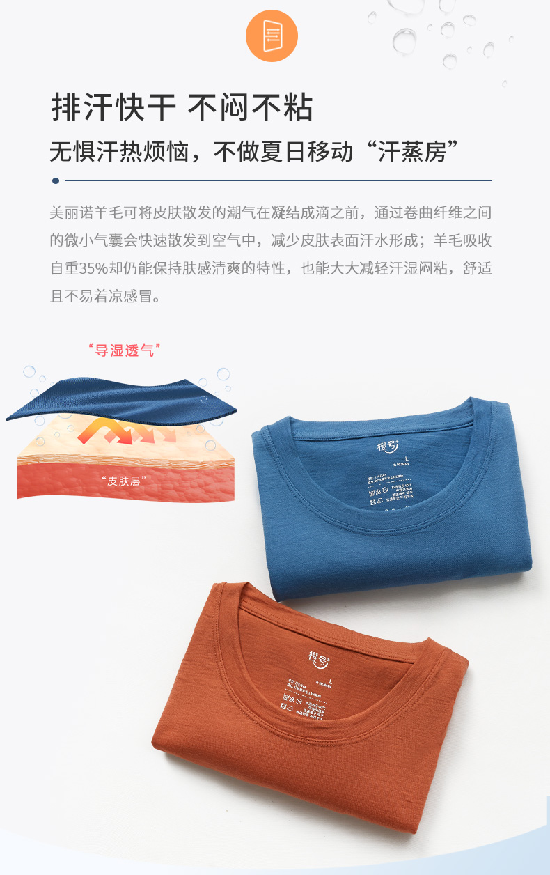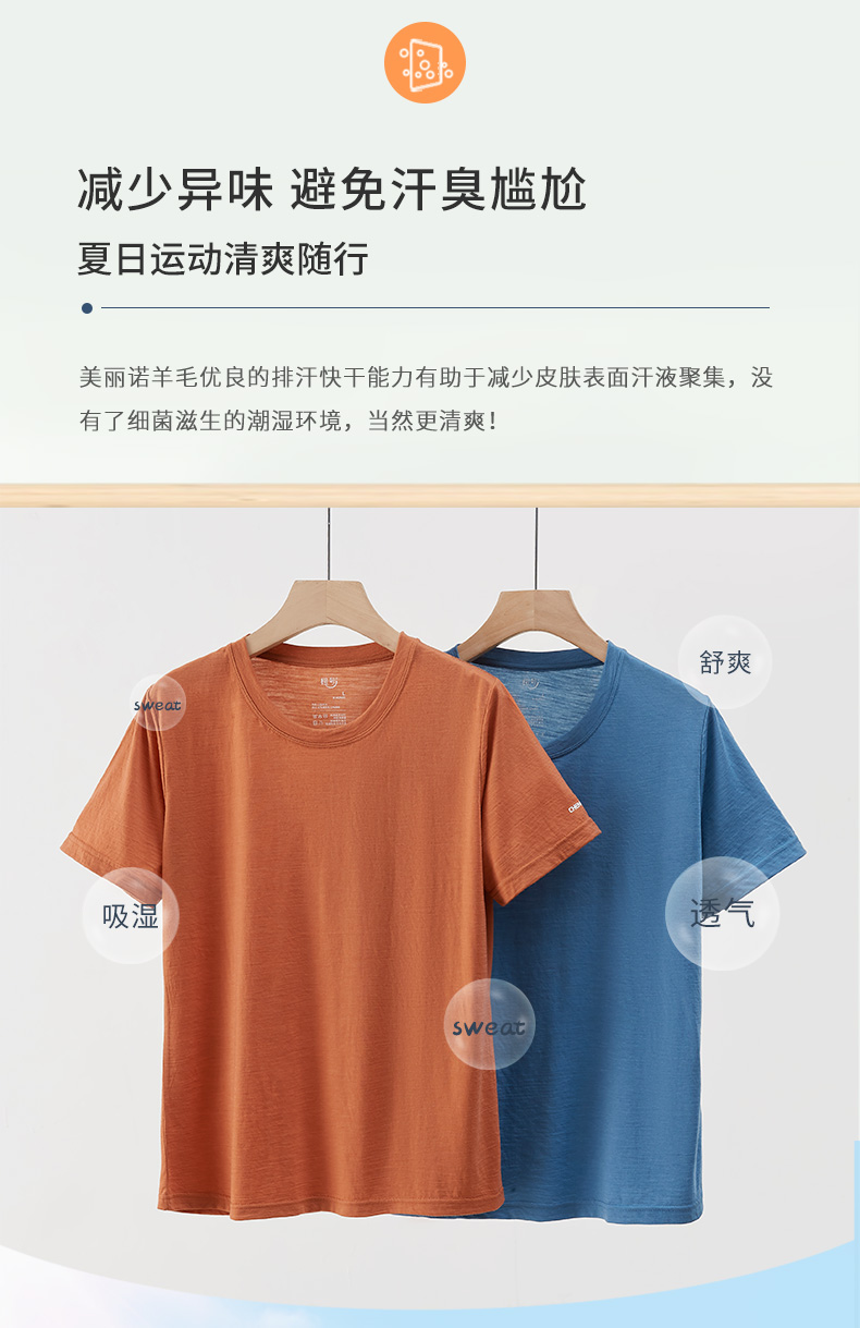 特惠清仓 橙号成人款短袖T恤/长袖薄衫 86%美丽诺羊毛 克重150g/m²