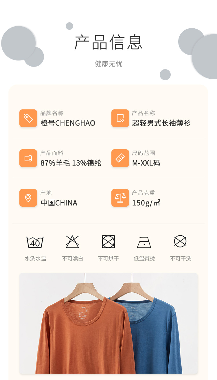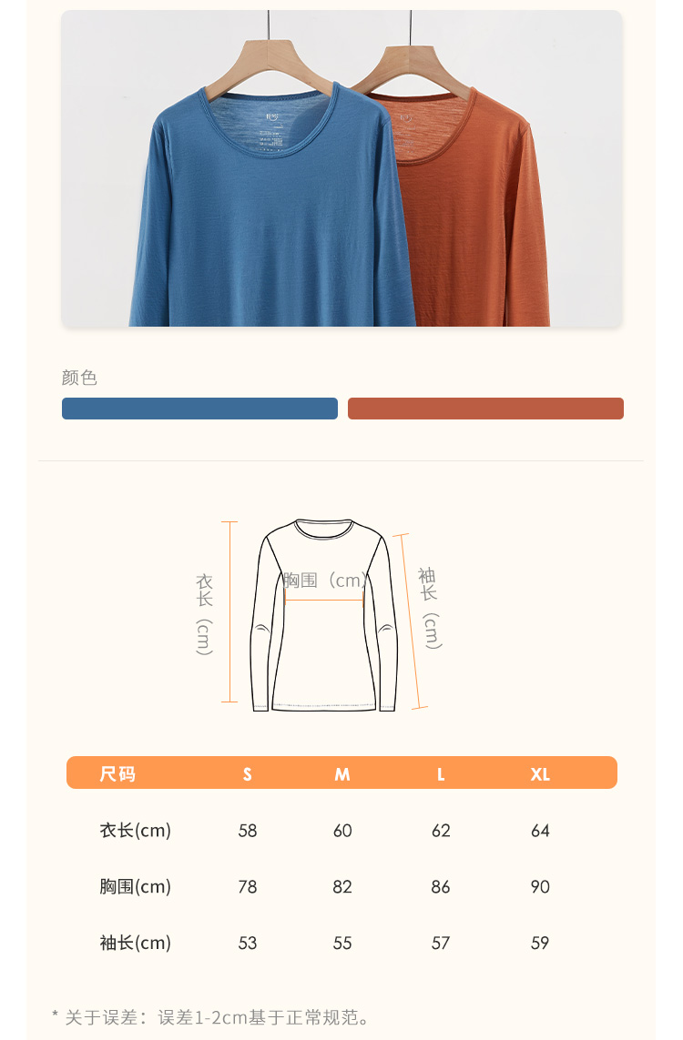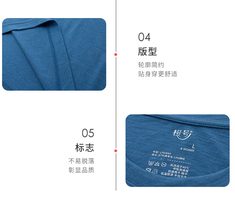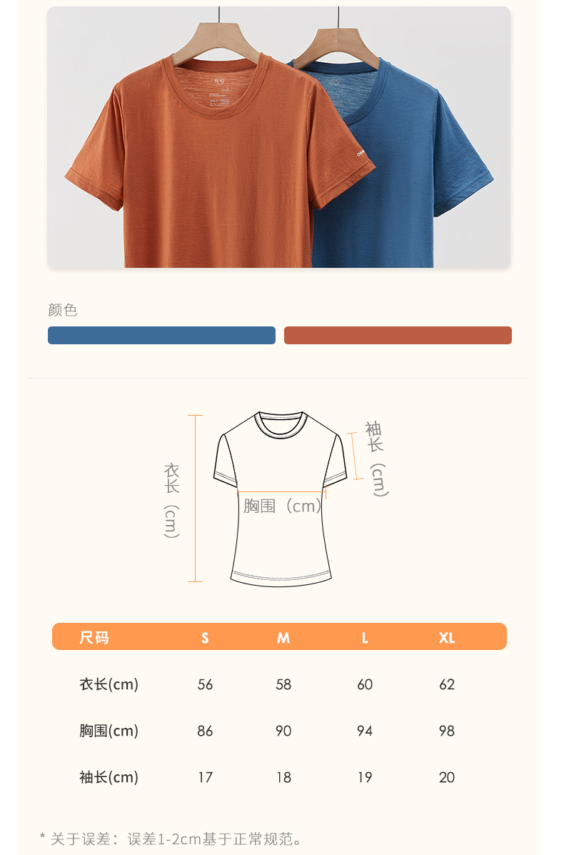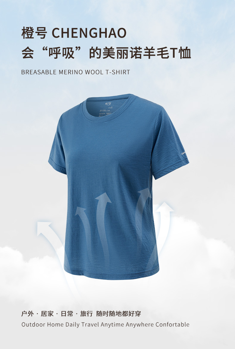 特惠清仓 橙号成人款短袖T恤/长袖薄衫 86%美丽诺羊毛 克重150g/m²