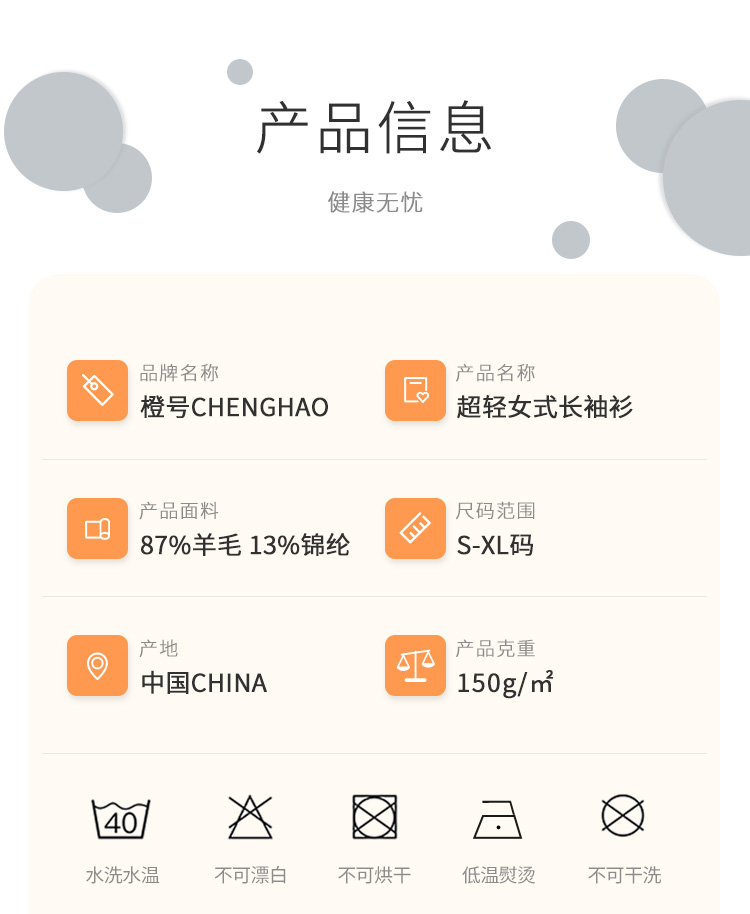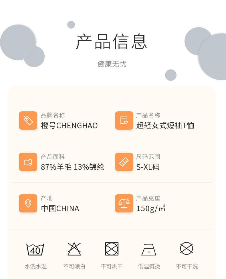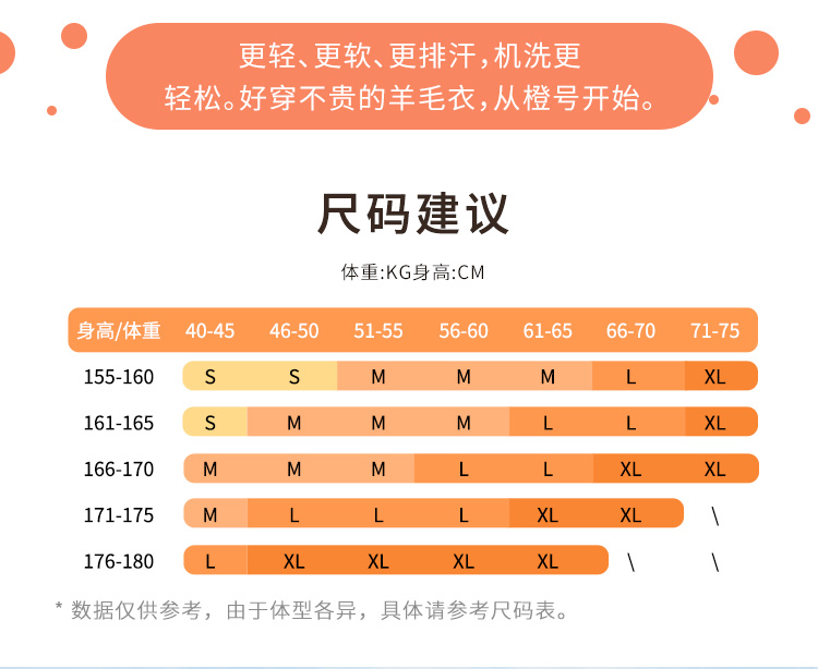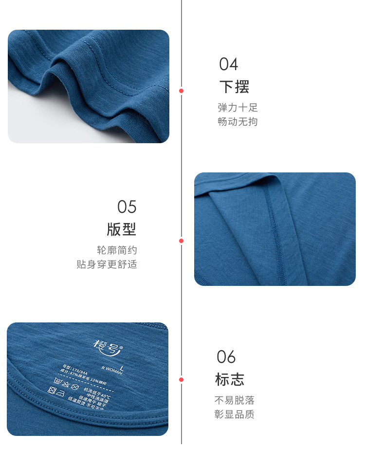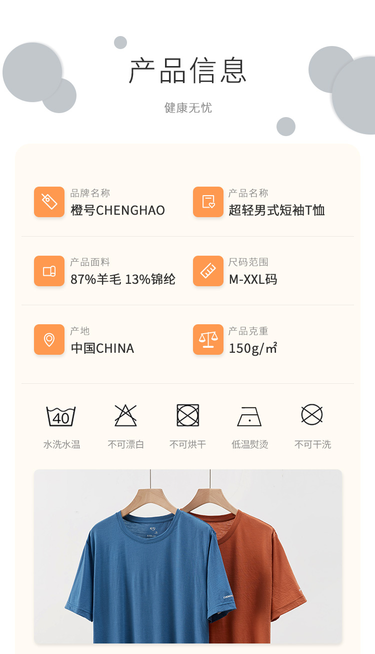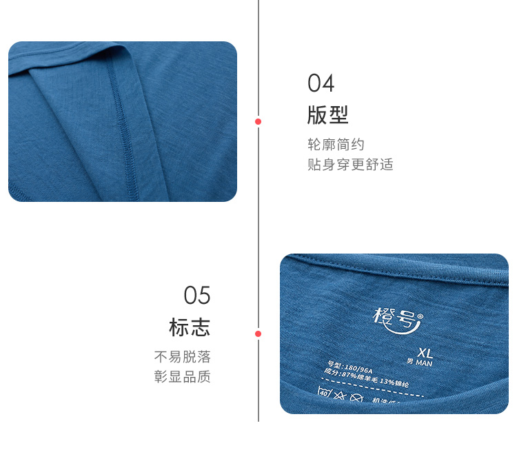 特惠清仓 橙号成人款短袖T恤/长袖薄衫 86%美丽诺羊毛 克重150g/m²