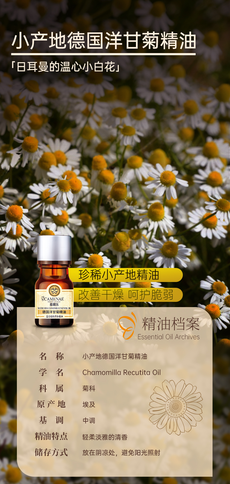 【双12大促】嘉媚乐小产地德国洋甘菊精油 保湿锁水 呵护肌肤