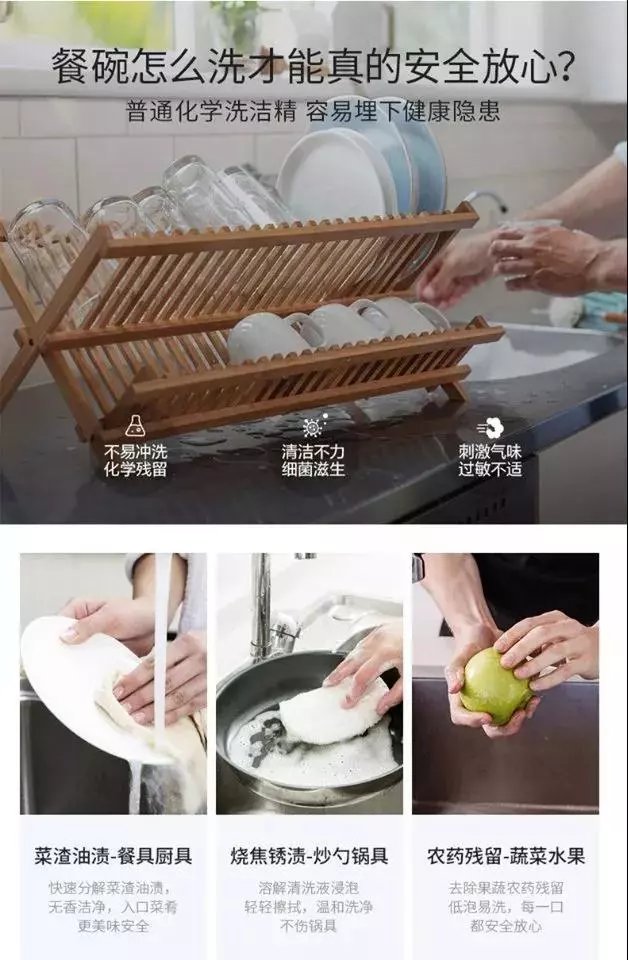 普通化学洗洁精总是不易冲洗,容易有化学残留或,容易埋下健康隐患。