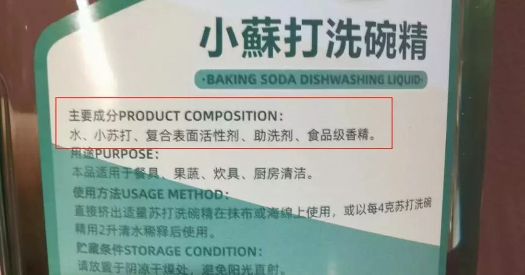 成分:水、小苏打、复合表面活性剂、助洗剂、食品级香精