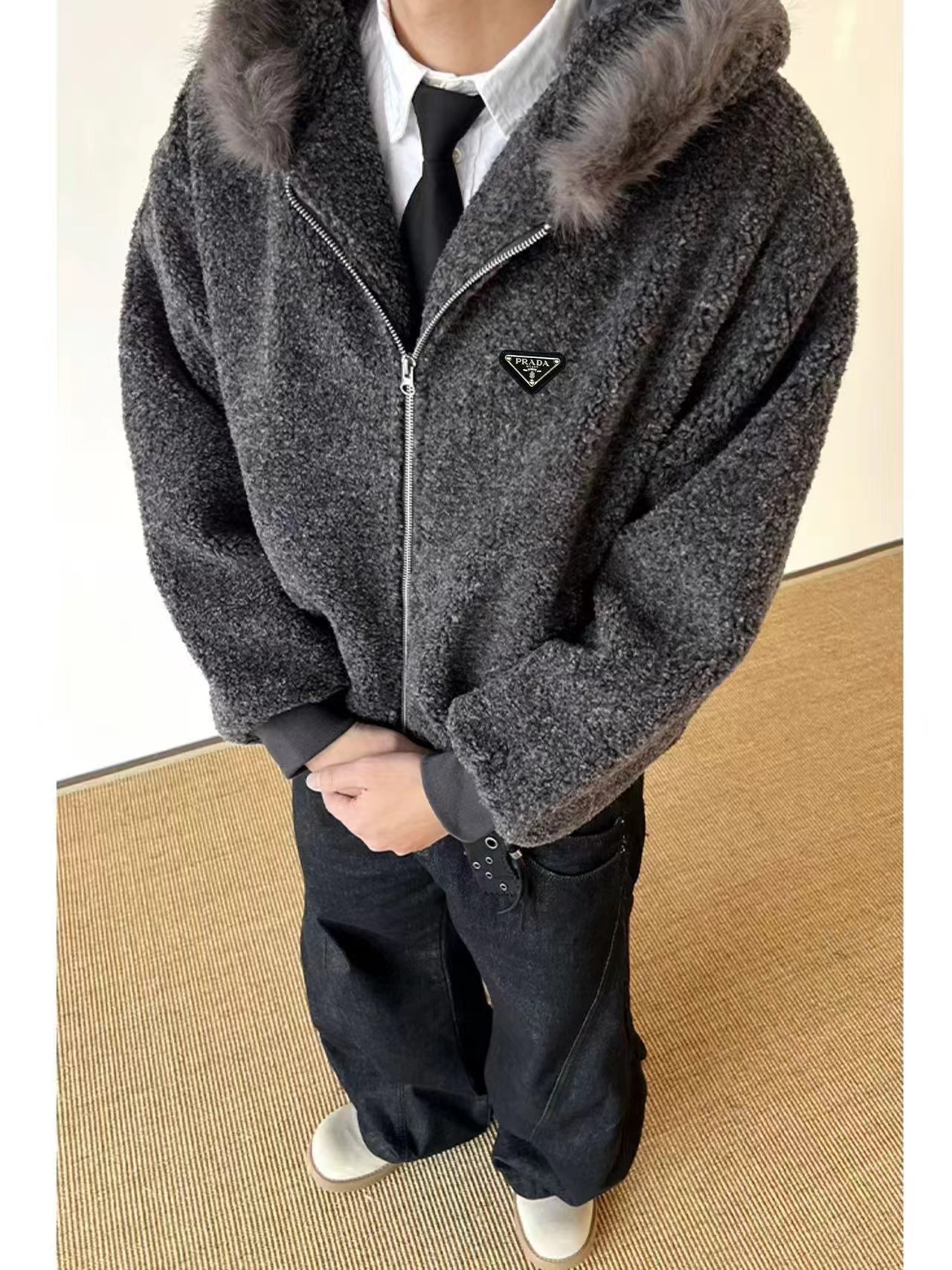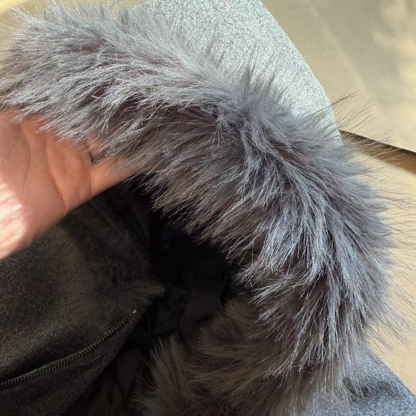 冬季仿羊绒毛领糕级灰连帽棉服2025年老钱和座山雕毛领新融合 个性糕级的灰羊绒 不再仅仅是冬天的御寒品 它也能成为冬季打造时尚的主角 全身采用高克重的肤的仿羊绒面料 内里绗棉舒适保暖 袖口下摆都采用高织高密的罗纹设计 锁温保暖的同时更加加固了整体的版型 不臃肿 上身糕级显贵气 连帽灰狼毛的毛领 更加彰显个性 胸前定制精典倒三角标logo 逼格拉满 大厂做工 三标辅料齐全 男女情侣款
