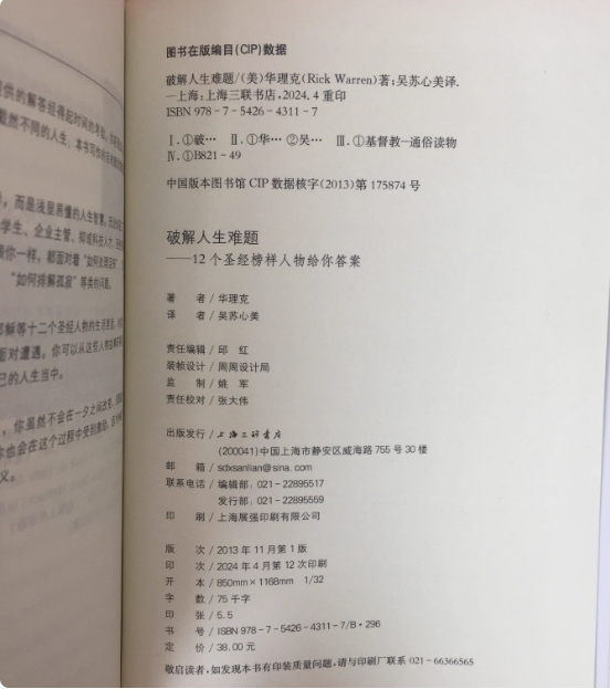 华理克写道:“你会在这每一个探讨里面,找到简单的方法,将神的真理应用在你的生活、家庭及工作上;你若要从这本书得到多的收获,那就去身体力行!”