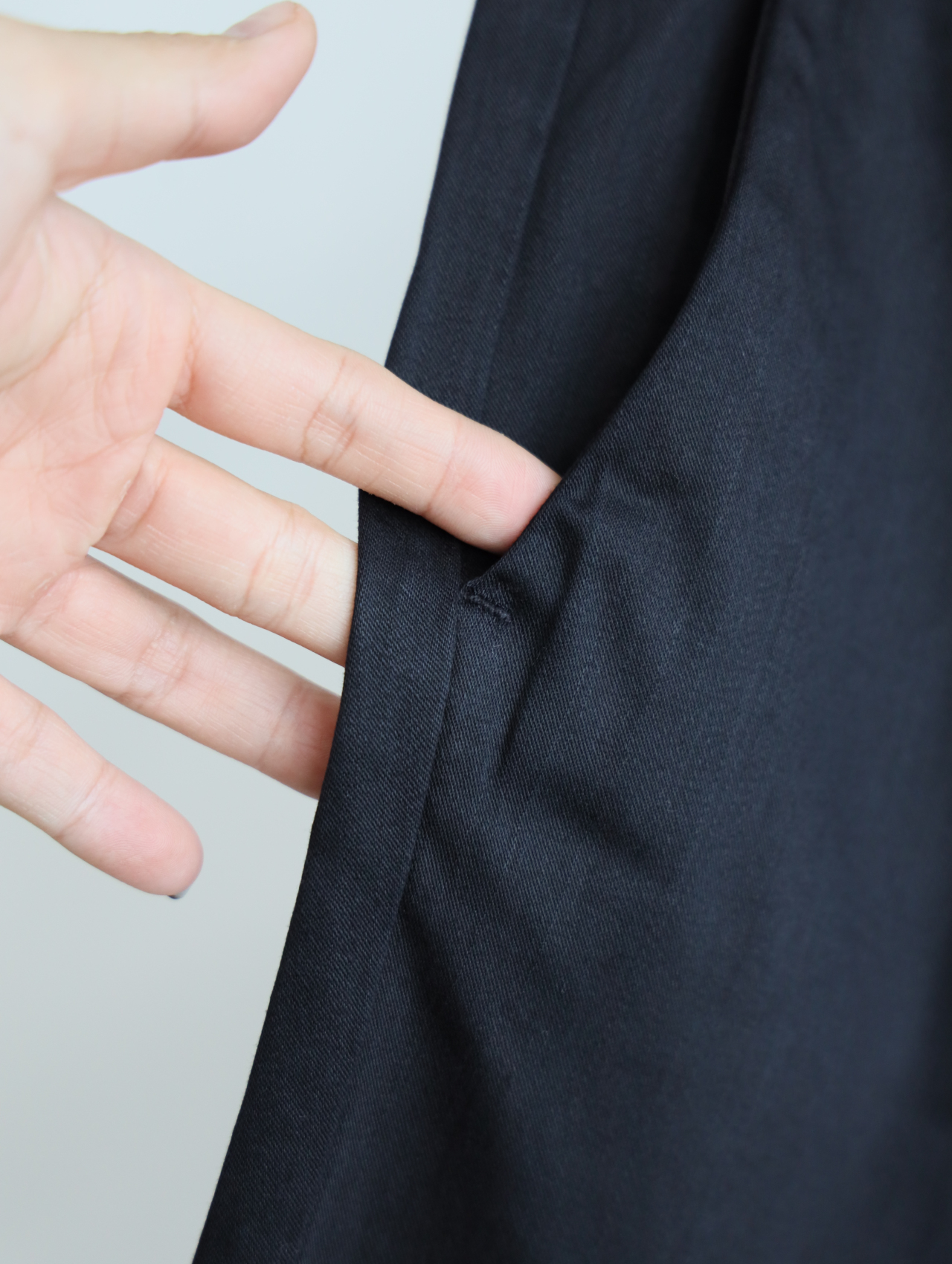 正面2个经典休闲裤插袋 背面2个内挖的包边口袋