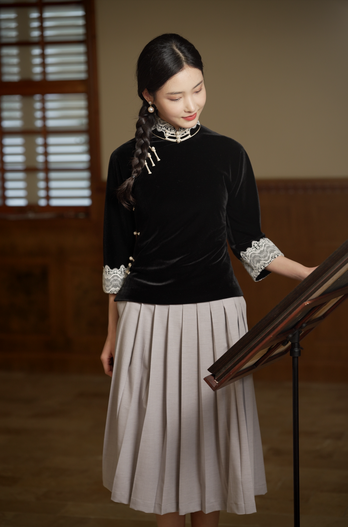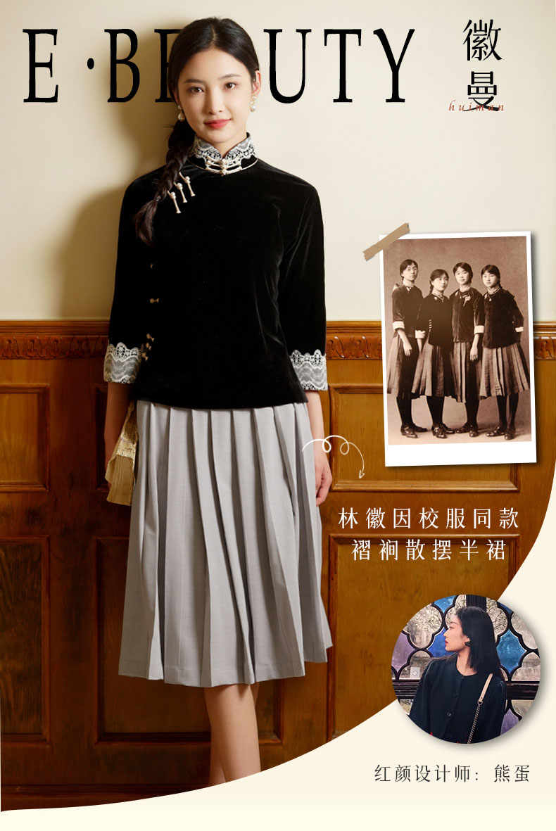 ☘️西式的百褶裙和中式的上衣搭配,中西合璧,反映着女性觉醒的风潮,大方秀气。