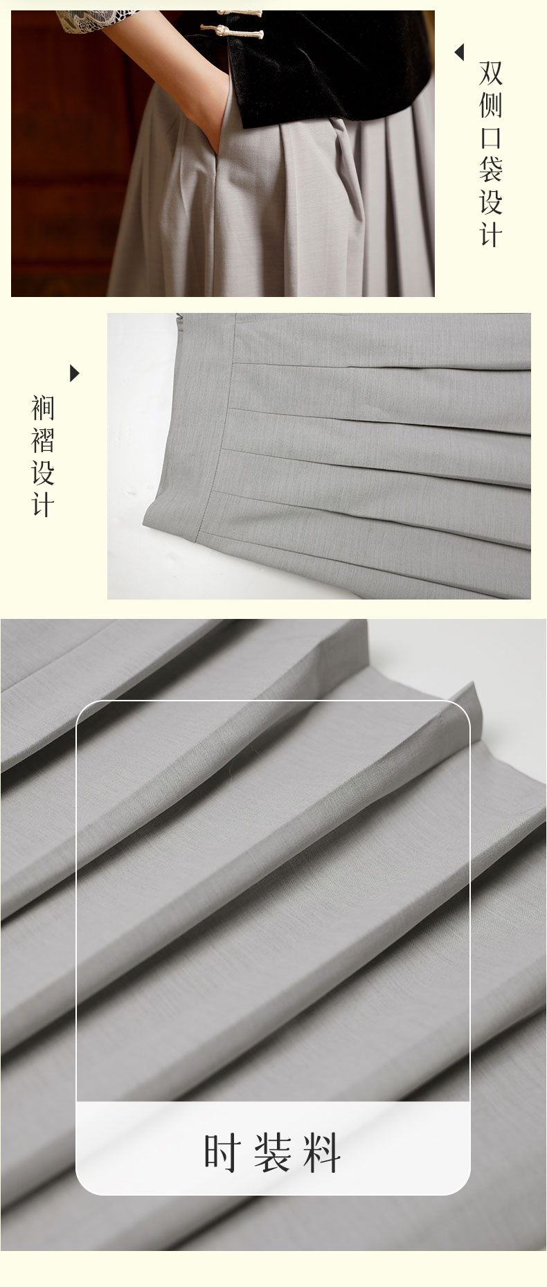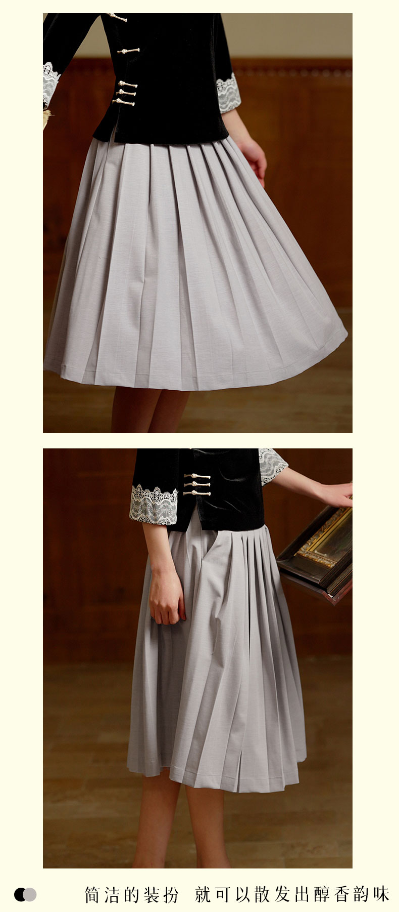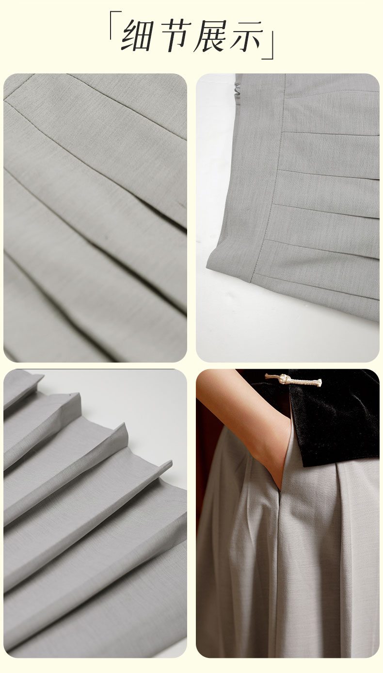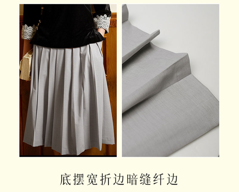 下裙看似简单,但是用料和小细节的设计也绝不含糊.远看颜色与上衣要协调,不深不浅.深一点显沉闷,浅一点又出挑....近看要精致,不薄不厚!~精致,而且也是百搭的.