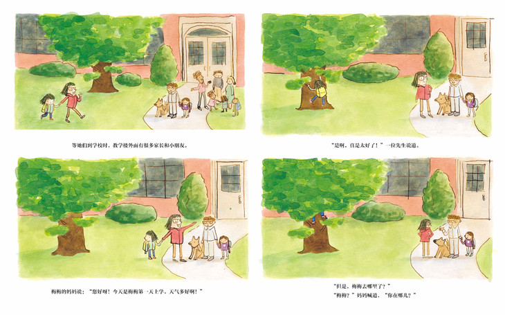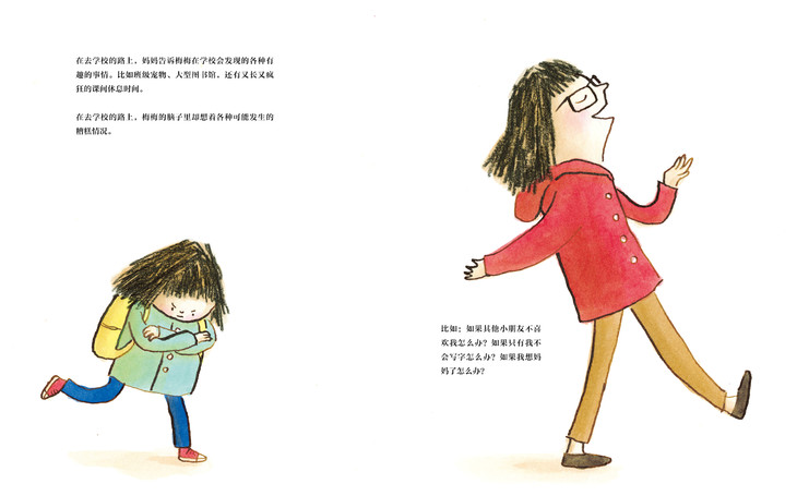 今天是梅梅第一天去学校,但是梅梅却不愿去上学。学校是可怕的!她害怕如果其他小朋友不喜欢她怎么办?如果她是唯一一个不会写字的人怎么办?又如果她想妈妈了怎么办?