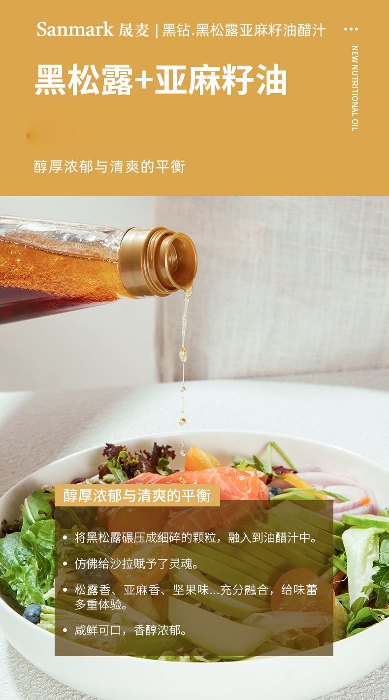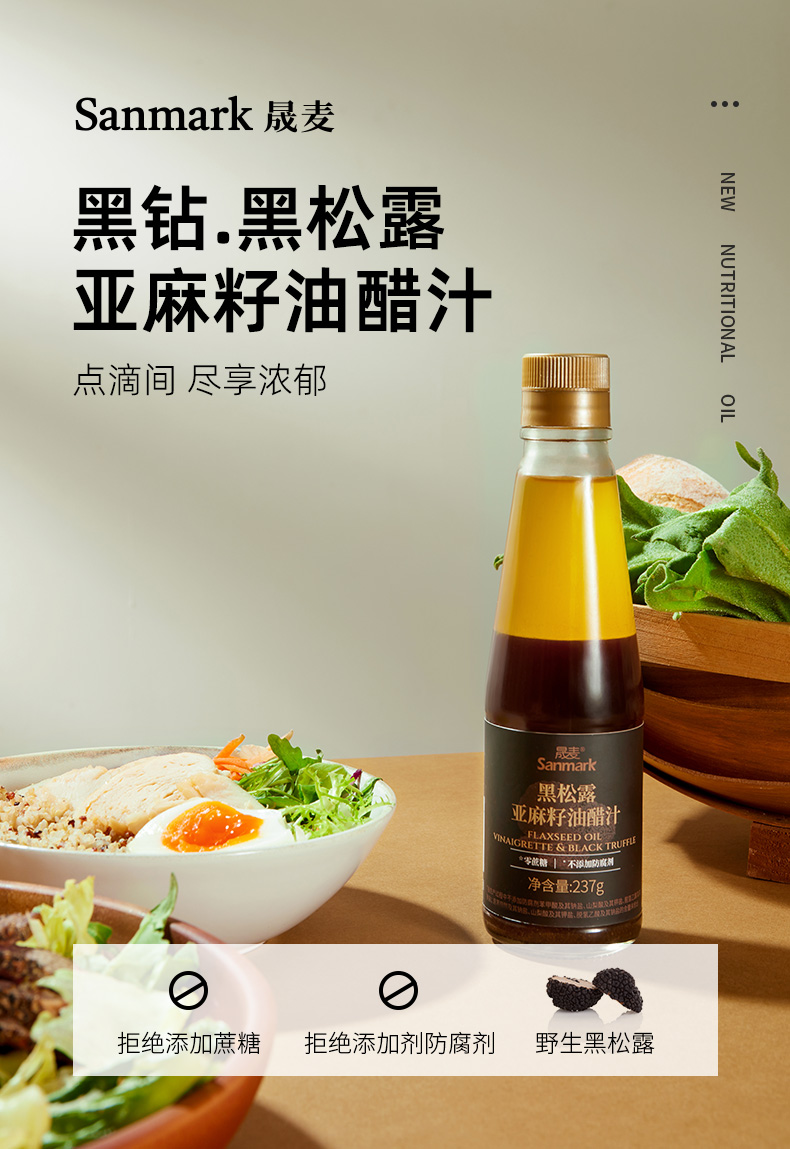 【好吃的】晟麦sanmark 黑松露亚麻籽油醋汁 237g/瓶 沙拉汁 调味料汁 醇厚浓郁