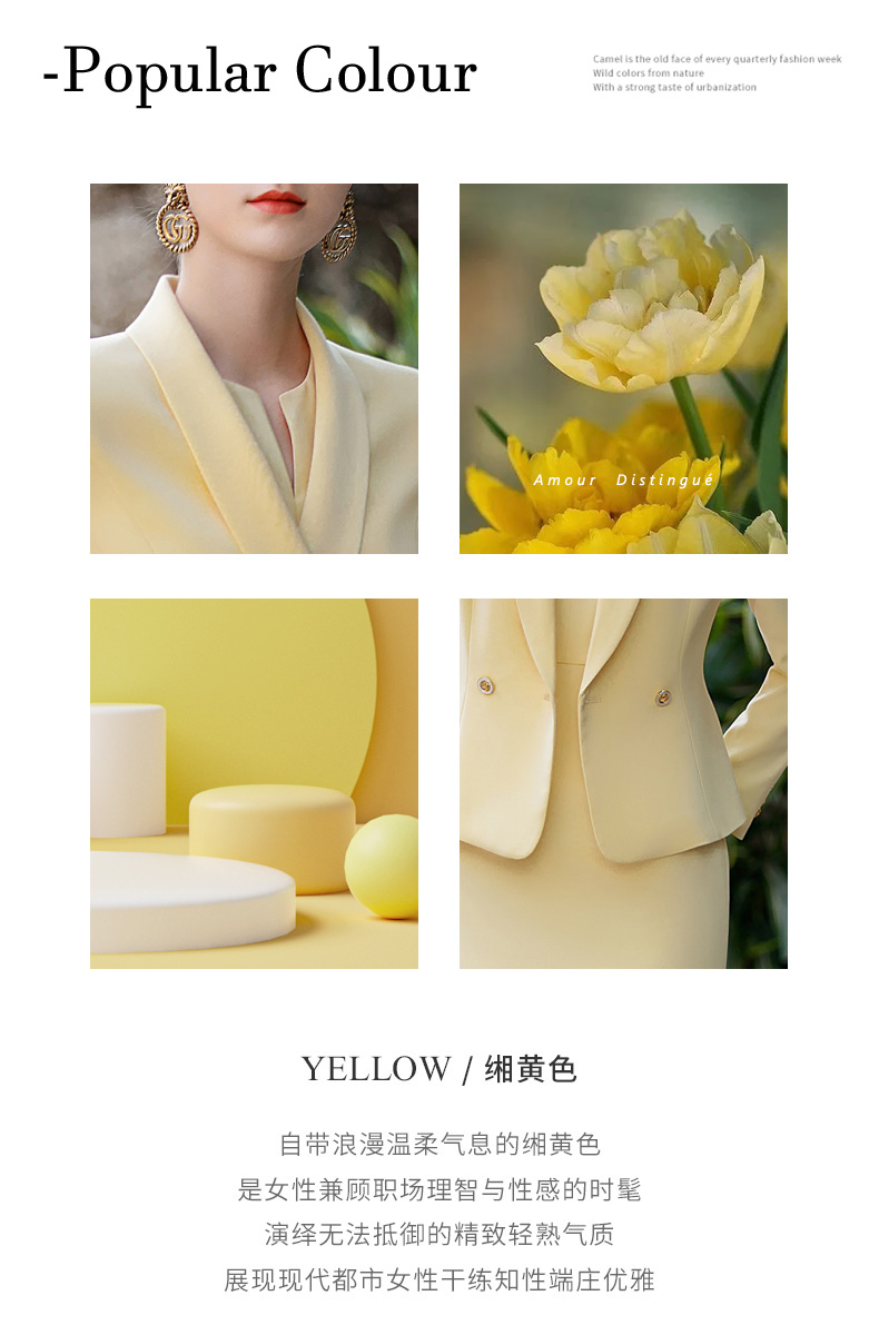 AD黄色通勤外套连衣裙两件套春装女2023新款套装时尚主持人正装