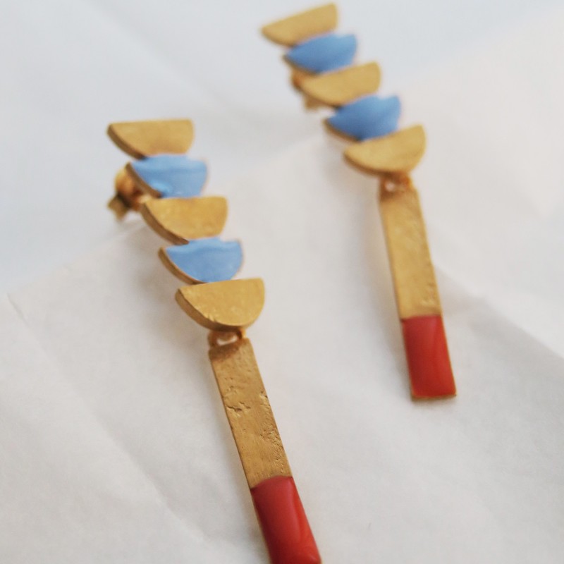 订购6周到|Joidart-SOMNI-几何拼接 蓝红撞色 珐琅 长吊坠 耳环[西班牙设计师]