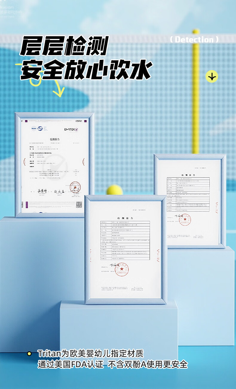 喝水的东西一定要是安全材质第一位,施密特直饮杯采用母婴级进口Tritan材质。