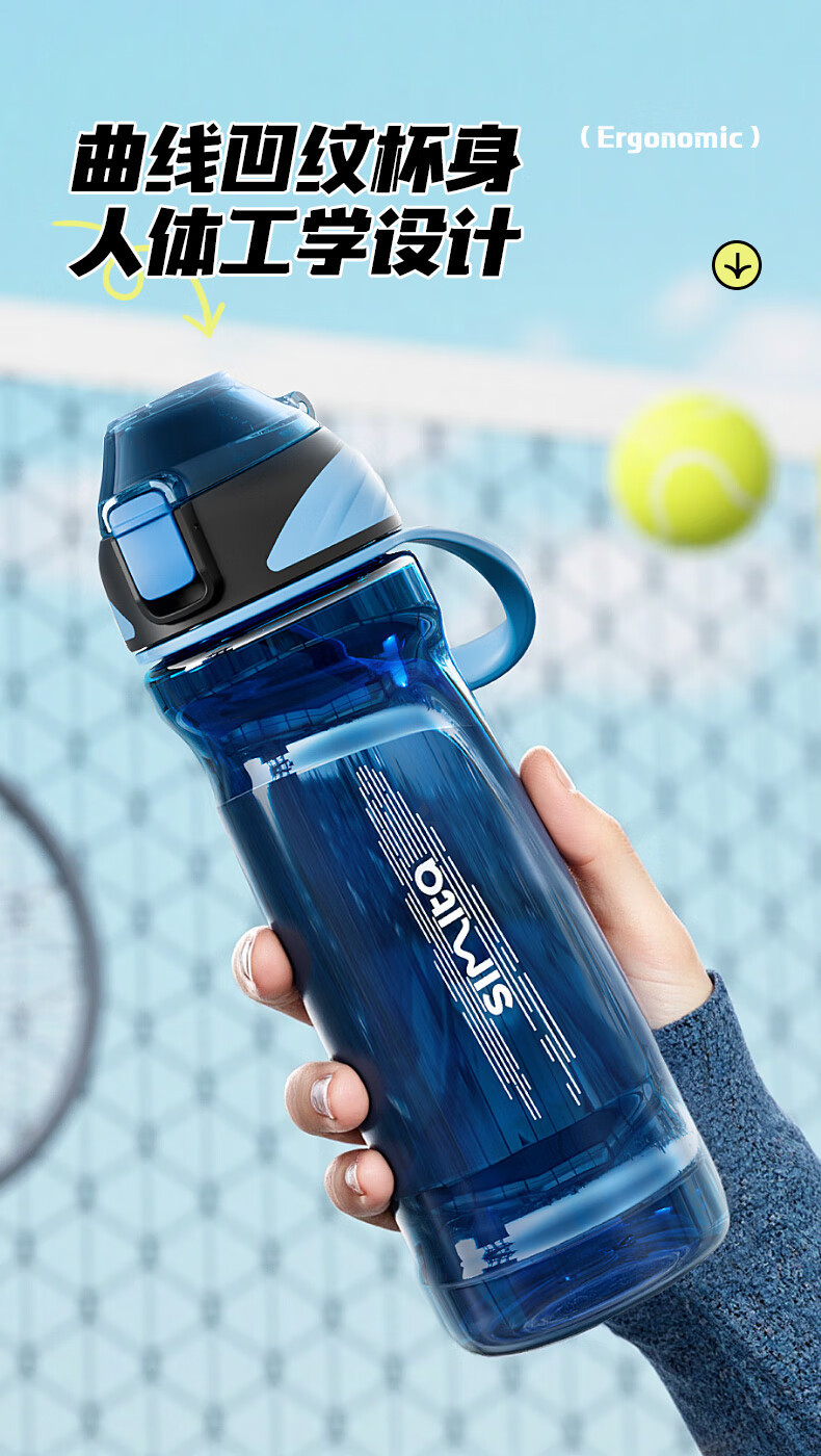 曲线凹纹杯身,符合人体工学设计,贴合手掌拿取姿势,拿取更容易,出汗也不易打滑。