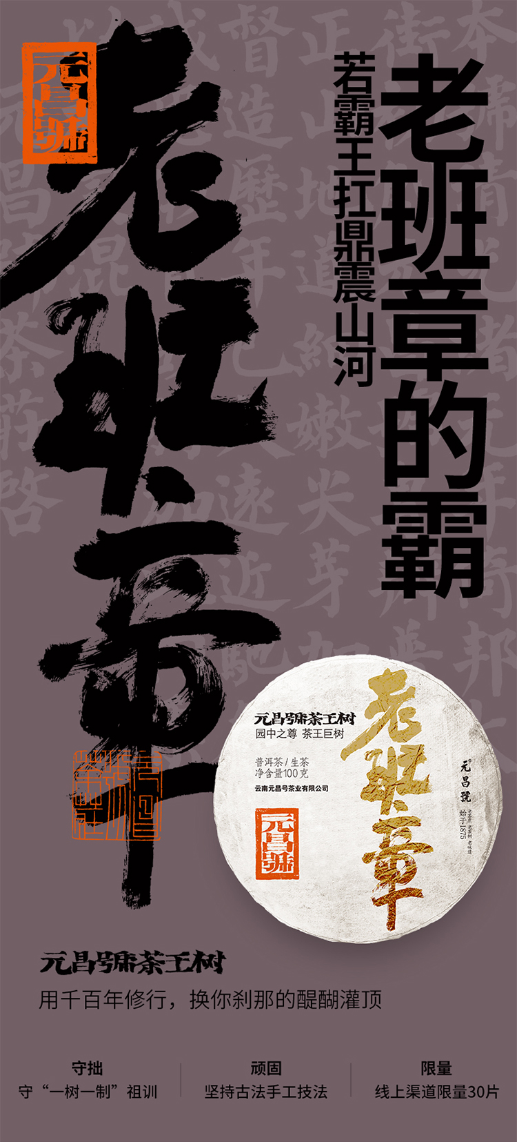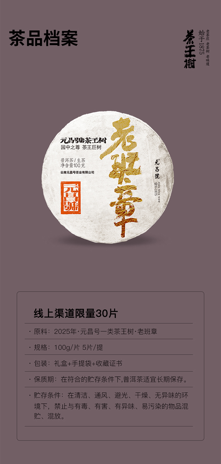 【茶王树系列】元昌号2025年老班章一类茶王树100克生饼