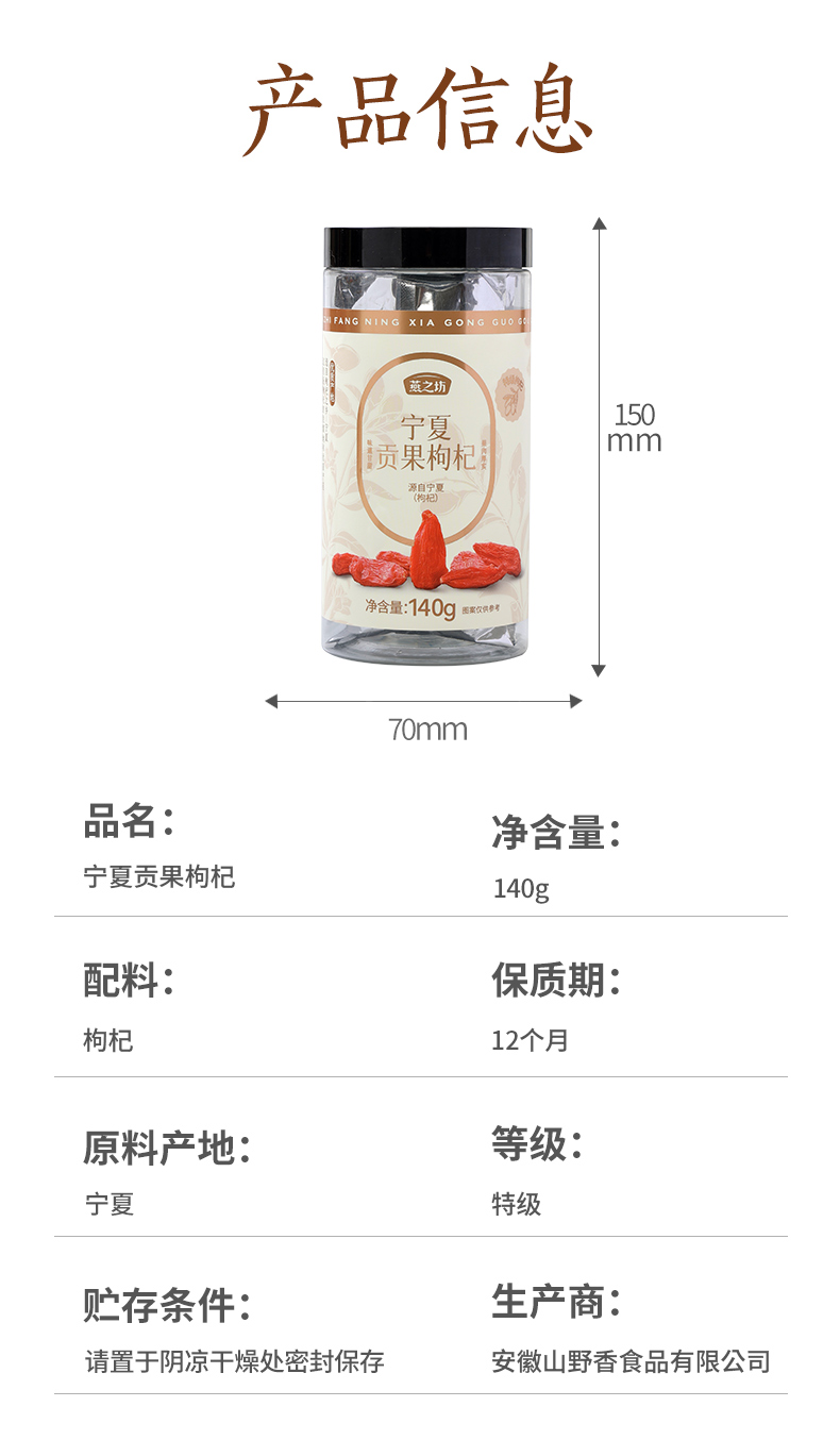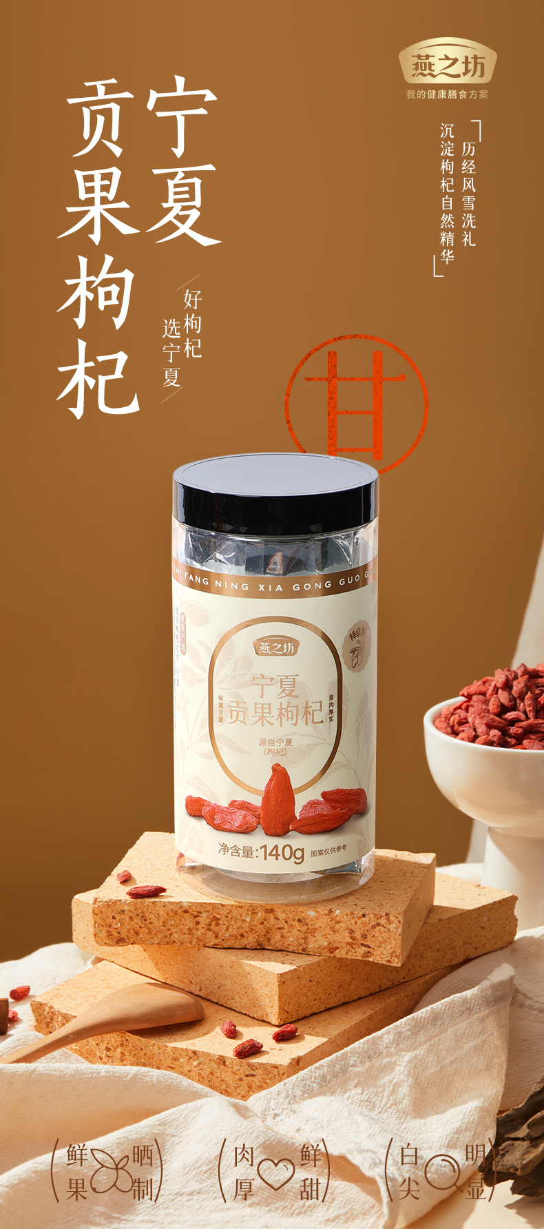 宁夏·特级枸杞 罐装【燕之坊】宁夏贡果枸杞140g 宁夏中宁原产枸杞 泡茶煲汤即食 瓶装密封佳