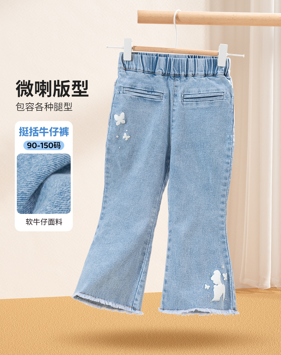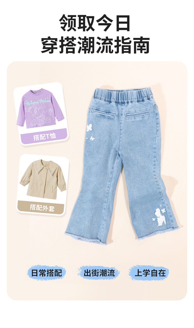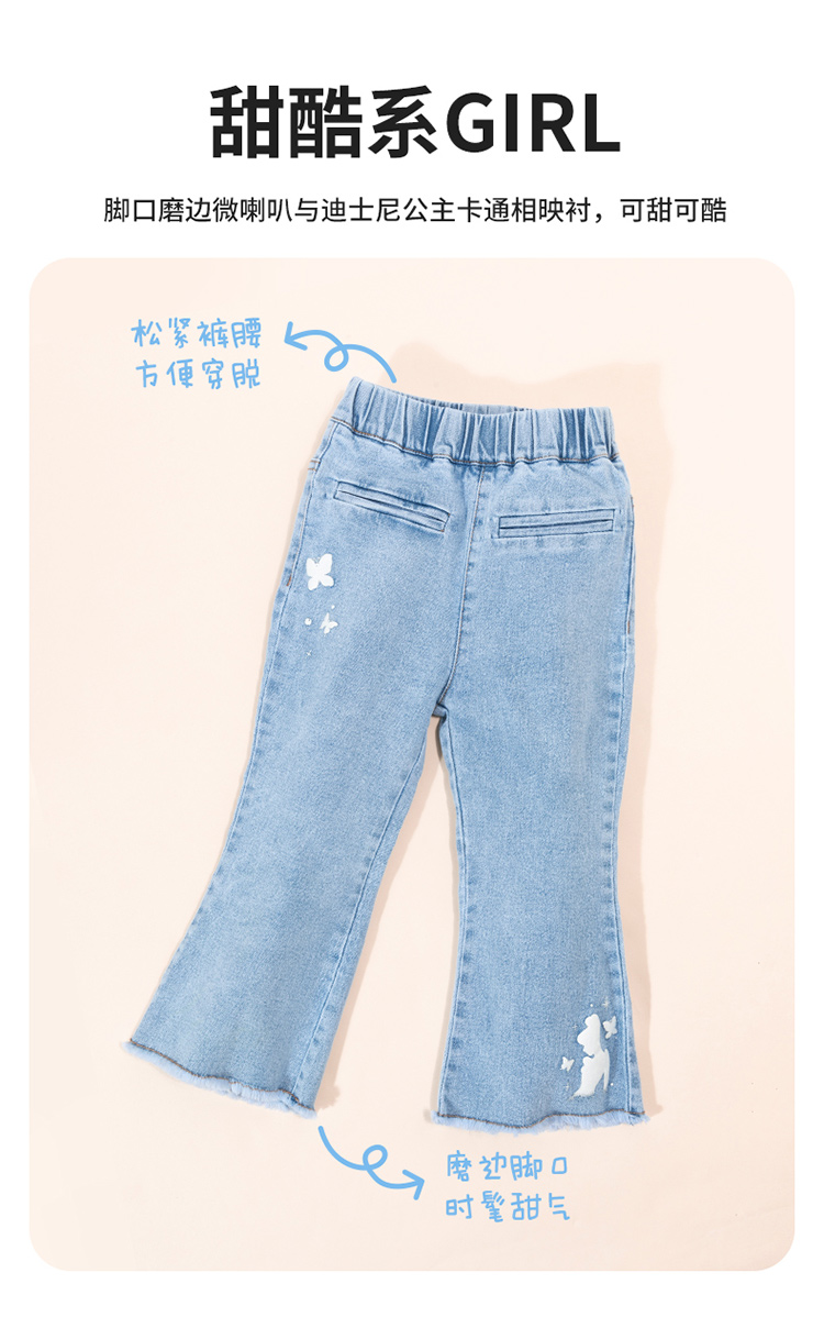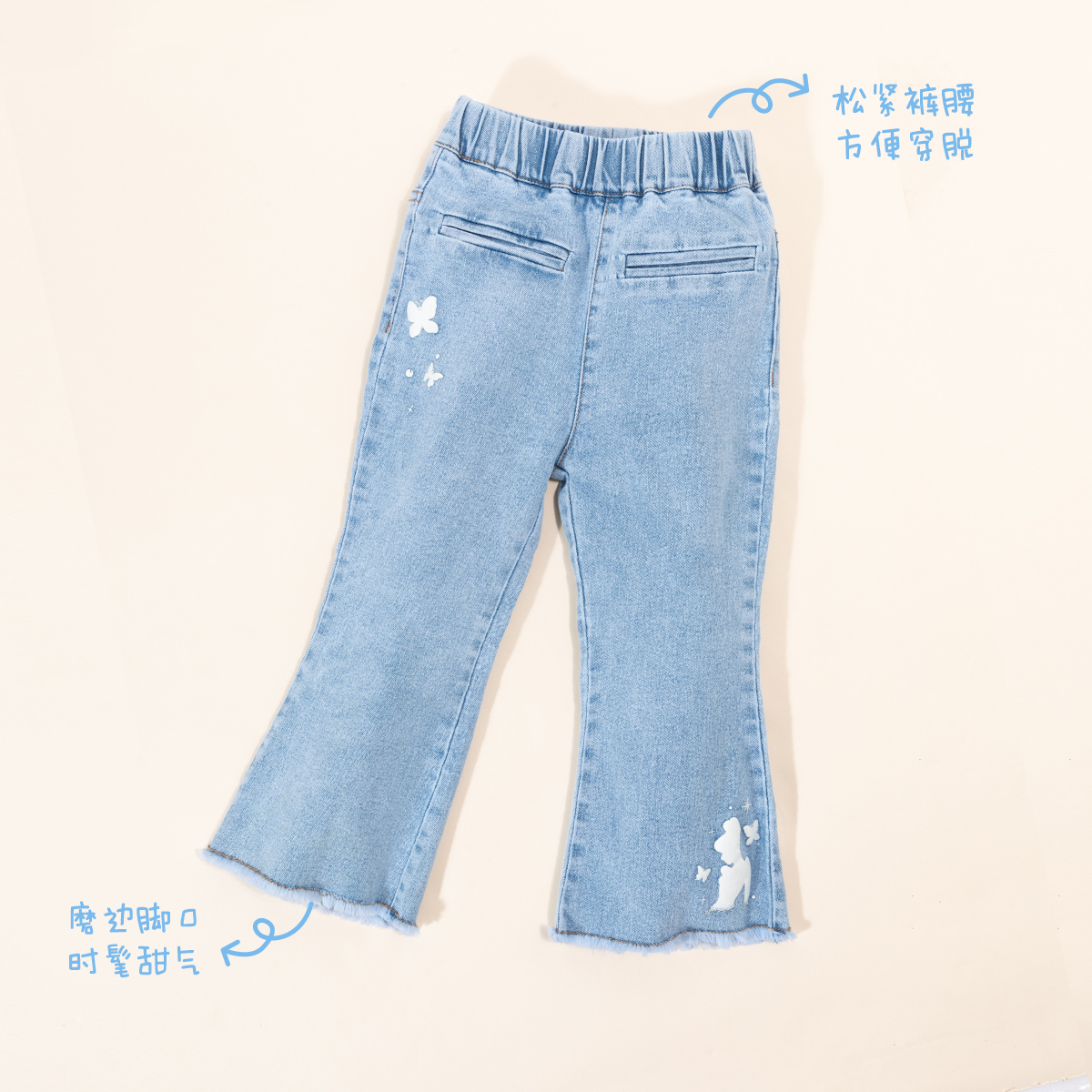 迪士尼【微阔喇叭裤】24春秋款女童时尚牛仔长裤中大童百搭喇叭裤长裤 子ZD3DK012