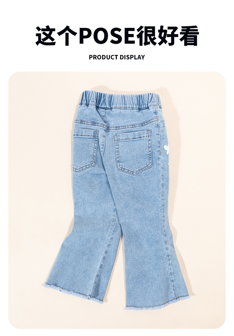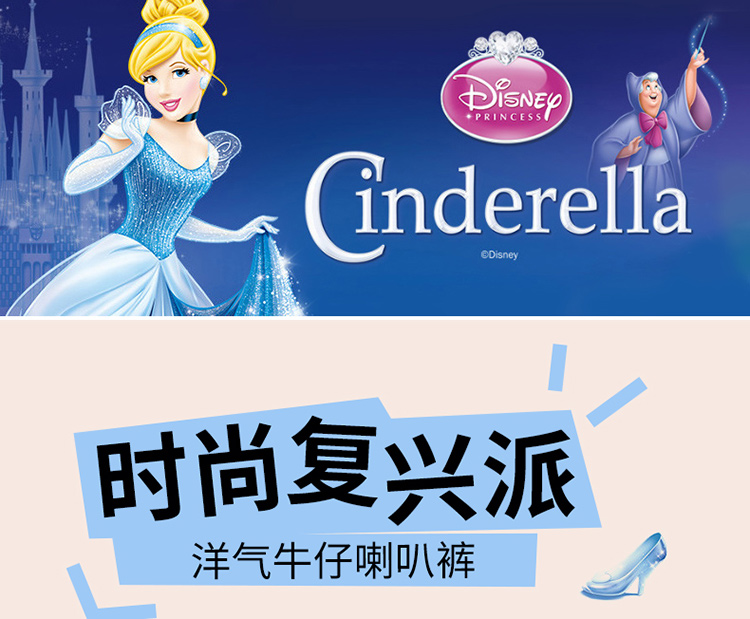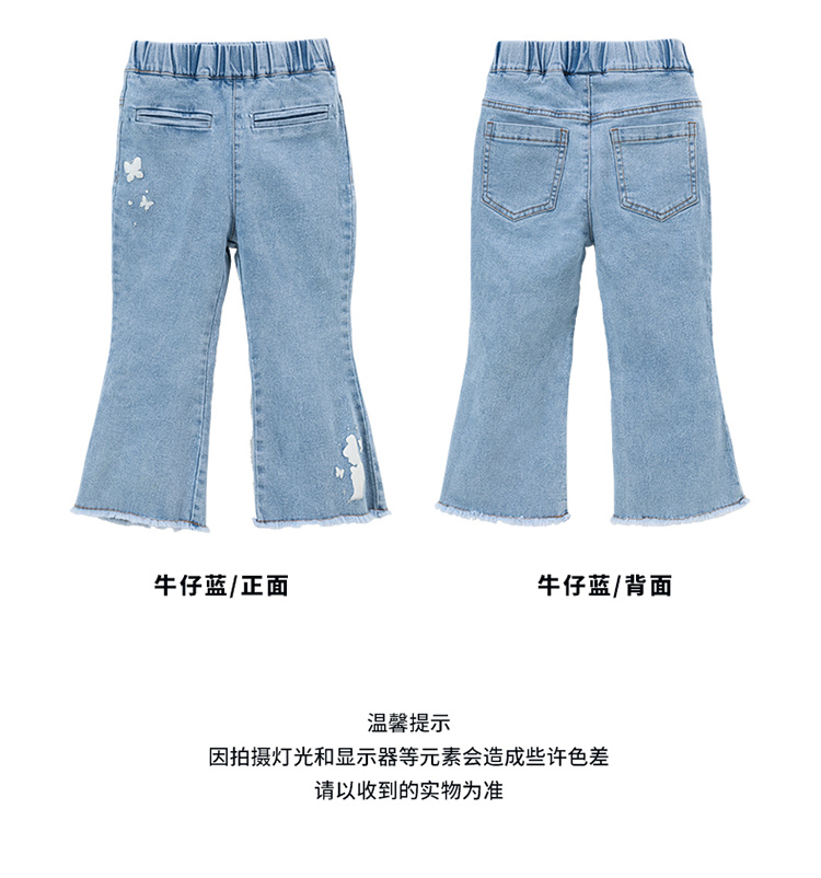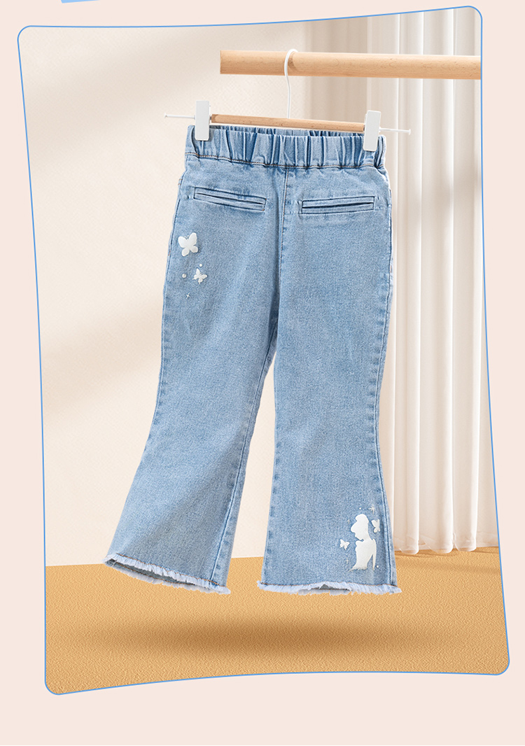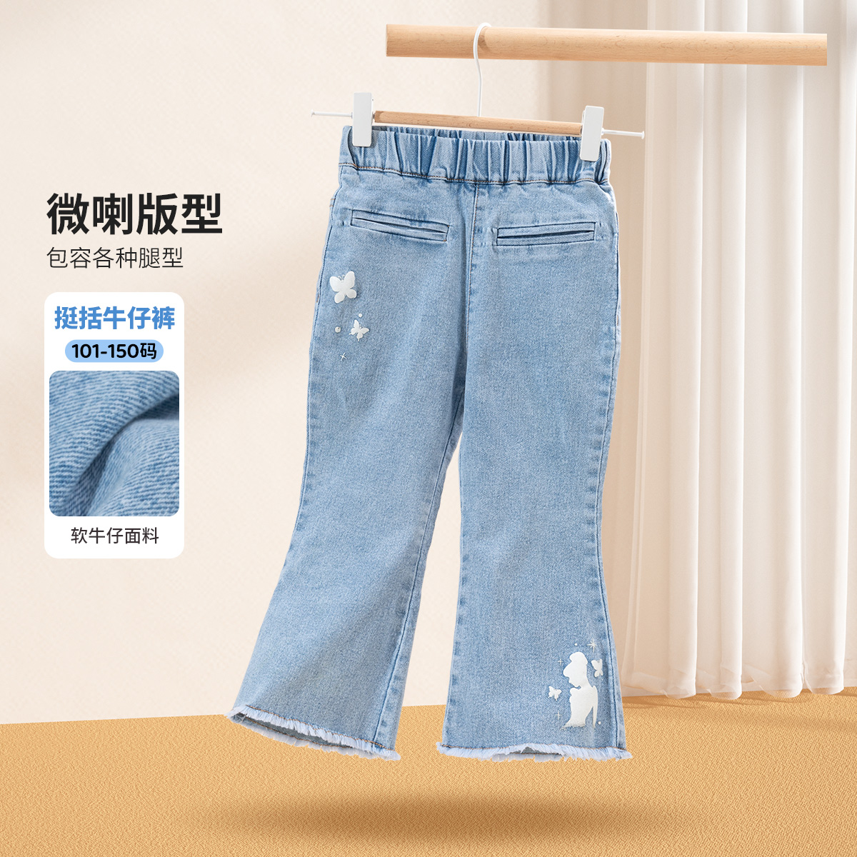 迪士尼【微阔喇叭裤】24春秋款女童时尚牛仔长裤中大童百搭喇叭裤长裤 子ZD3DK012