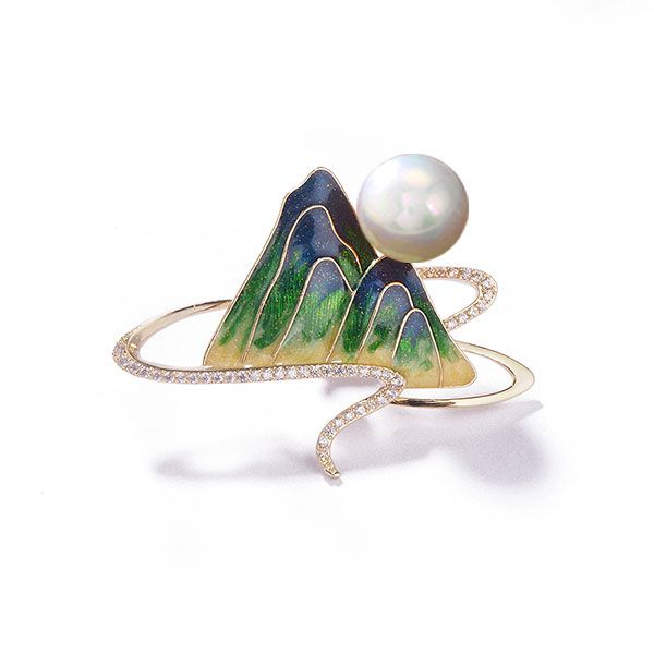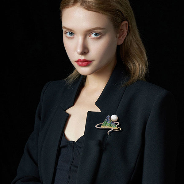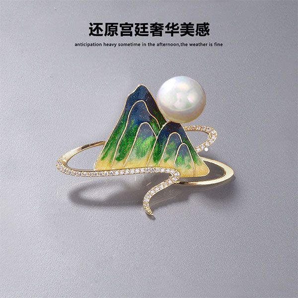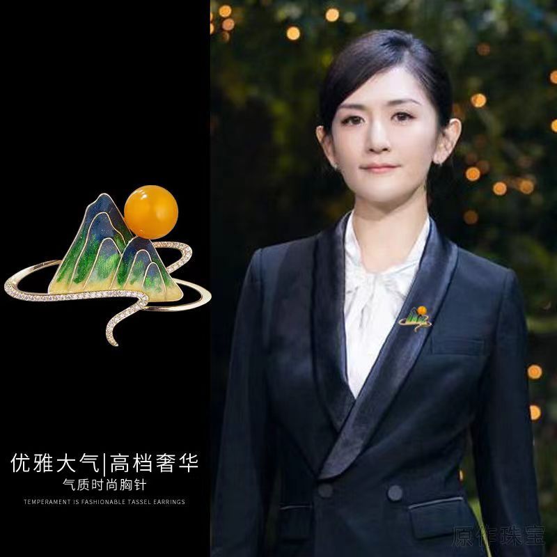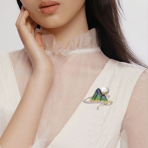 东方只此青绿珐琅千里江山图胸针女夏季气质高端配饰别针固定衣服