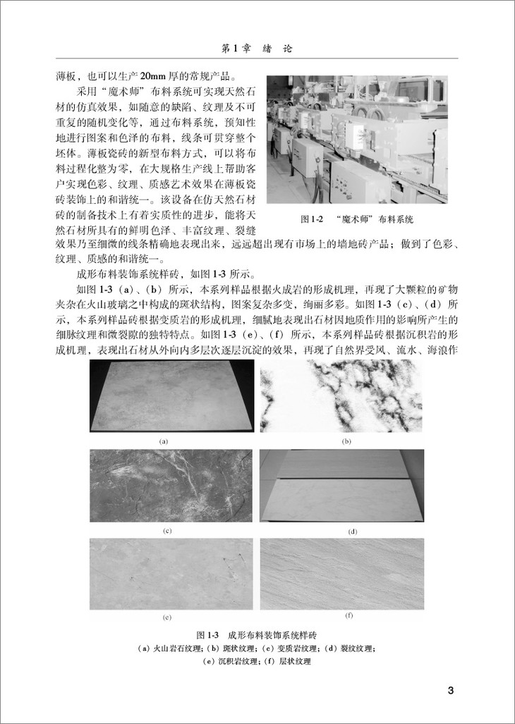 全书共计15章,下面为本书内容的概要。本书跟随时代的发展,以目前中国市场上存在的瓷砖种类为基础,概述了陶瓷墙地砖生产工艺的各个环节。从微观和宏观两个层面,对陶瓷材料以及墙地砖的力学特性进行了深入的研究。随着瓷砖规格的发展,瓷砖设备加工瓷砖表面的轨迹开始逐步多样化,本书对近两年来瓷砖加工行业存在的各种加工轨迹进行了数学建模,并以此为基础设计出瓷砖智能自适应模拟系统。