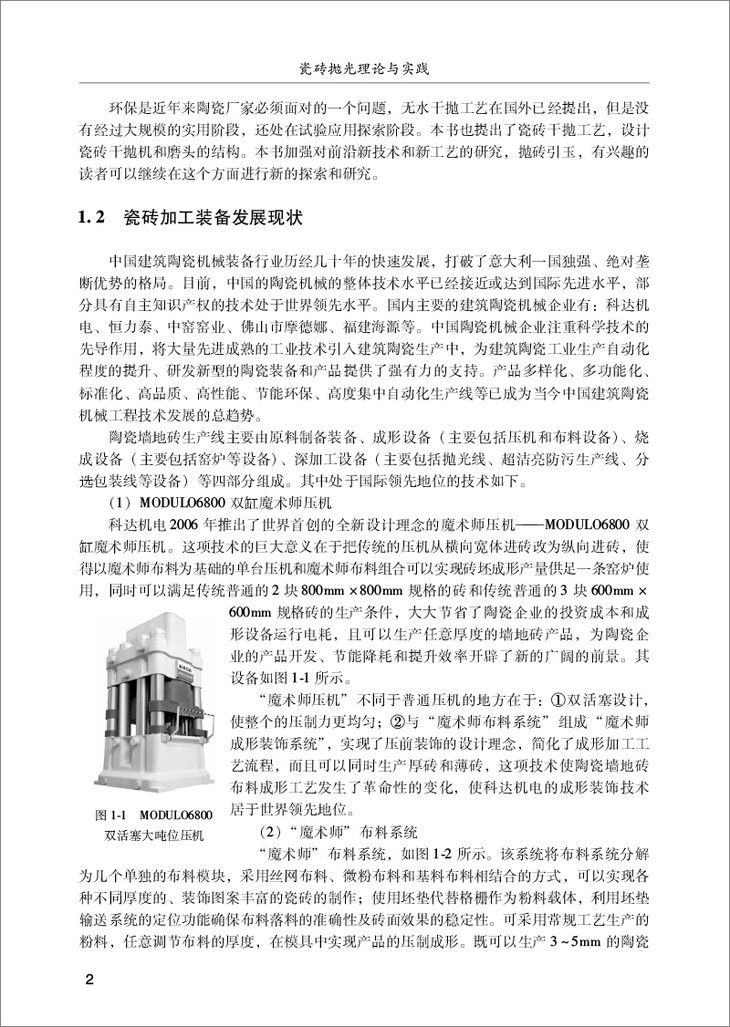 特别是近两年,中国瓷砖的规格逐步增大,瓷砖花样淘汰速度迅速,瓷砖的加工工艺也变革迅速,瓷砖加工的基础理论研究跟不上变革的速度。本书作者在瓷砖设备一线进行基础理论和技术创新研究,跟随瓷砖发展的步伐,积累了一些基础理论的研究,著作成书。