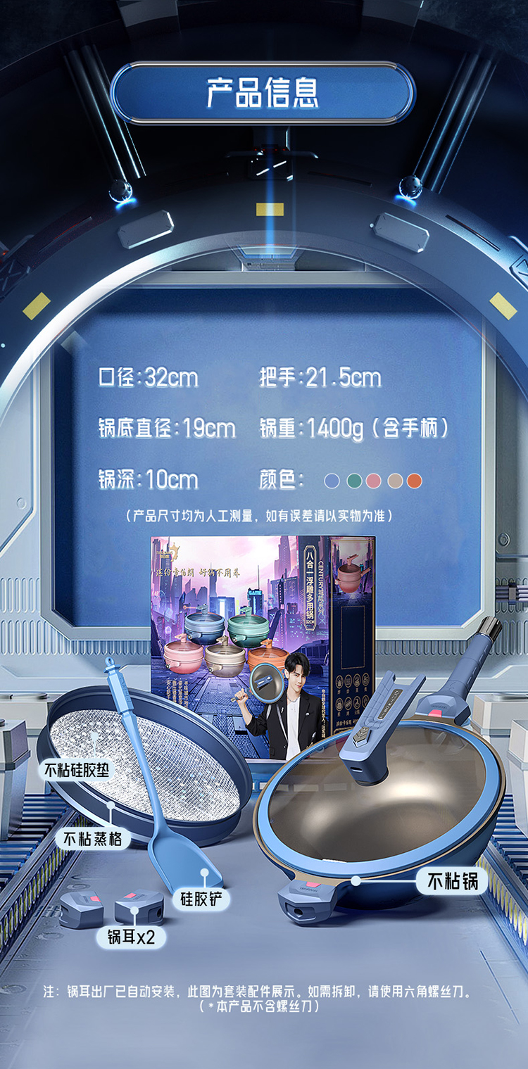 【拍1发8】2023年新品Century城际系列八合一浮雕多用锅,有颜好用 (赠品奶锅/煎锅颜色随机)