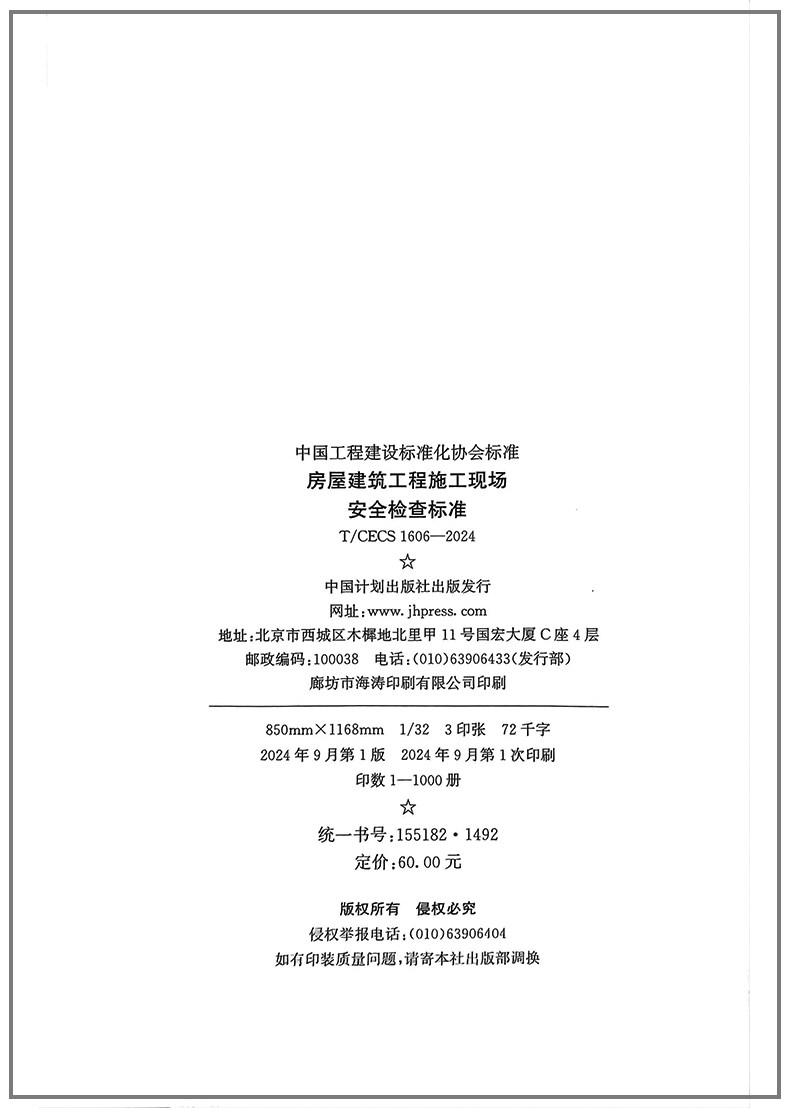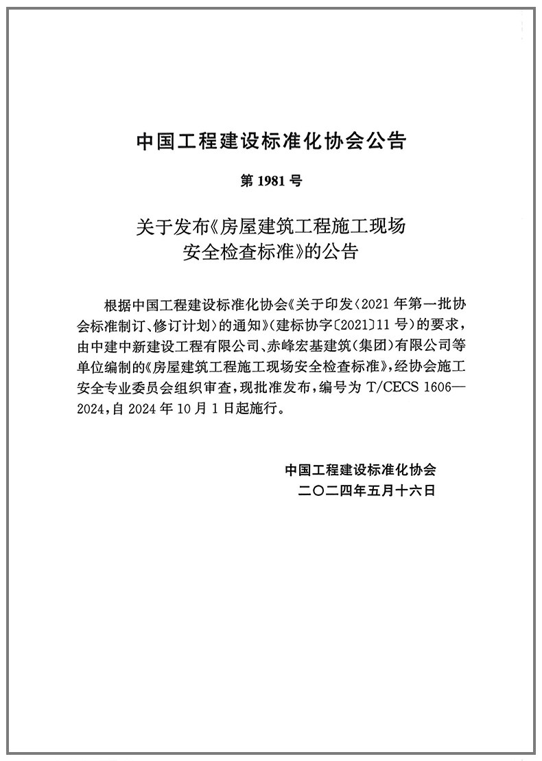 T/CECS1606-2024房屋建筑工程施工现场安全检查标准