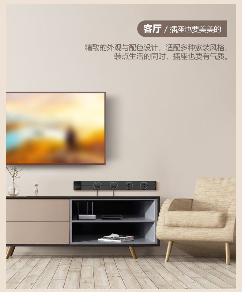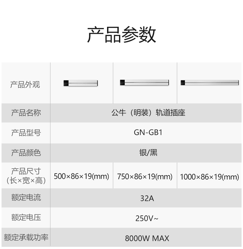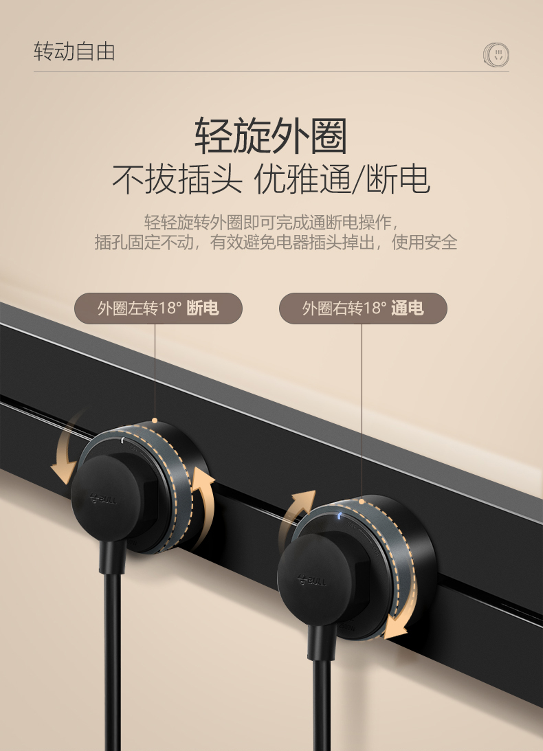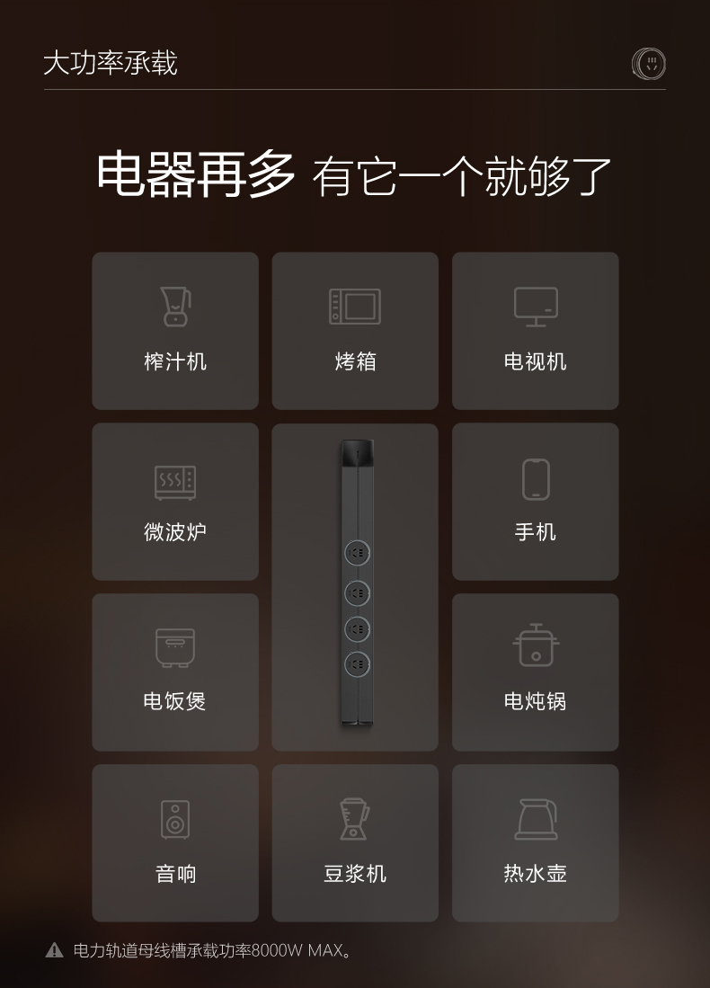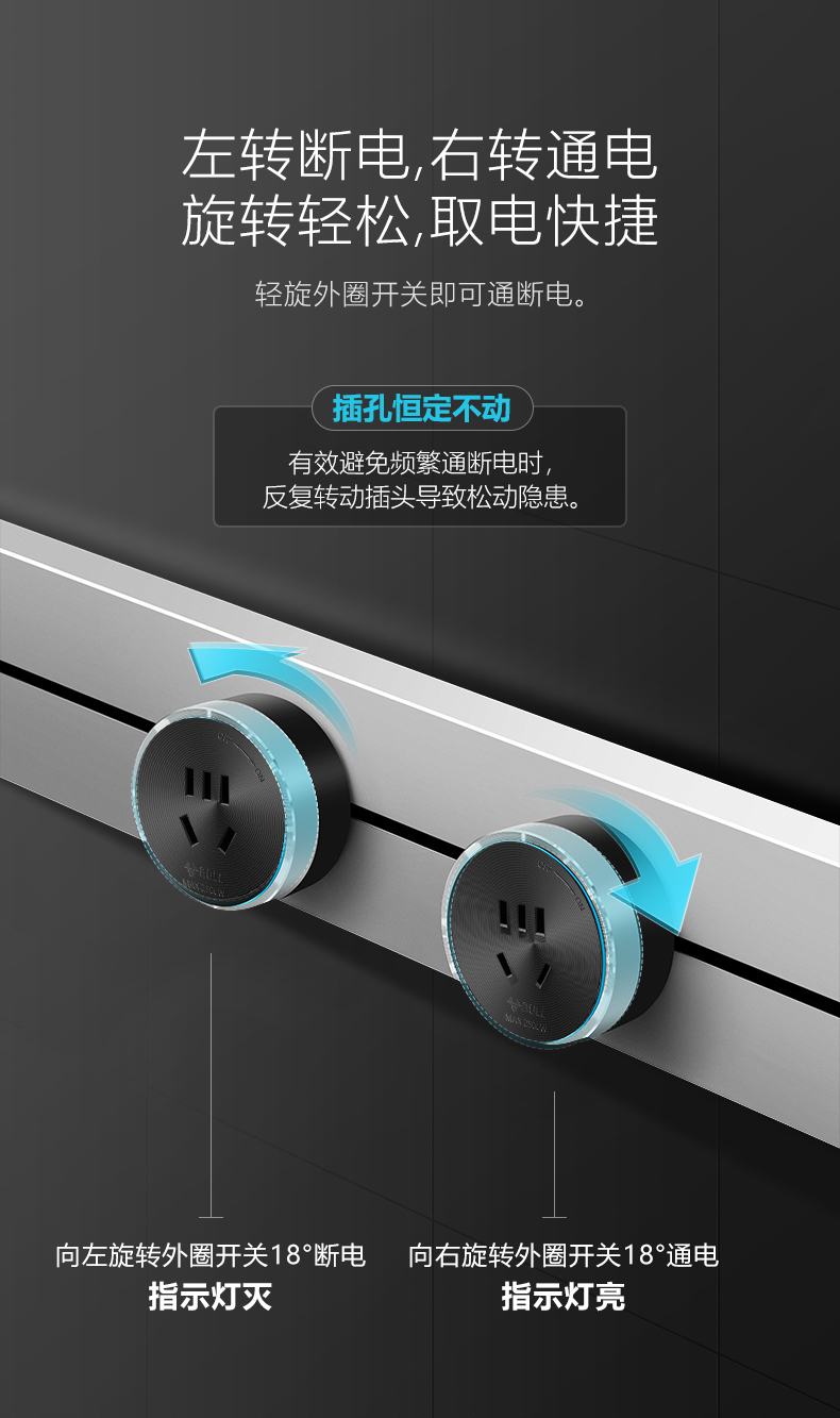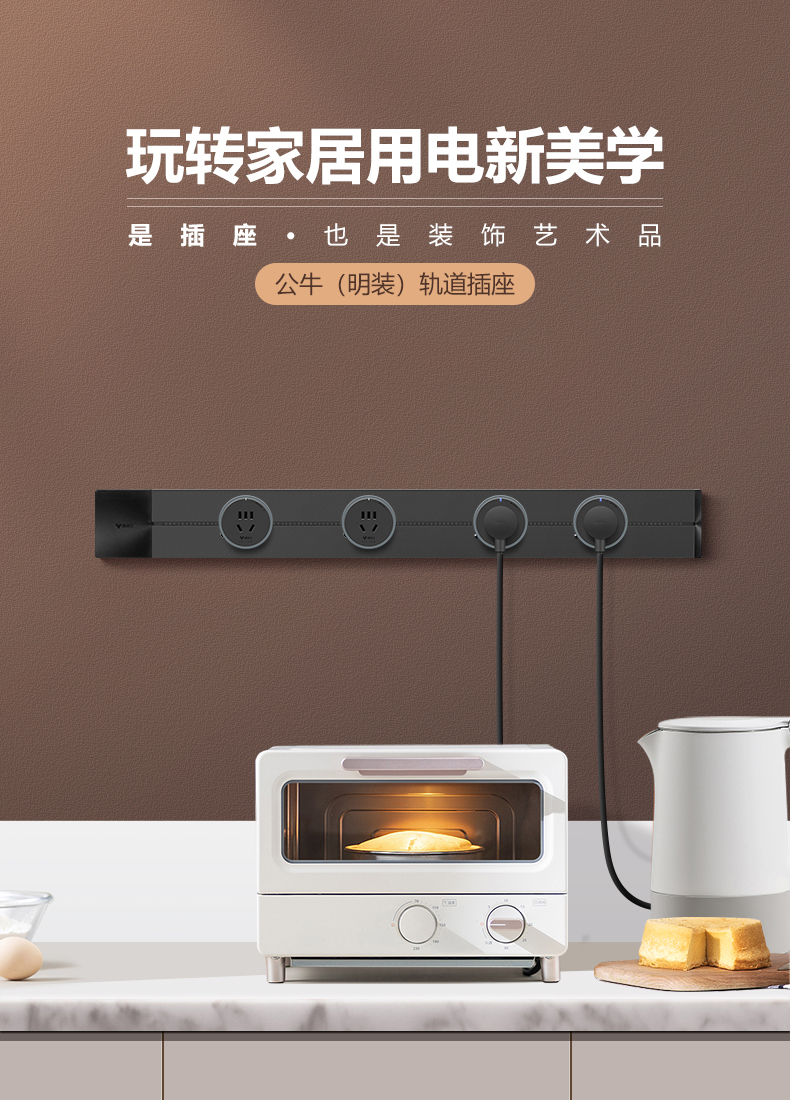 公牛 可移动电力轨道插座 厨房客厅卧室 无线不带线排插接线板 家用