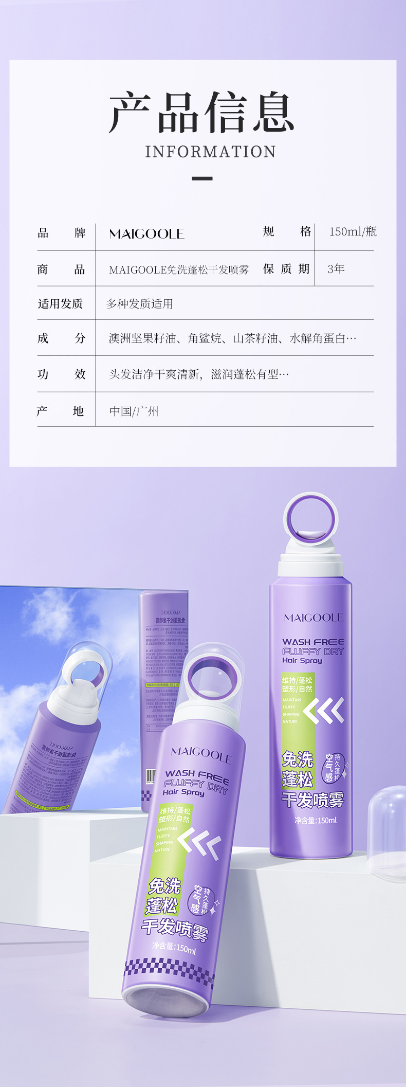 【一喷即蓬!轻松祛油】免洗蓬松干发喷雾油头救急高颅顶空气感刘海懒人常备器 商品图3