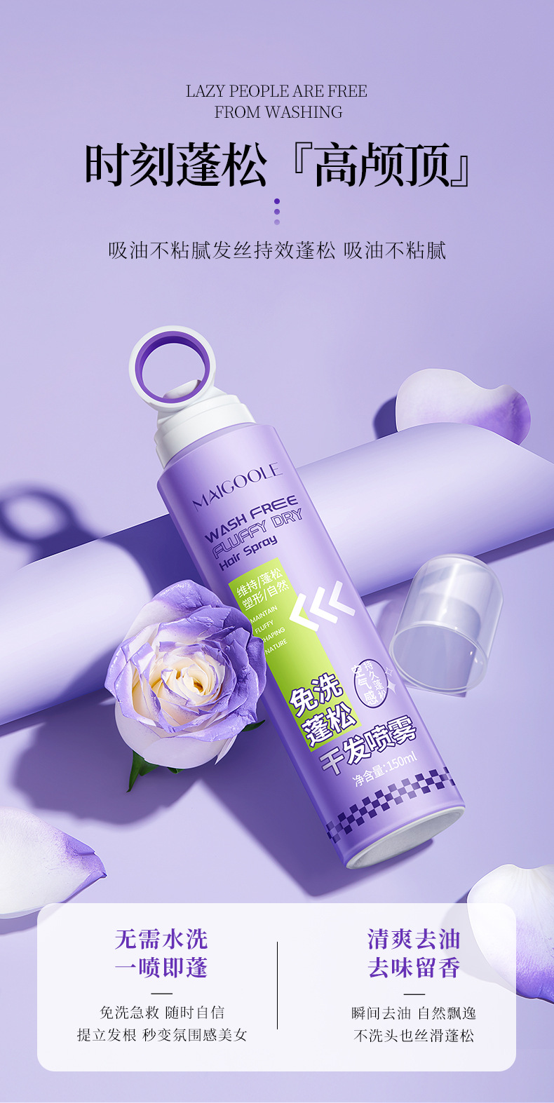 【一喷即蓬!轻松祛油】免洗蓬松干发喷雾油头救急高颅顶空气感刘海懒人常备器