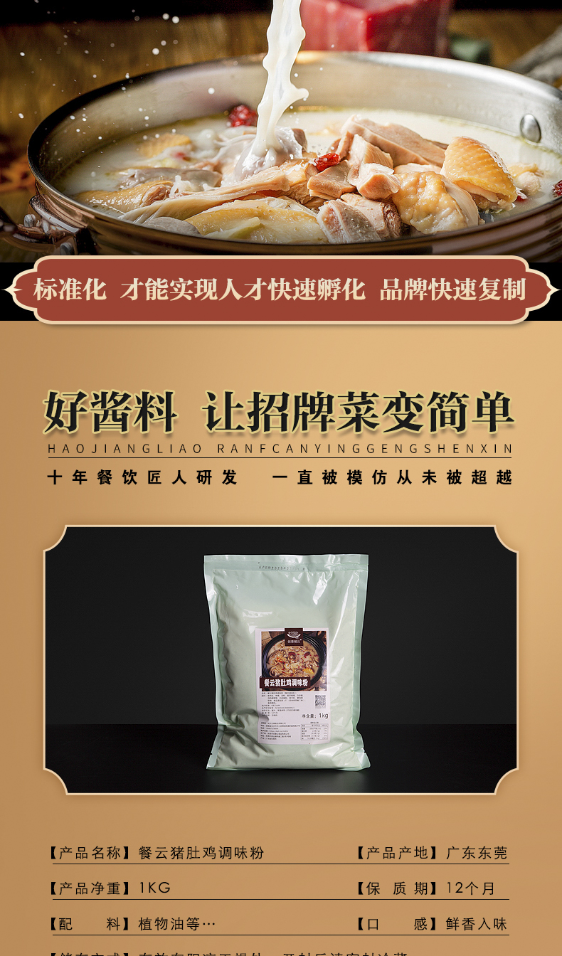 餐云猪肚鸡调味粉 各大连锁餐饮都在用的正宗猪肚鸡配方 一道菜撑起一家店 餐云酱料实现标准化操作(2斤装一包做23份)