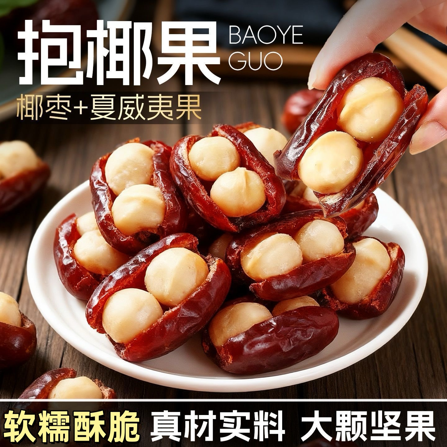 【双重营养❗️抱椰果椰枣+夏威夷果】软糯酥脆,真材实料,大颗坚果,老少皆宜!抱抱果抱抱果独立包装黑椰枣夏威夷夹心果仁坚果