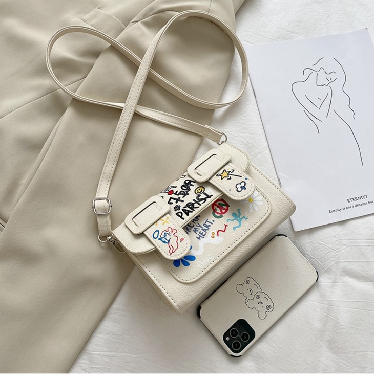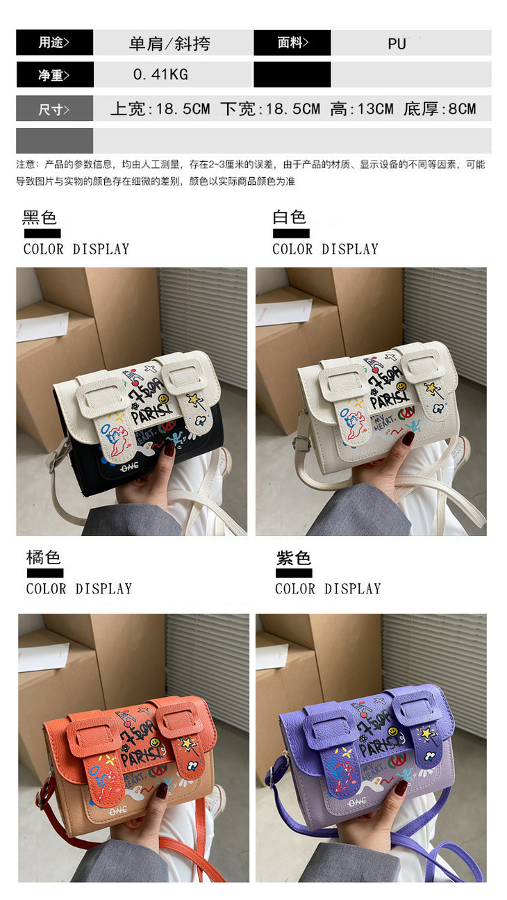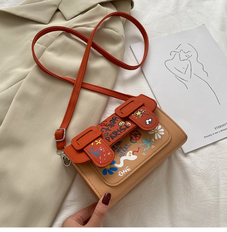 【服饰鞋包】小方包女夏季迷你撞色涂鸦邮差包网红百搭单肩斜挎剑桥包零钱包潮