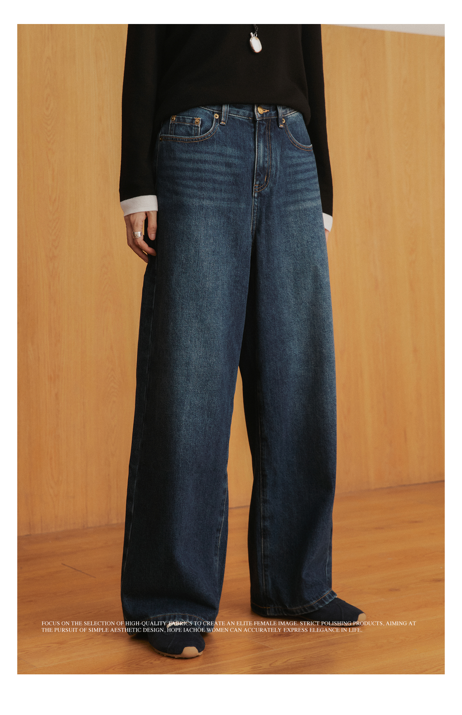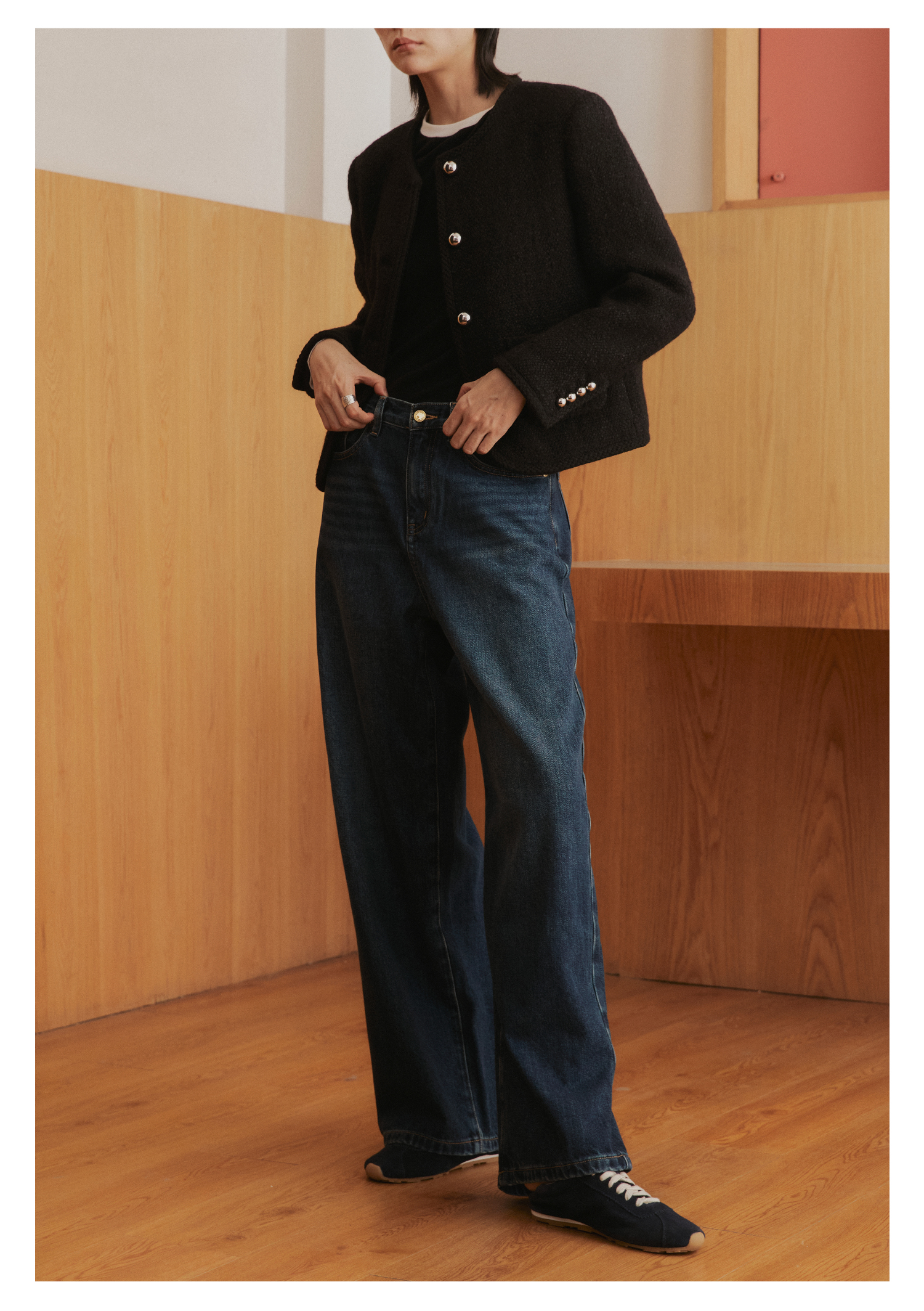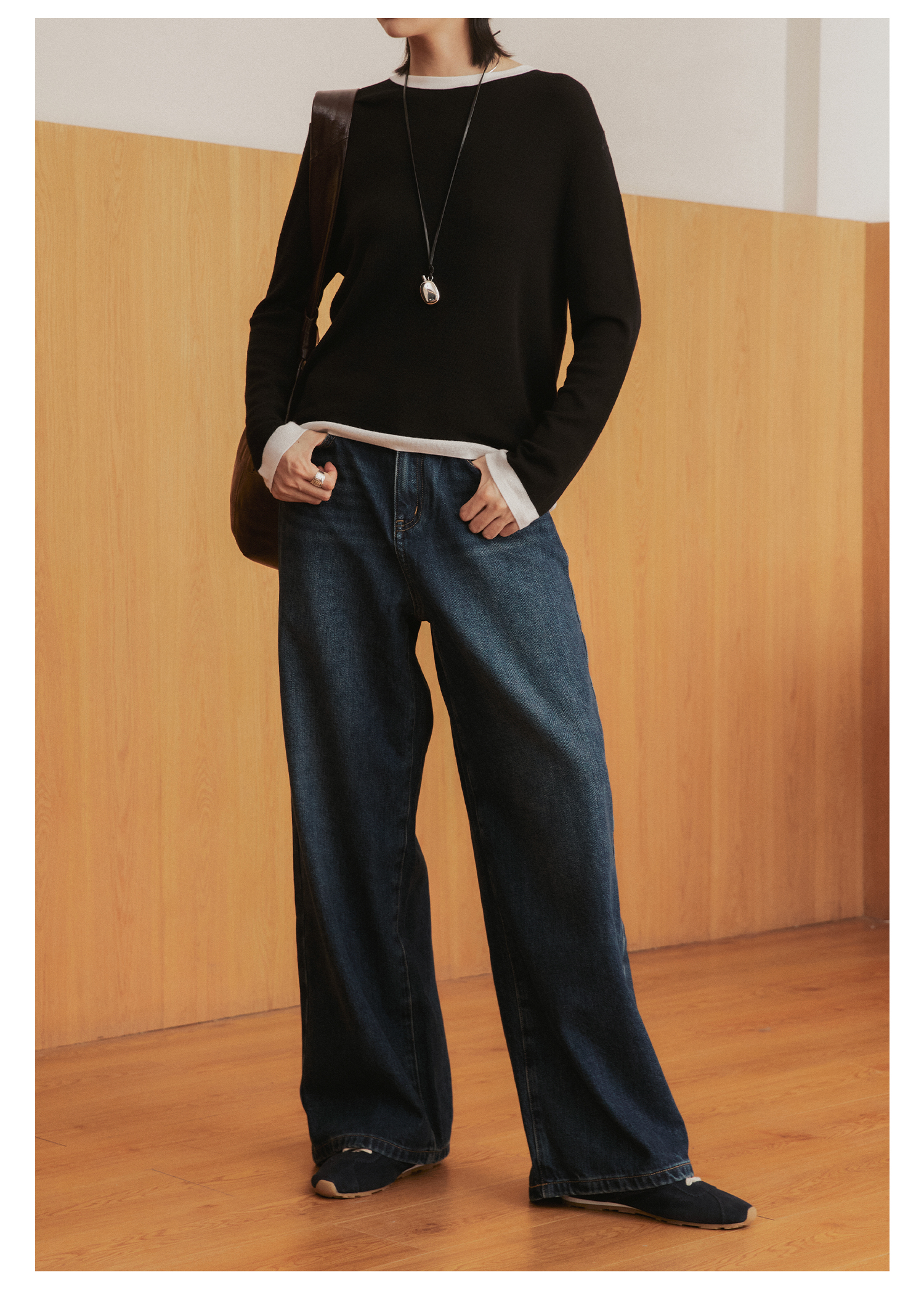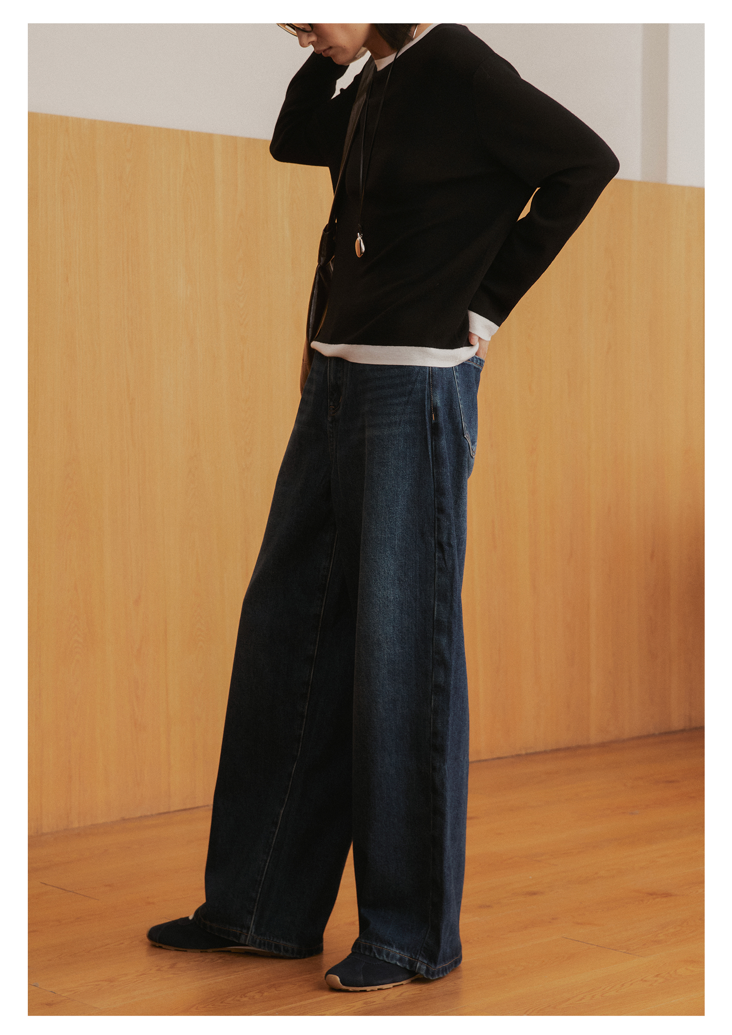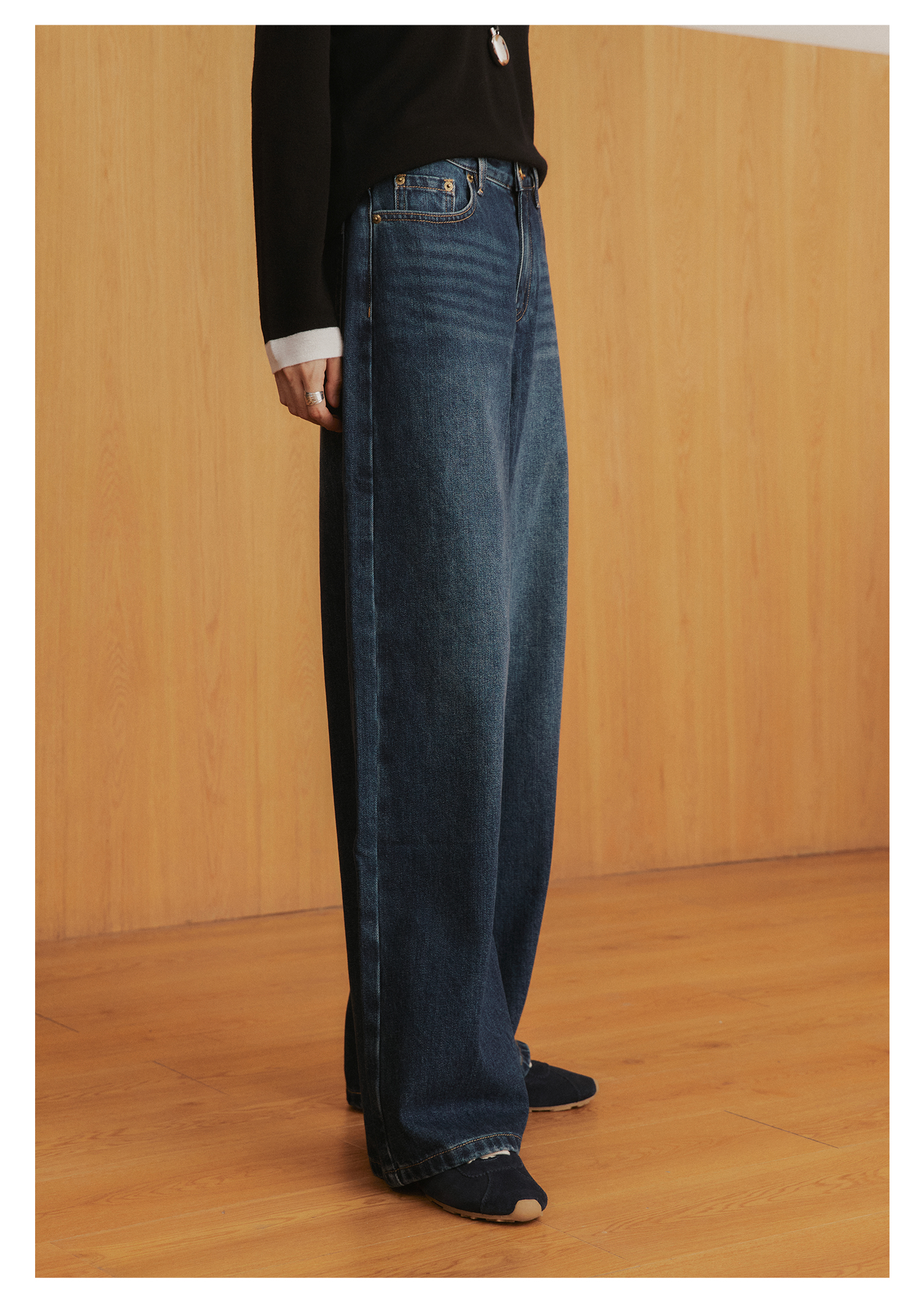 棉仓3561519005-挺括有型厚款磨毛牛仔裤 磨石水洗显瘦复古宽松阔腿牛仔裤