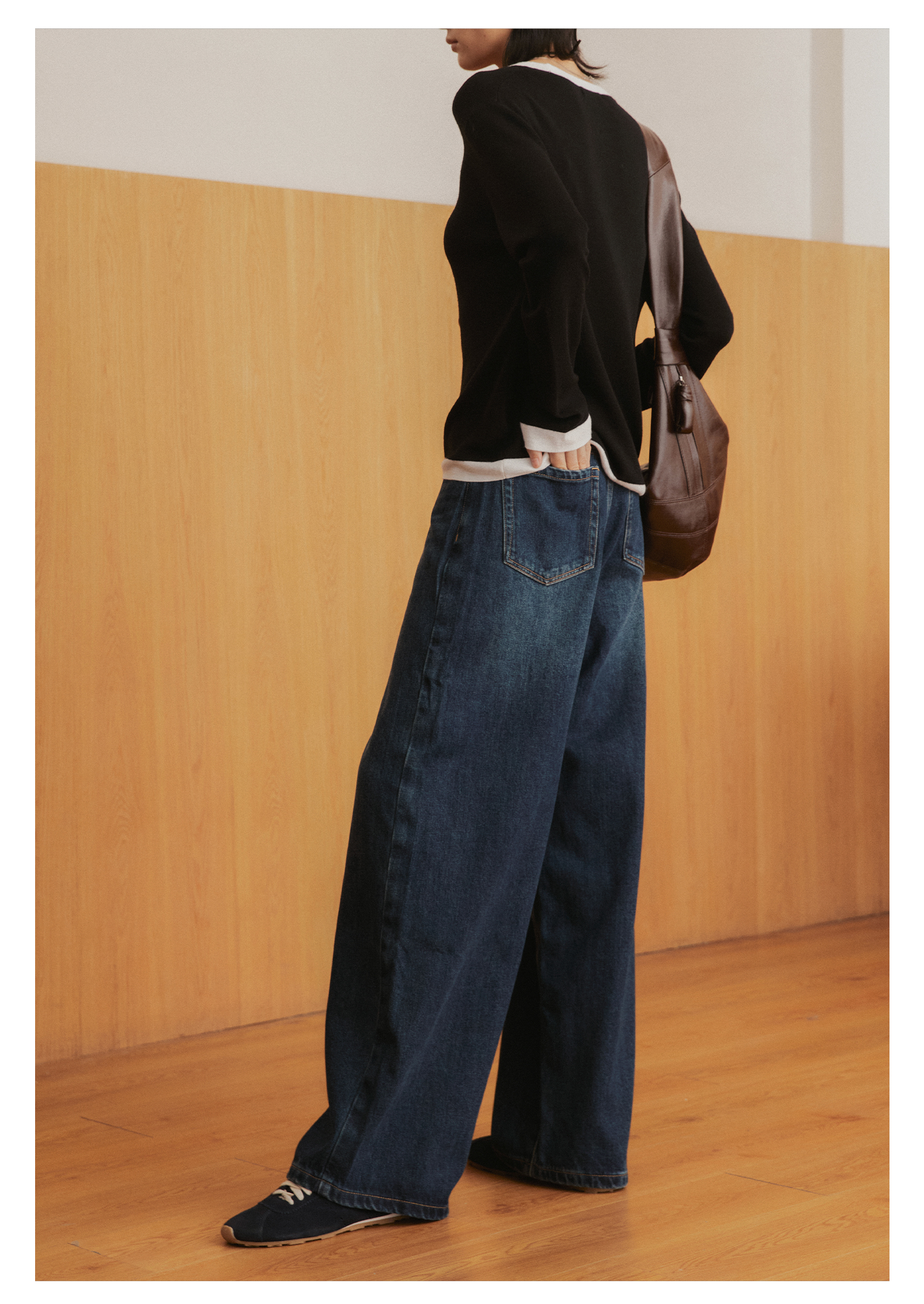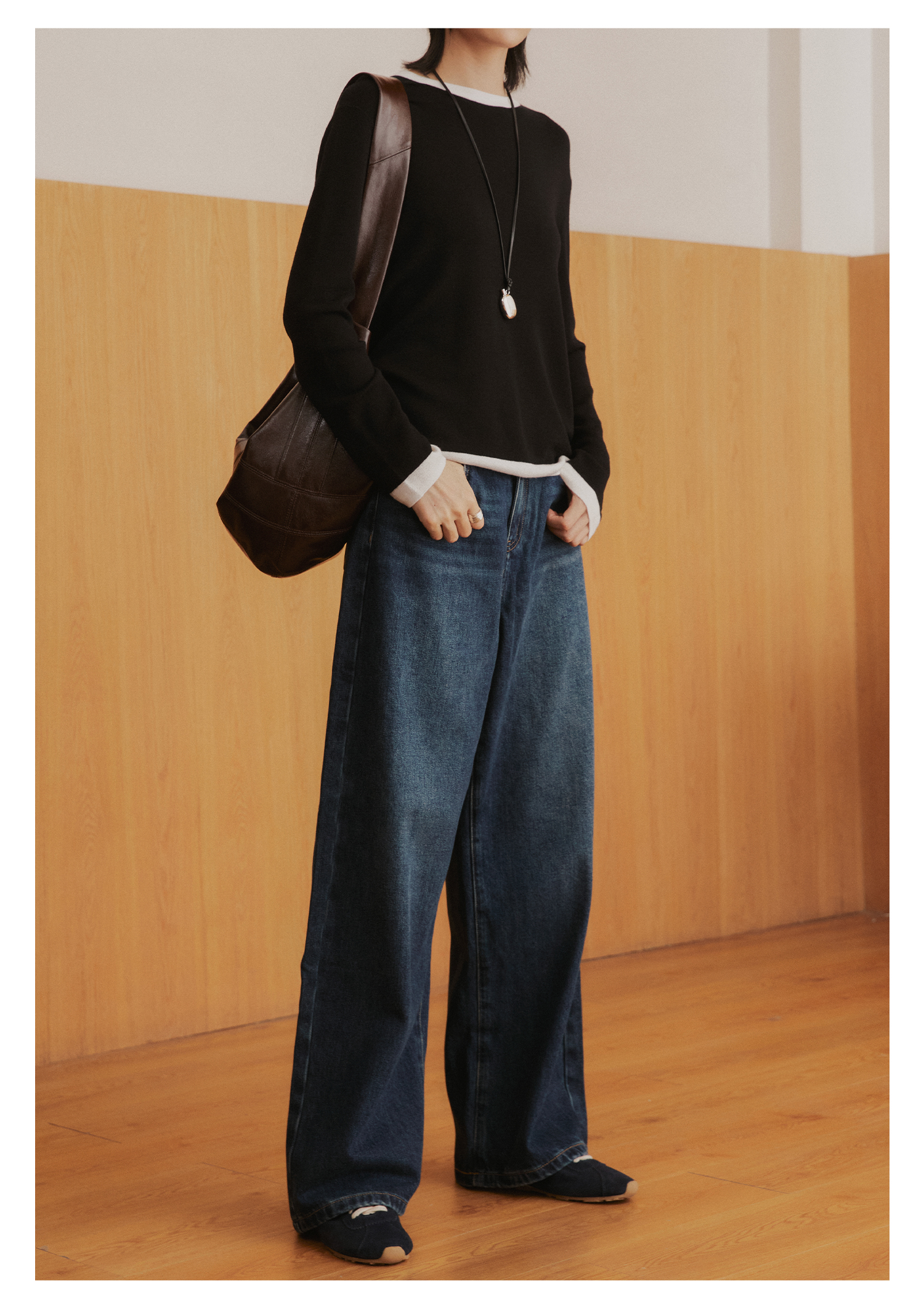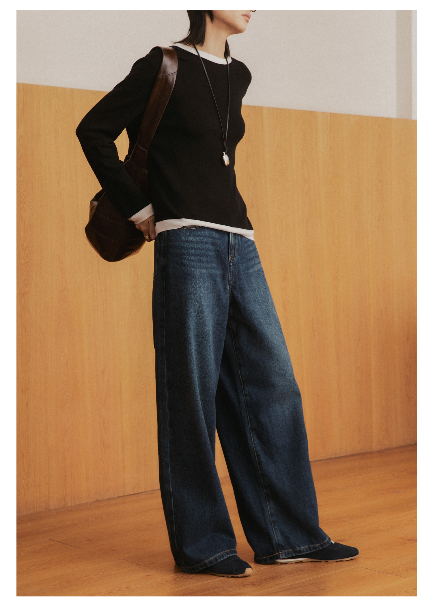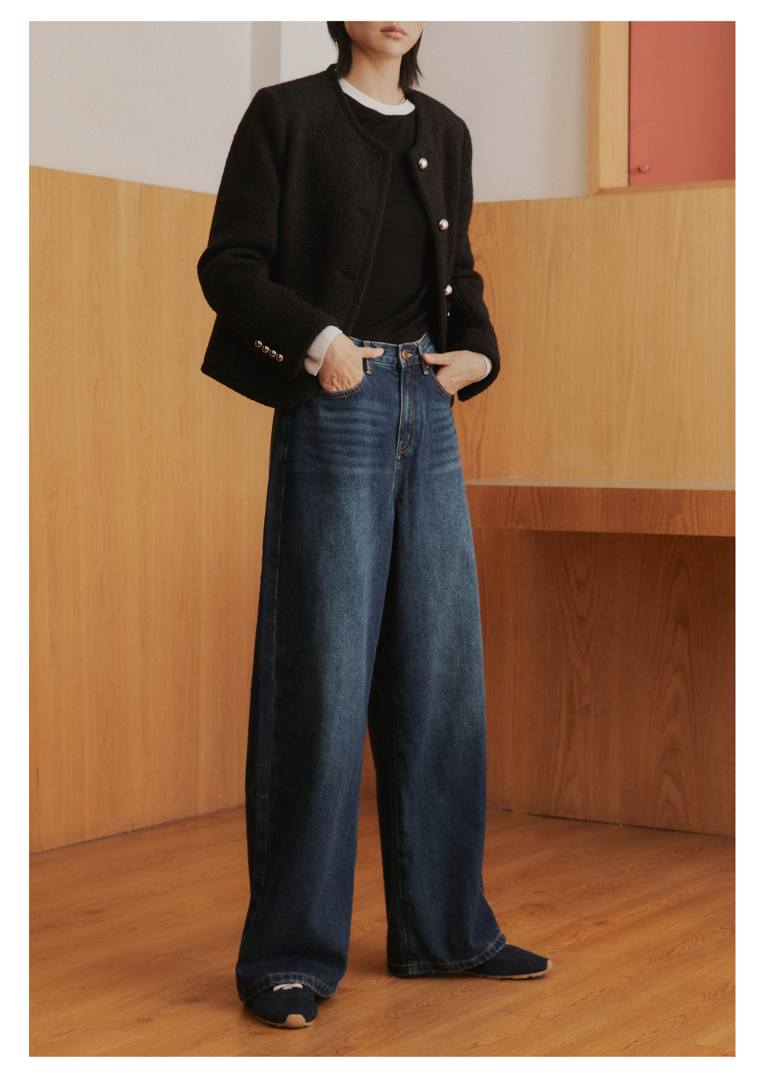 棉仓3561519005-挺括有型厚款磨毛牛仔裤 磨石水洗显瘦复古宽松阔腿牛仔裤