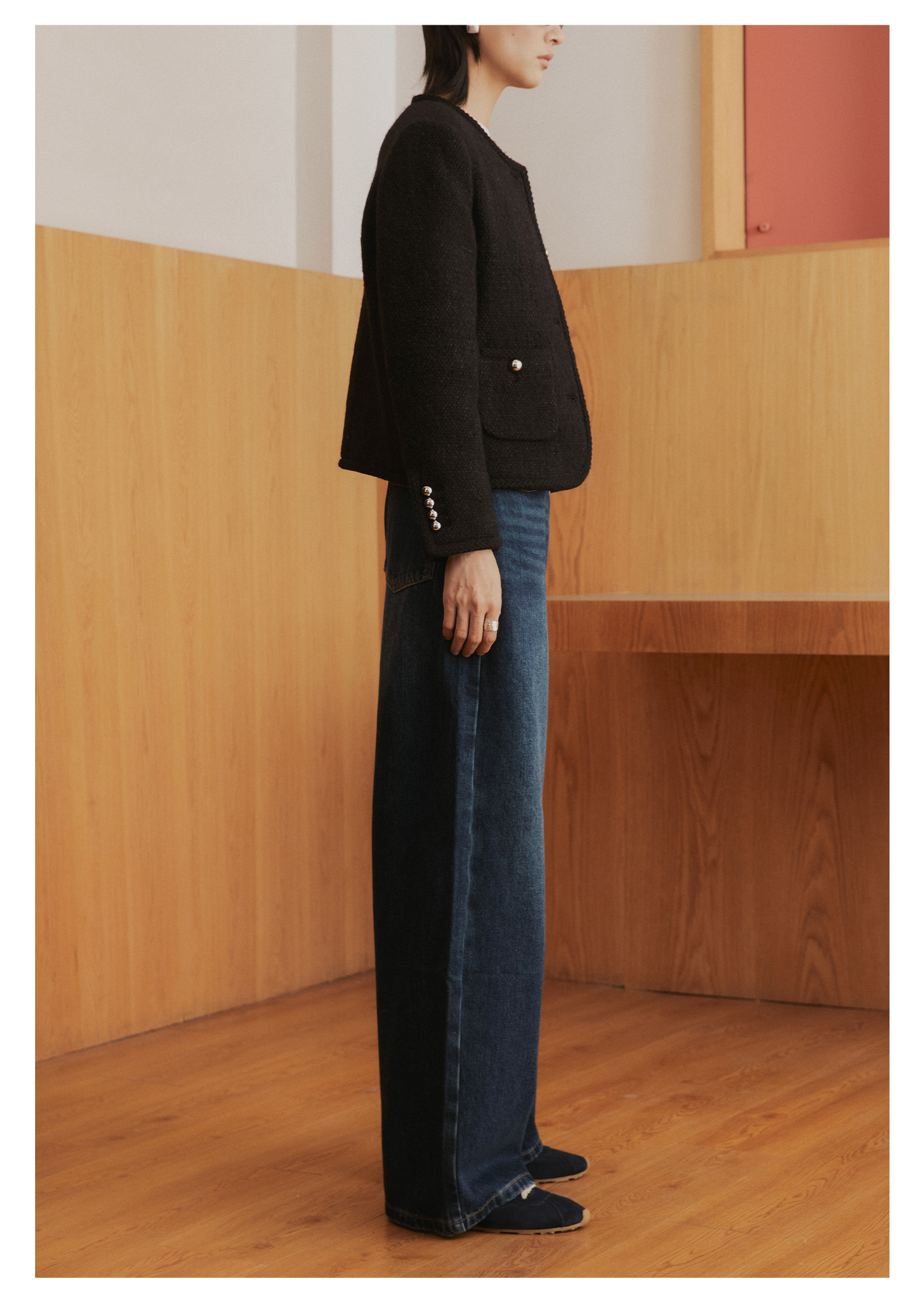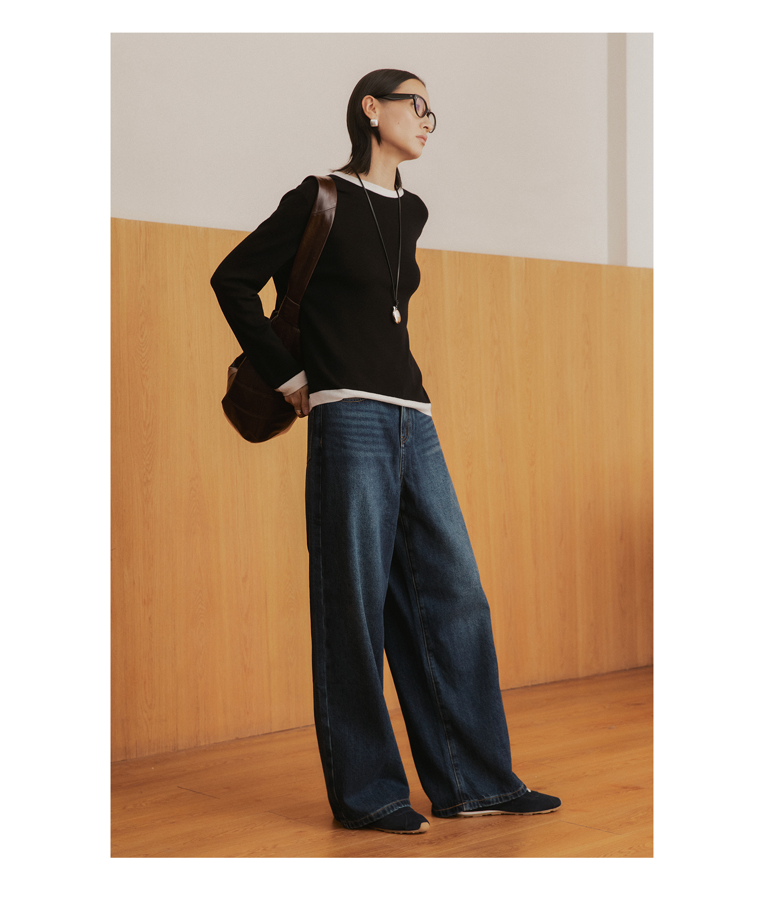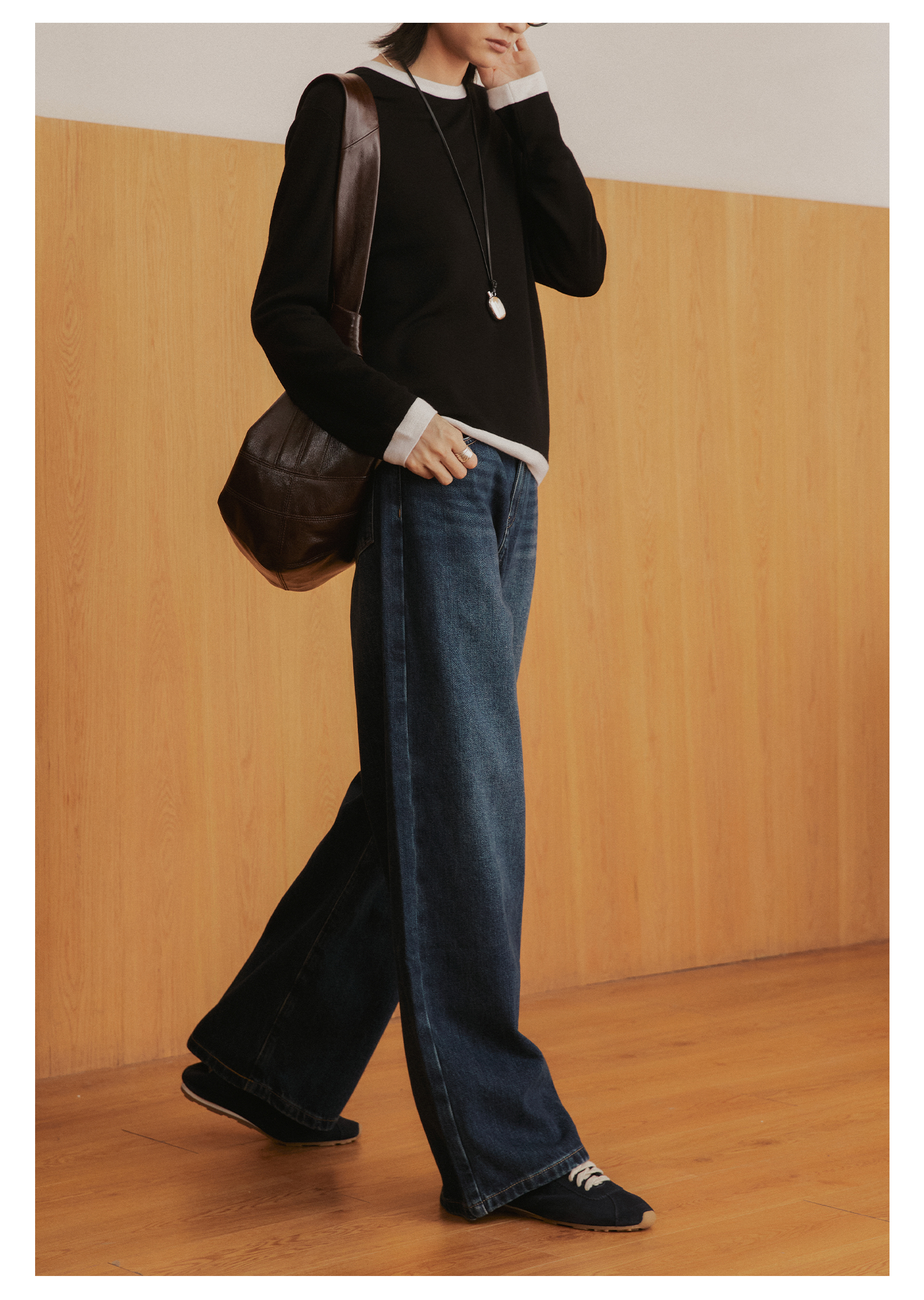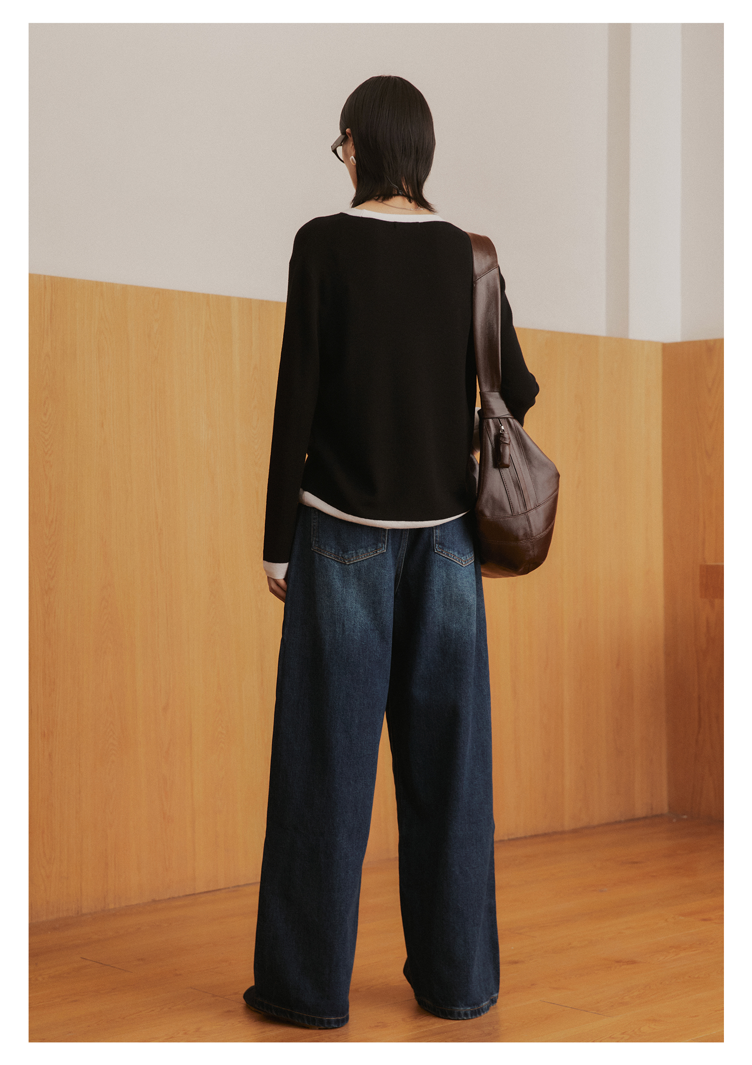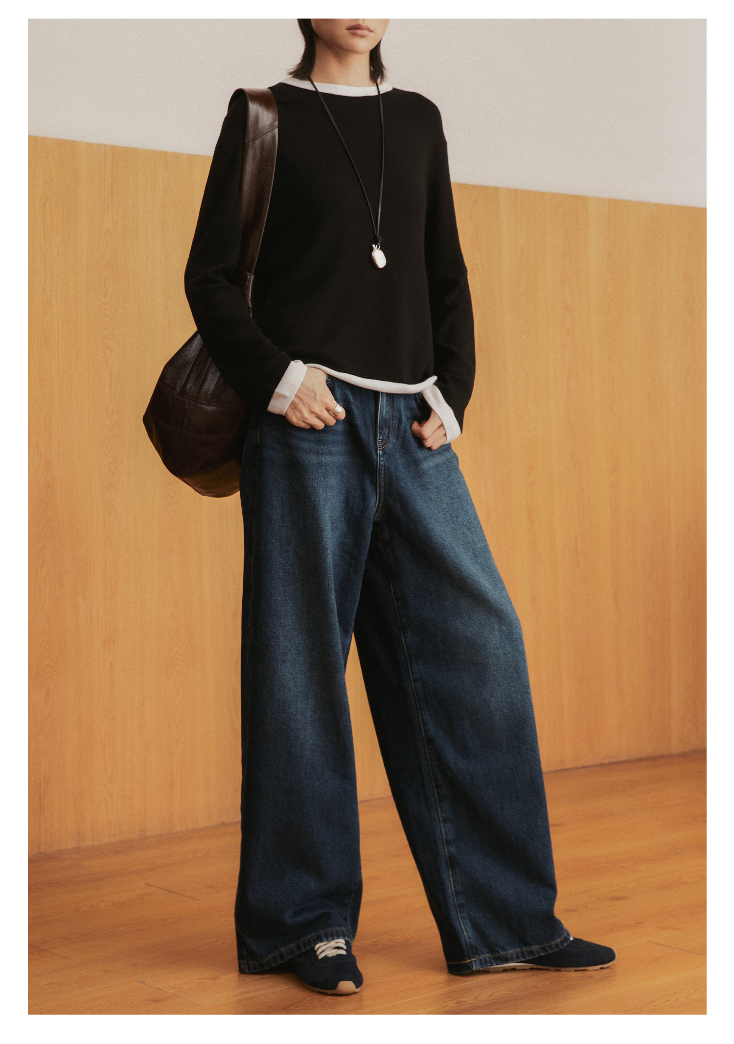 棉仓3561519005-挺括有型厚款磨毛牛仔裤 磨石水洗显瘦复古宽松阔腿牛仔裤