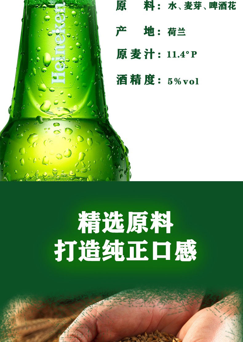 荷兰喜力旋盖版啤酒 5.0%vol 250ml*24瓶