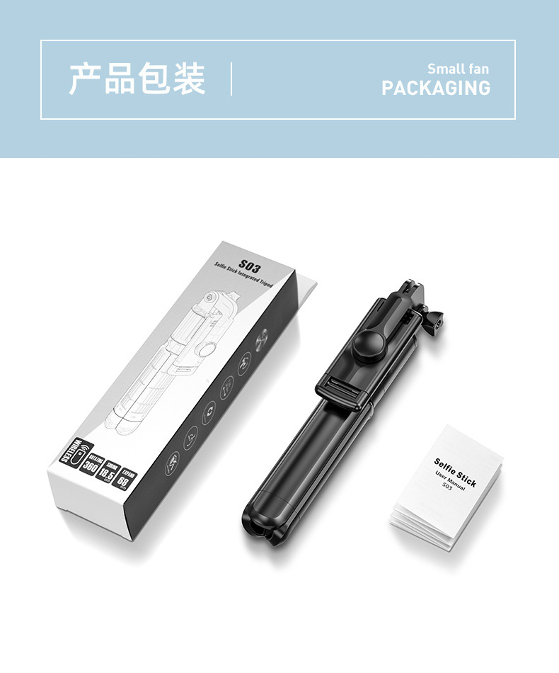 运动防抖蓝牙三脚架自拍杆