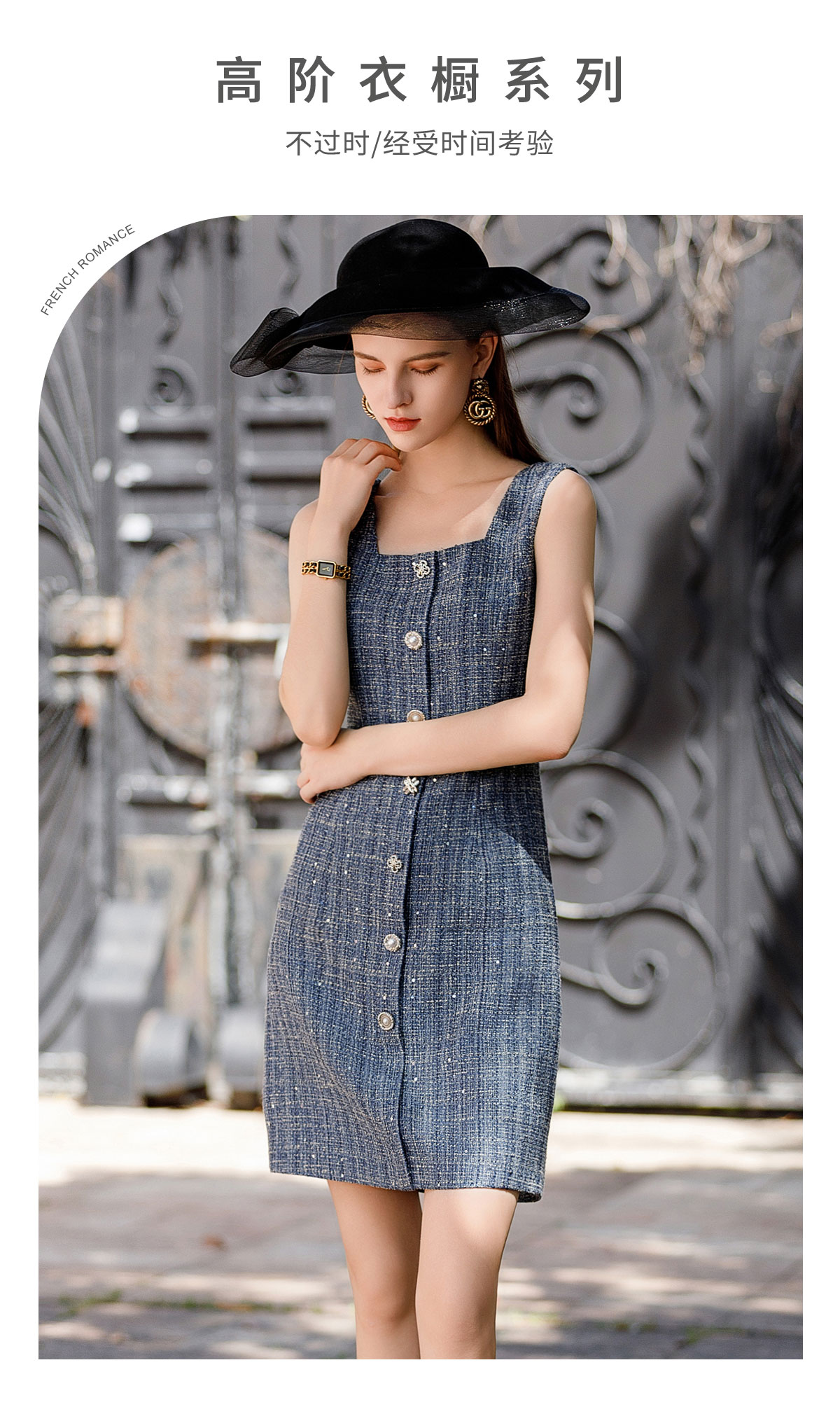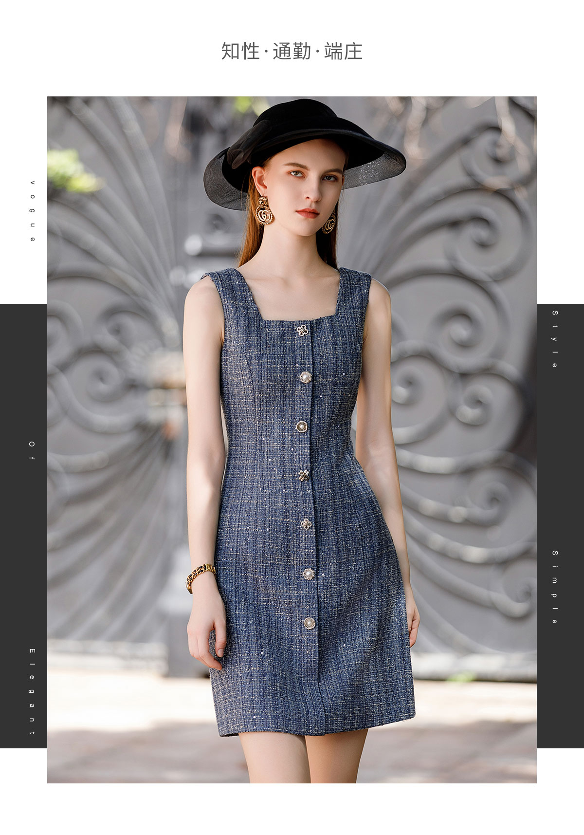 AD金扣无袖气质小香风粗花呢连衣裙2023秋季新款名媛千金风背心裙