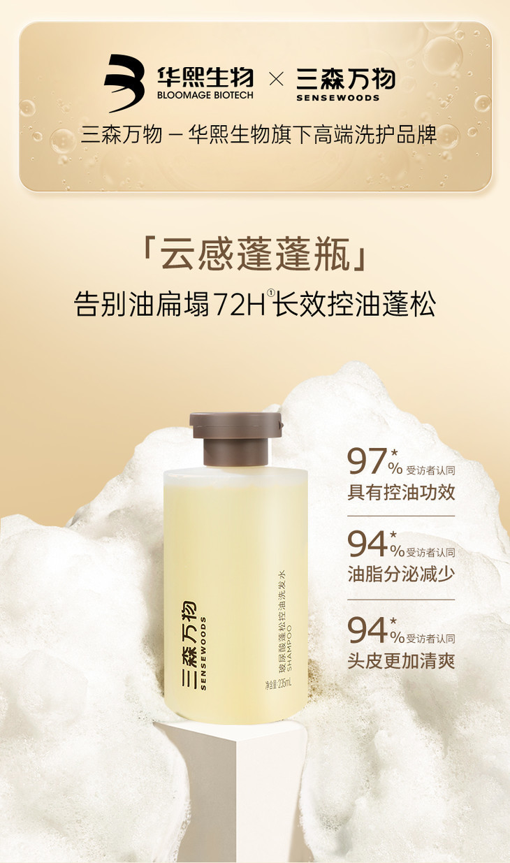 [屁侠推荐]华熙生物 三森万物 玻尿酸控油蓬松洗发水 效期至2026年11月