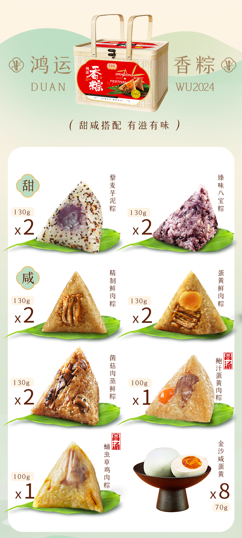 【鸿运香粽】端午家乡粽 竹篮专款限时专享价